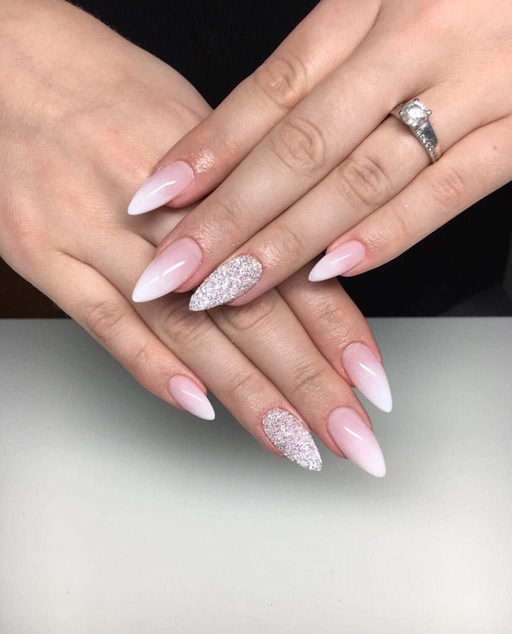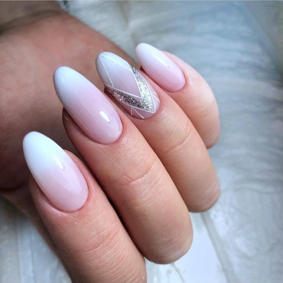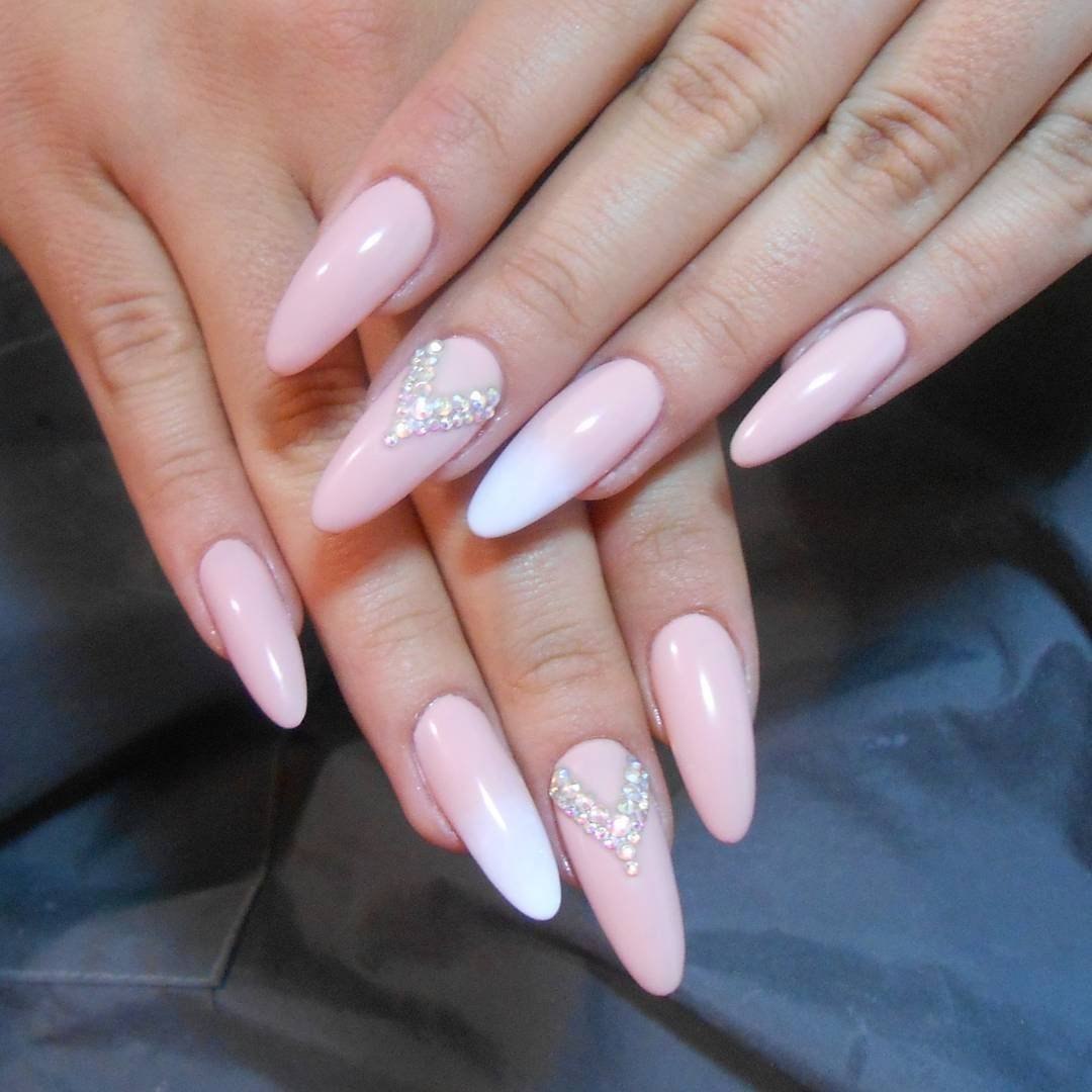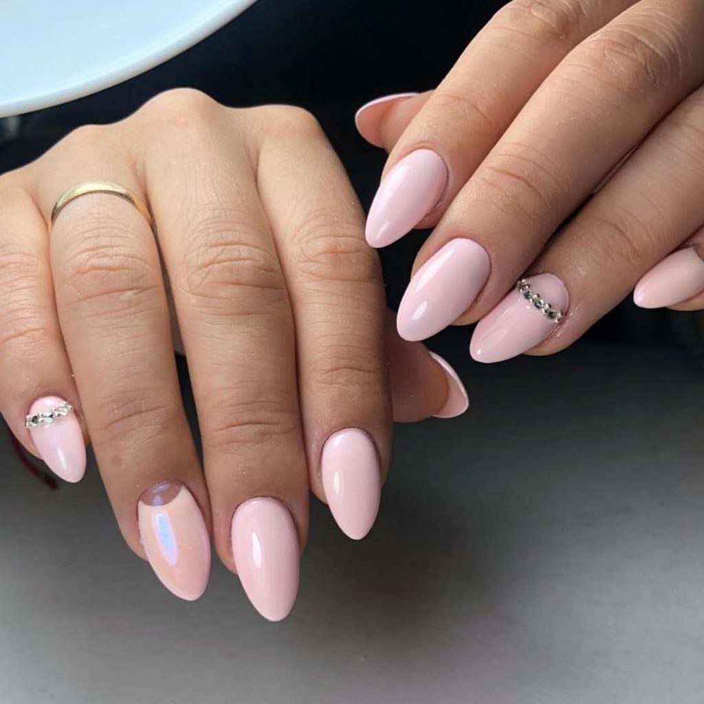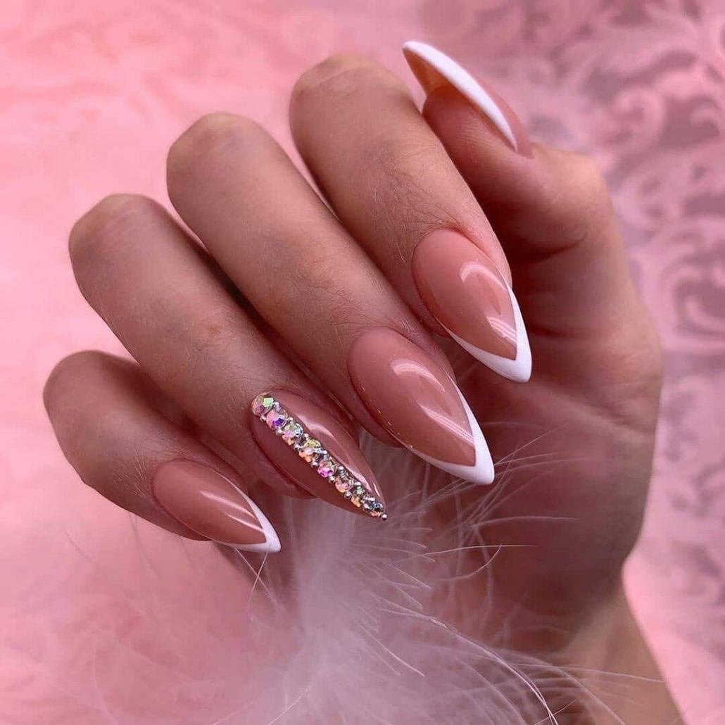 Розовый френч на миндалевидных ногтях с дизайном 2021
