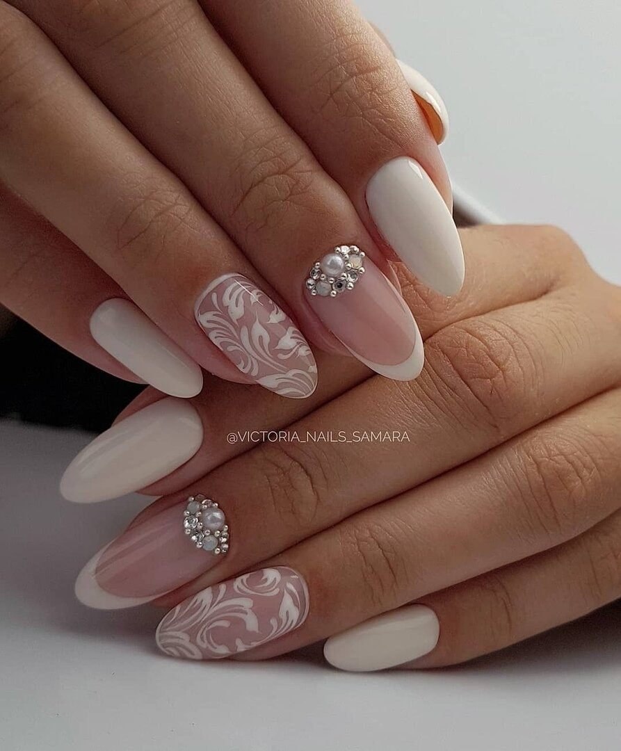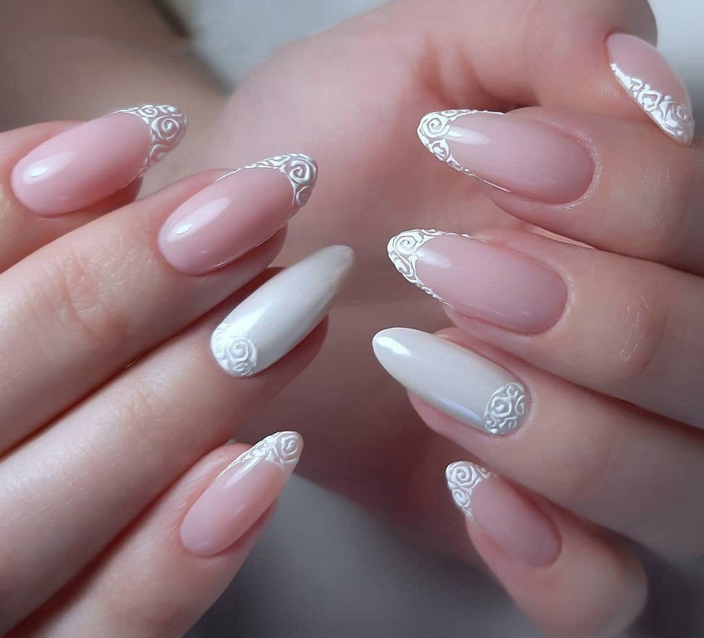 Дизайн ногтей на базе молочной на свадьбу маме невесты