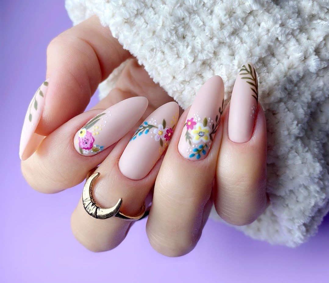 Маникюр нежный 2021 миндалевидные ногти матовый