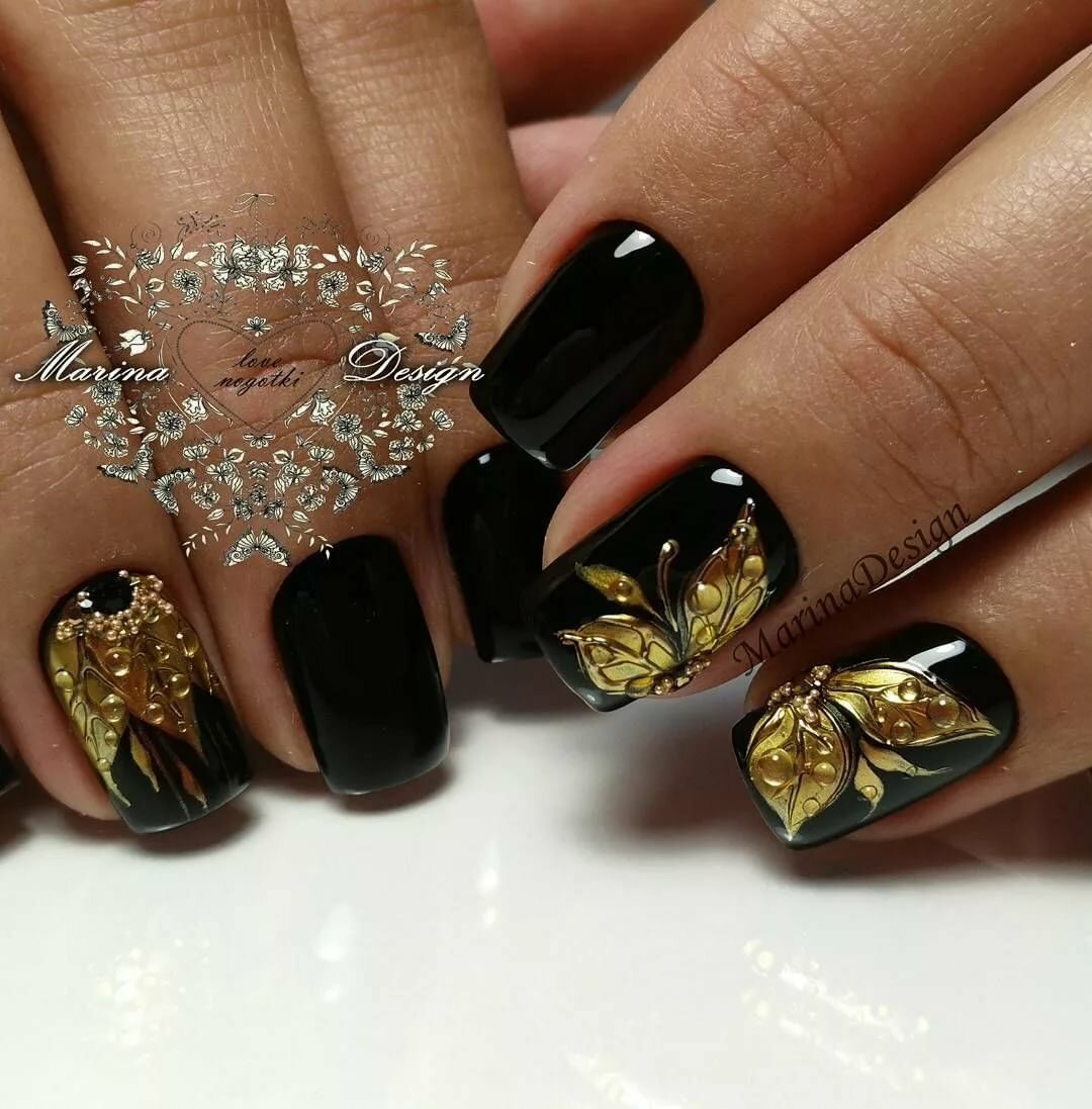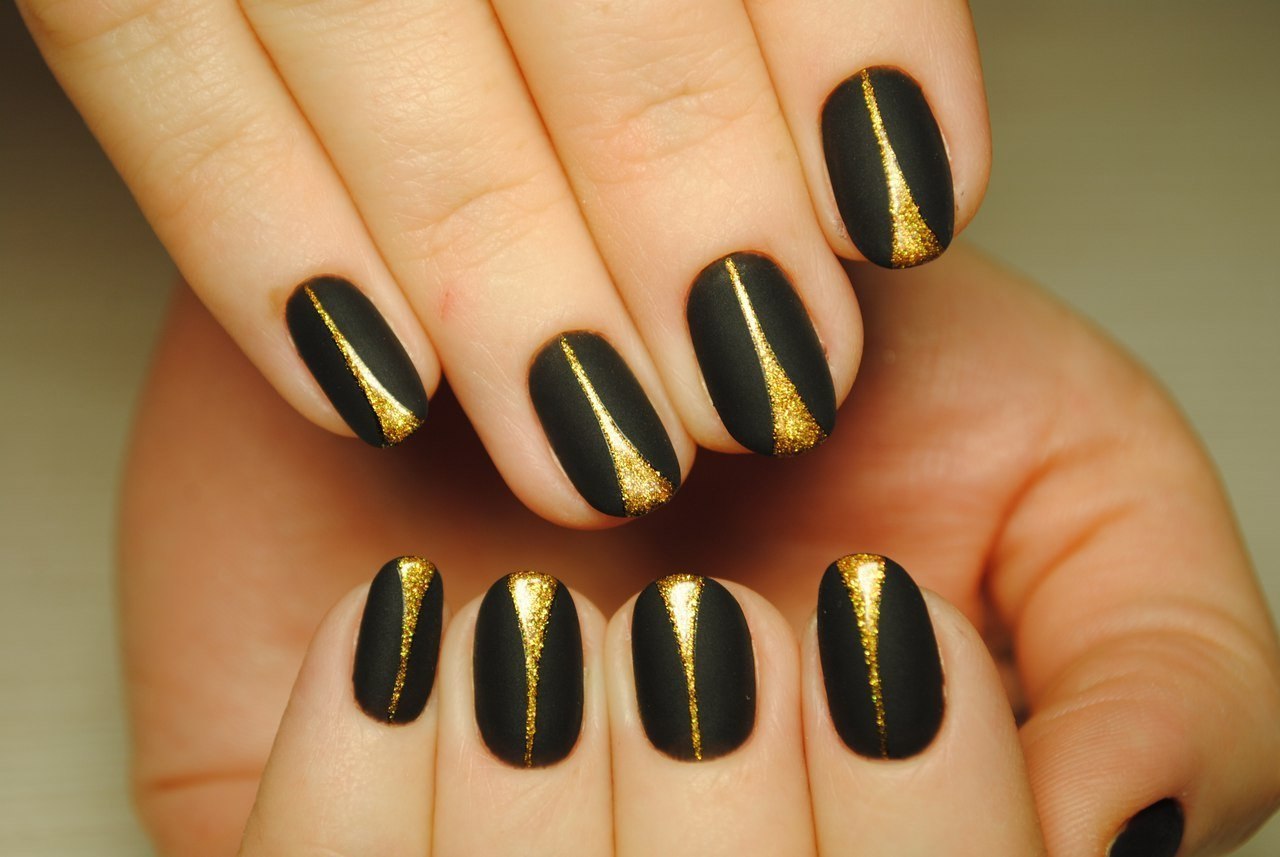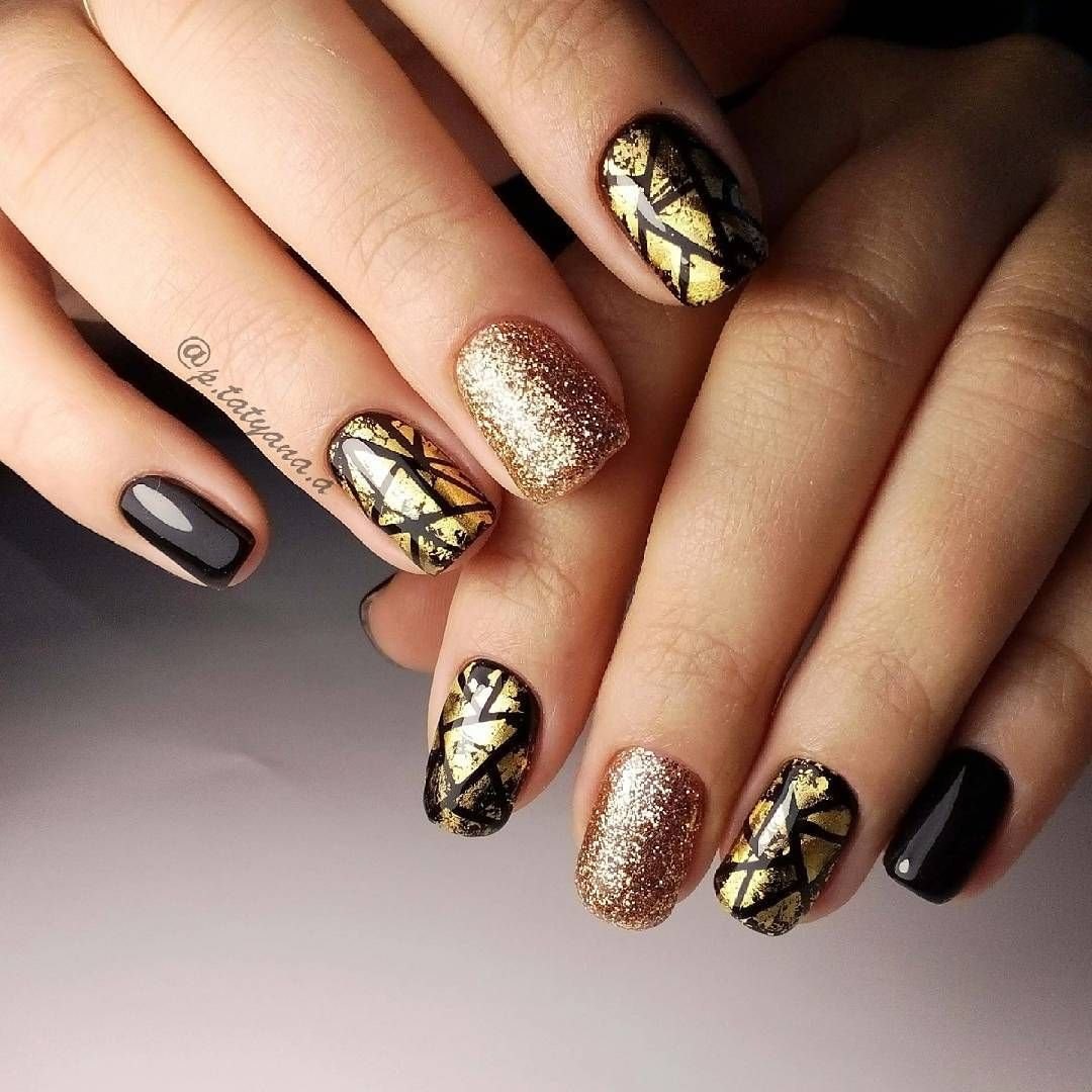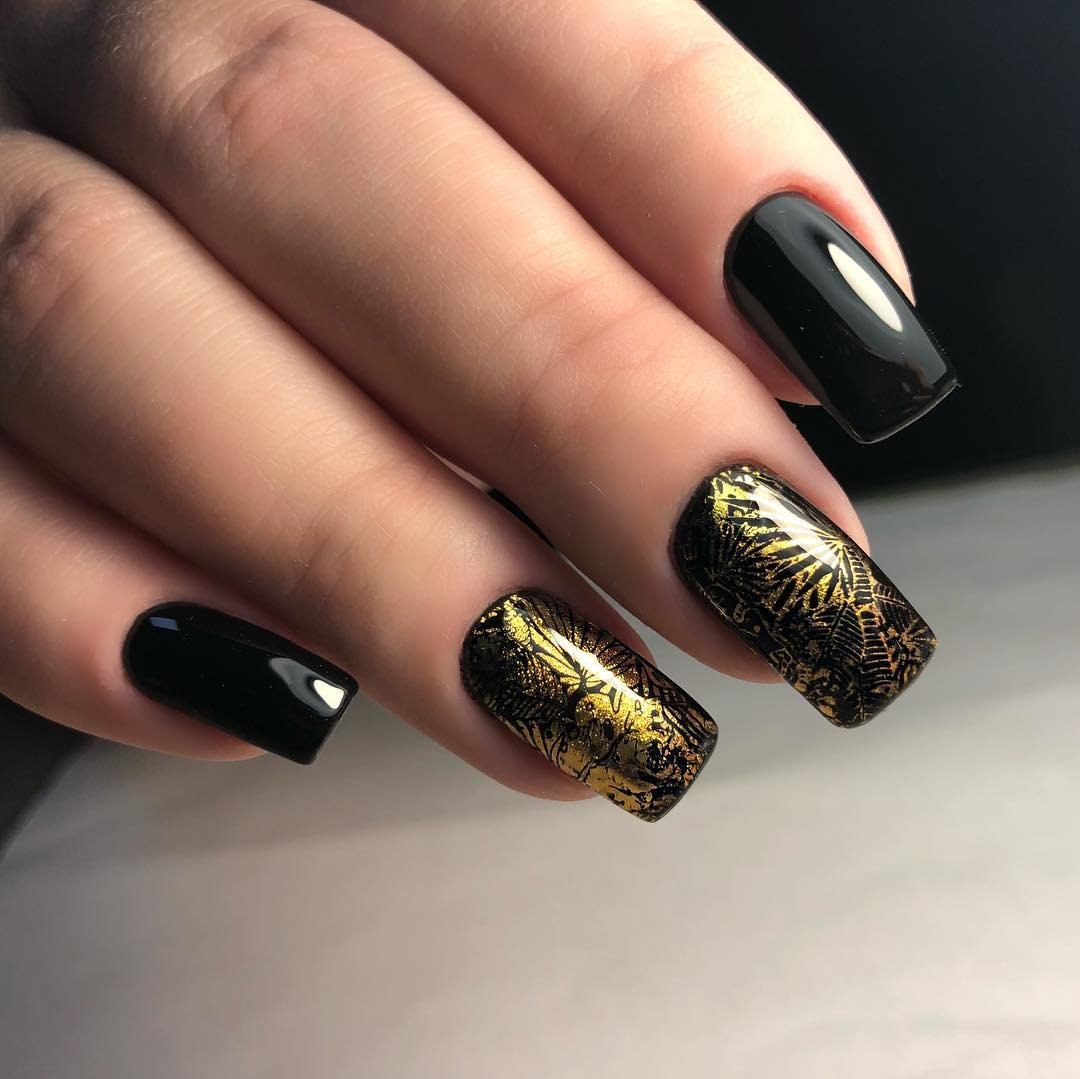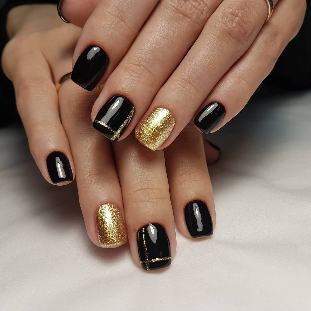 Маникюр дизайн ногтей черный с золотом