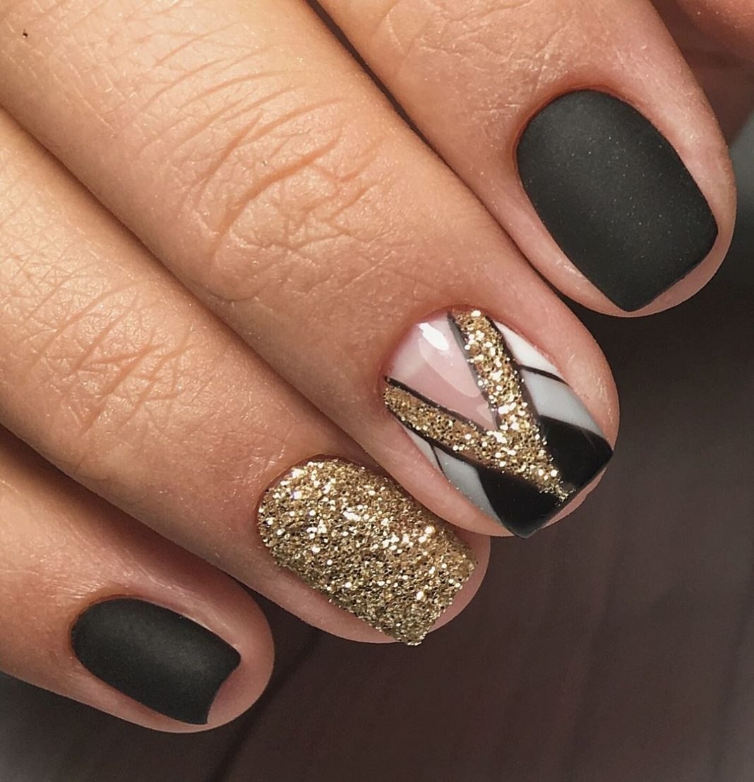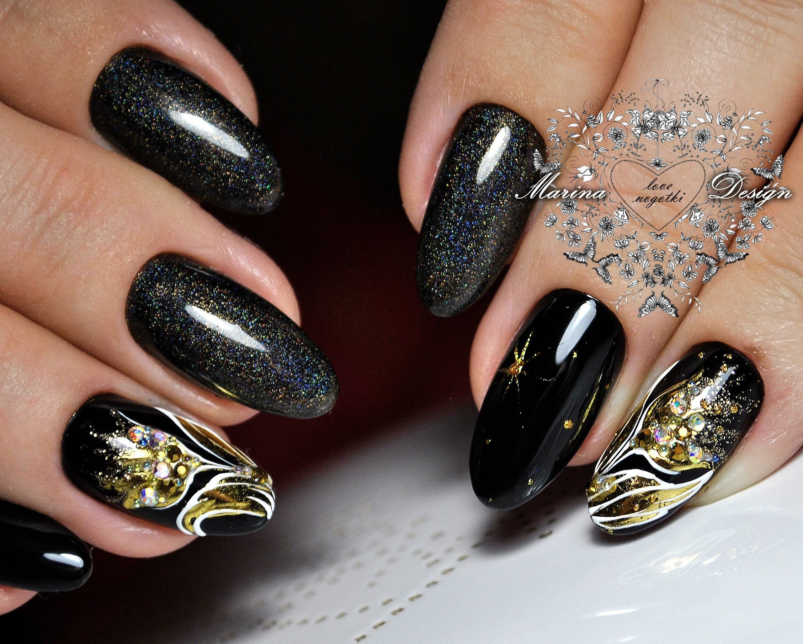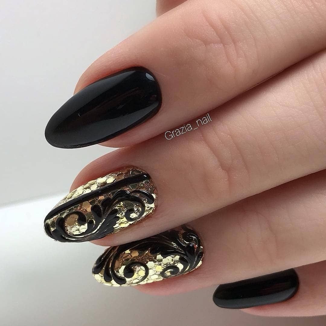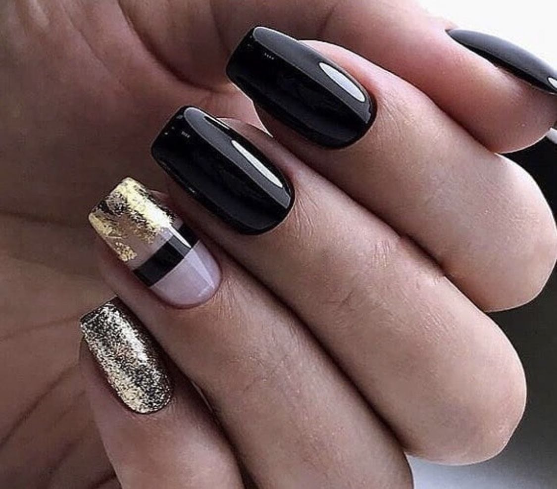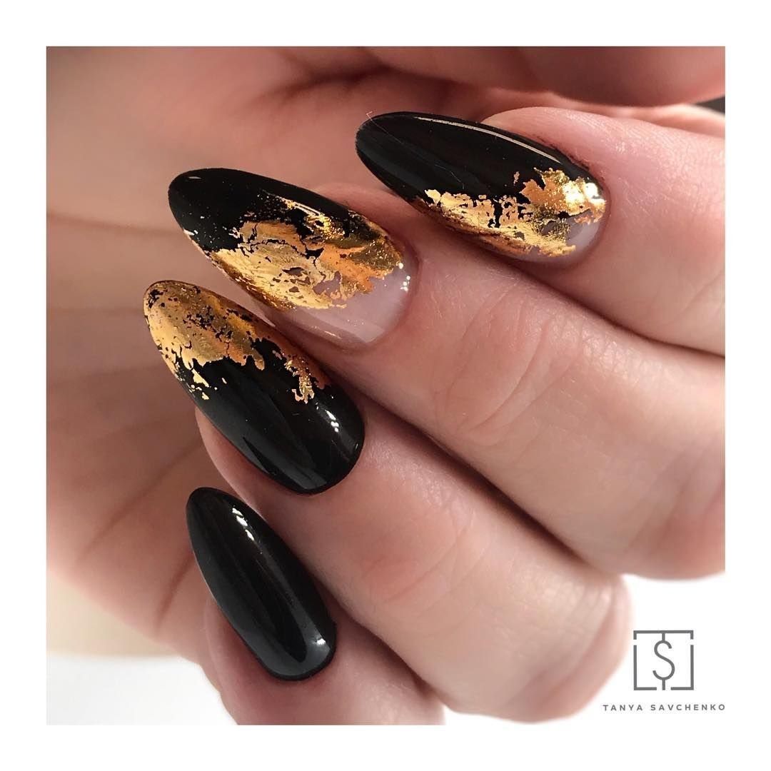 Маникюр дизайн ногтей черный с золотом
