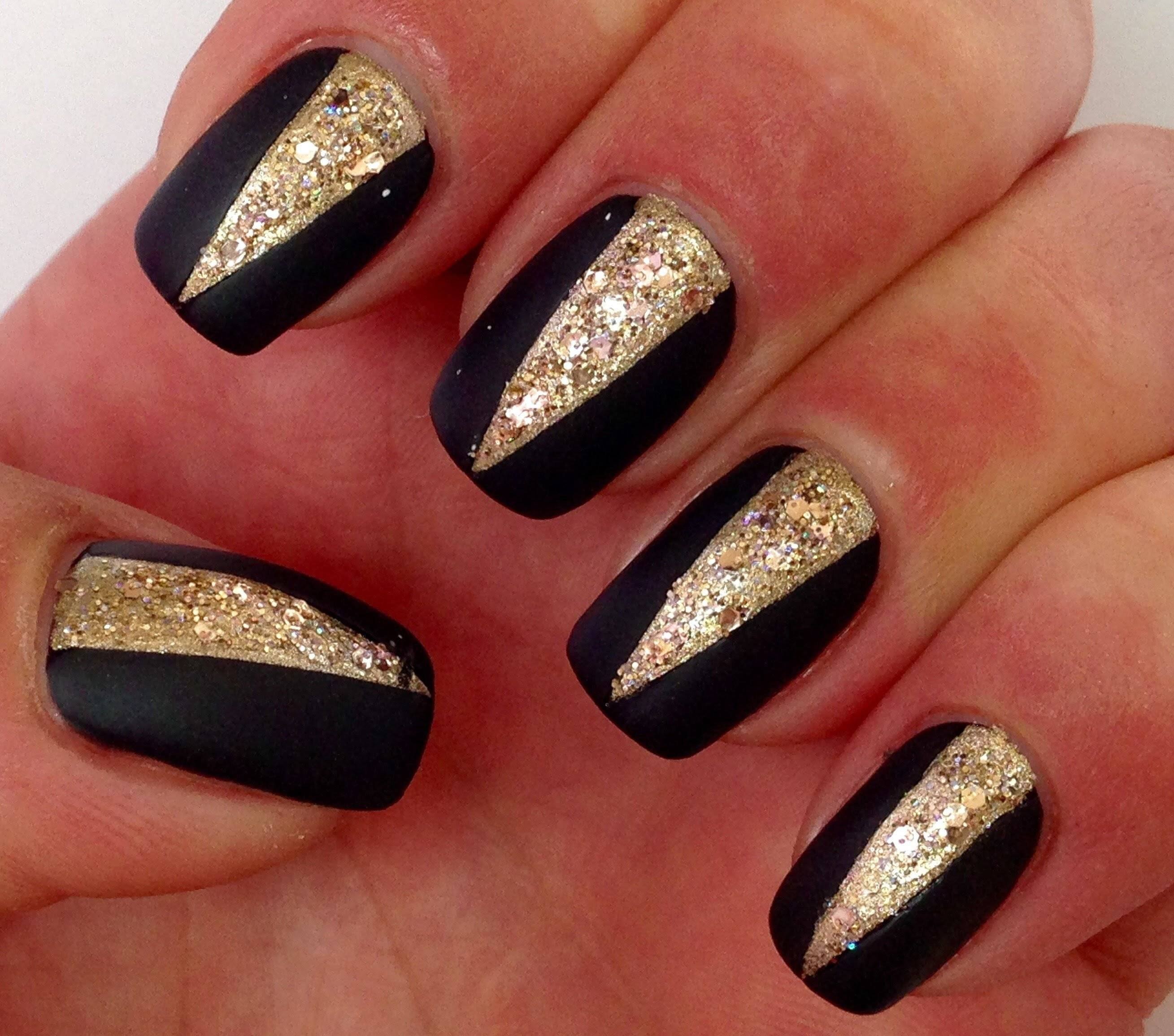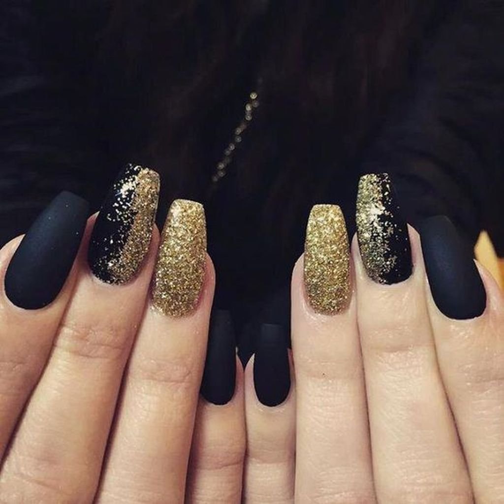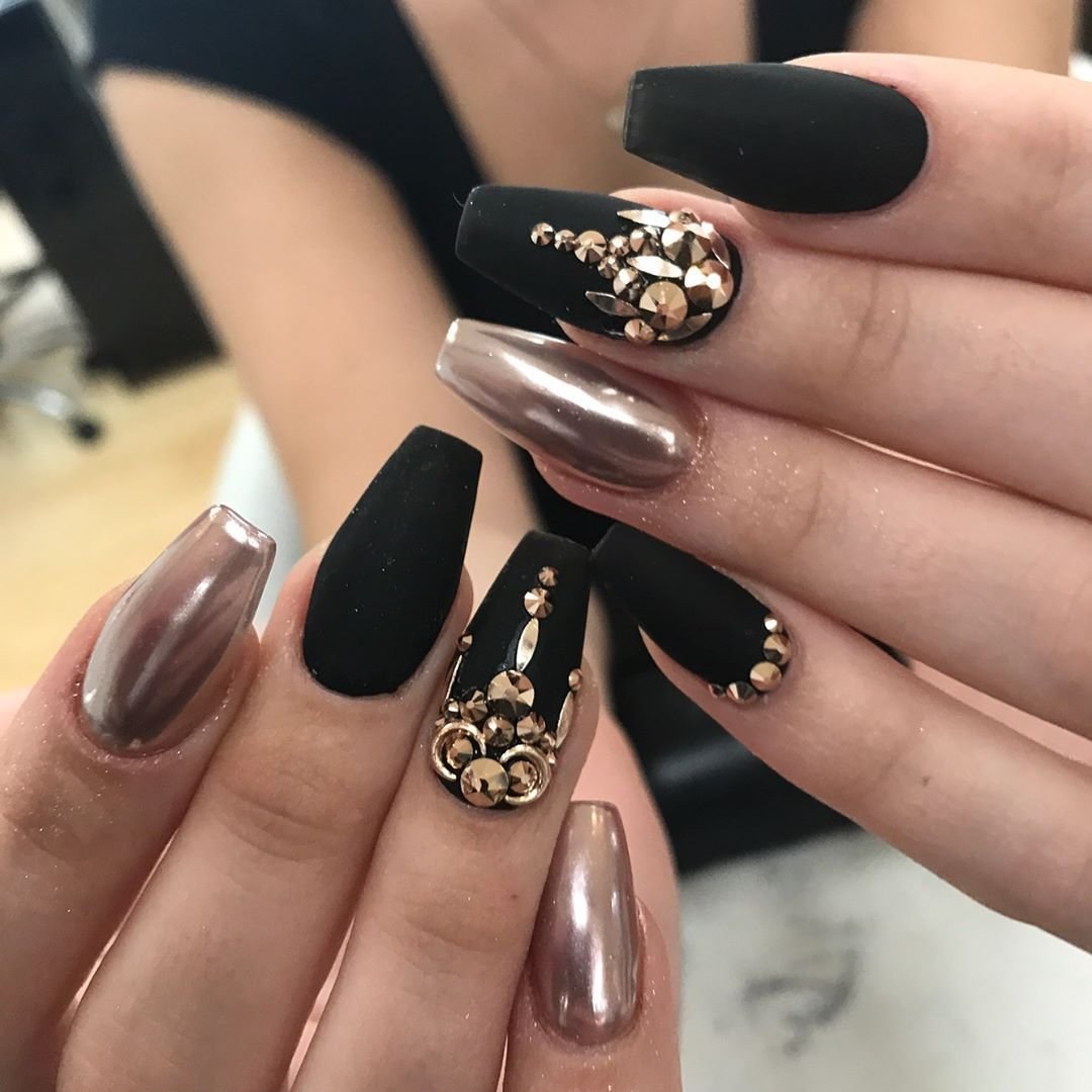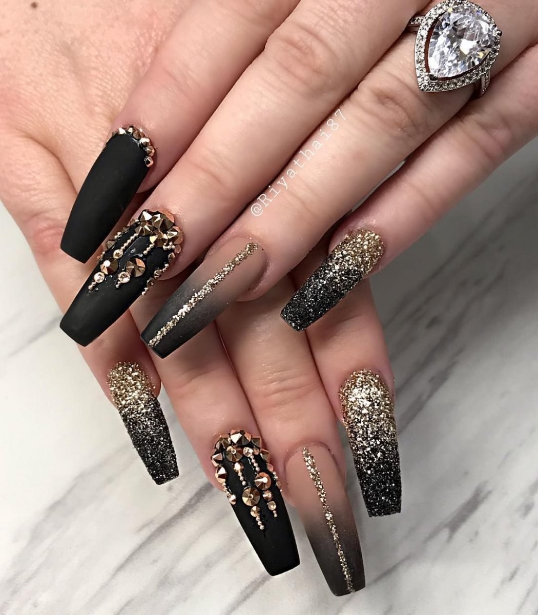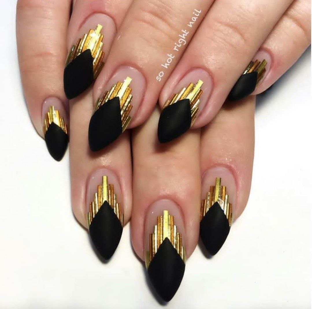 Маникюр дизайн ногтей черный с золотом