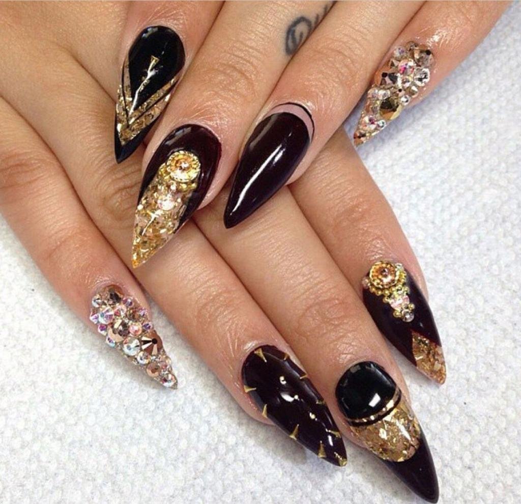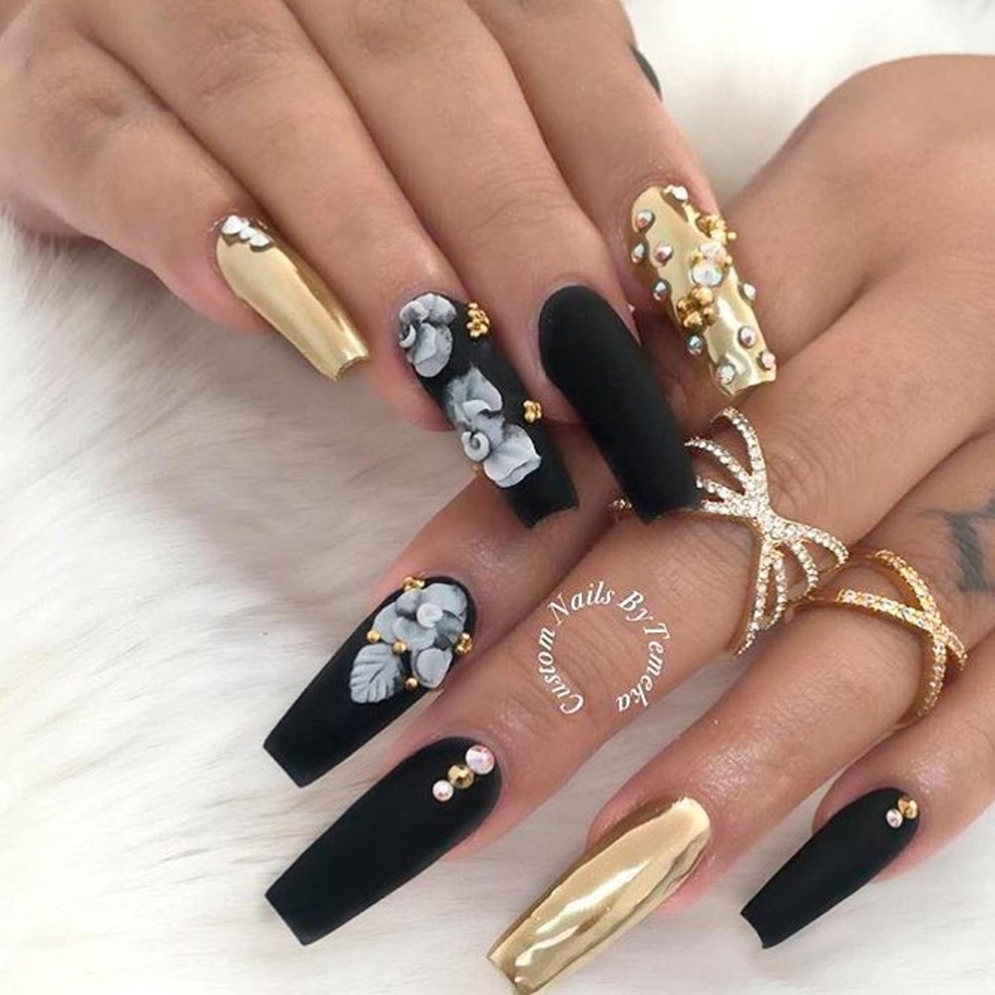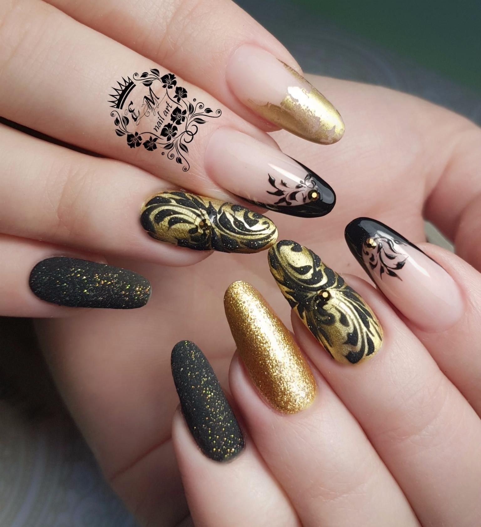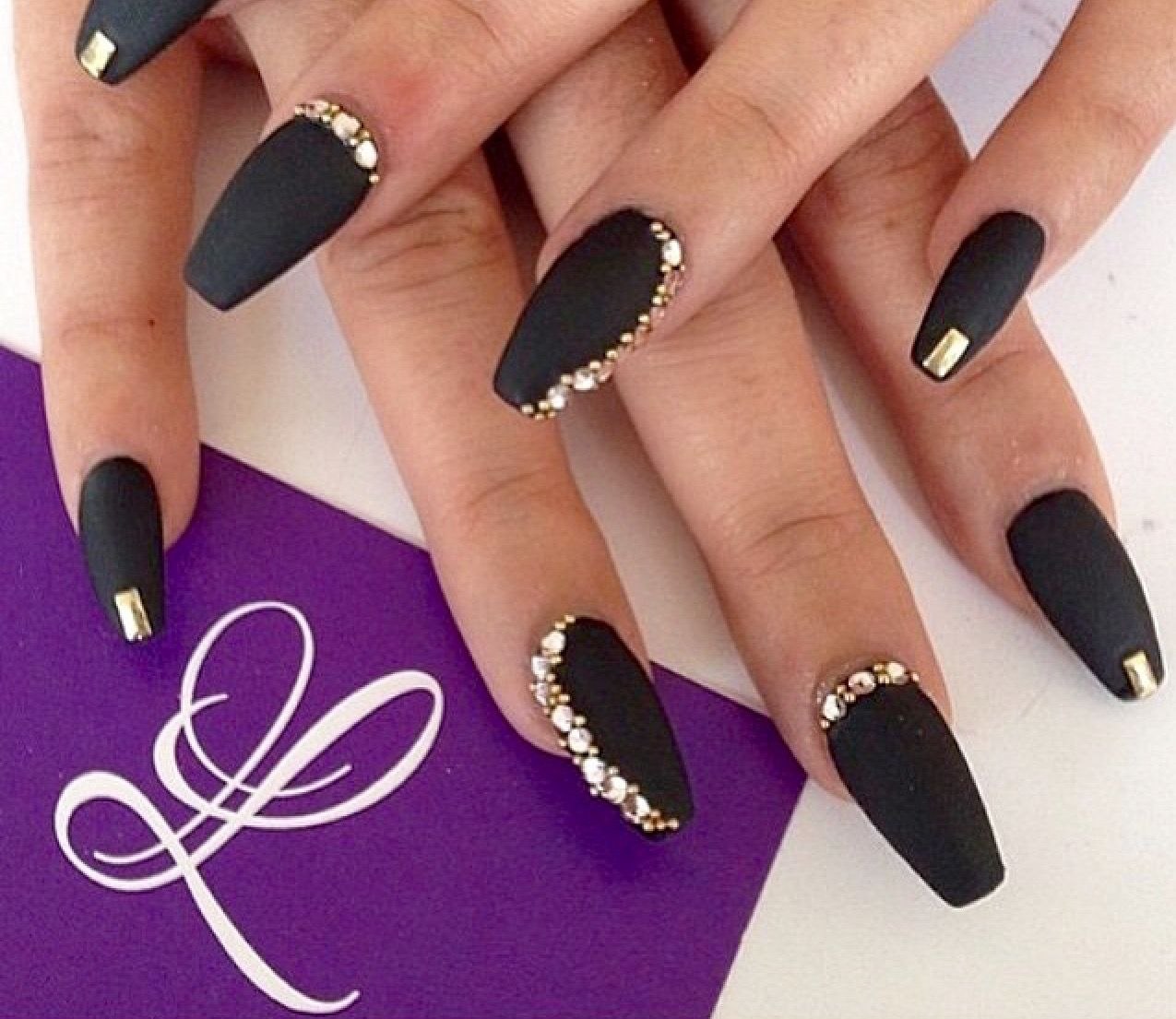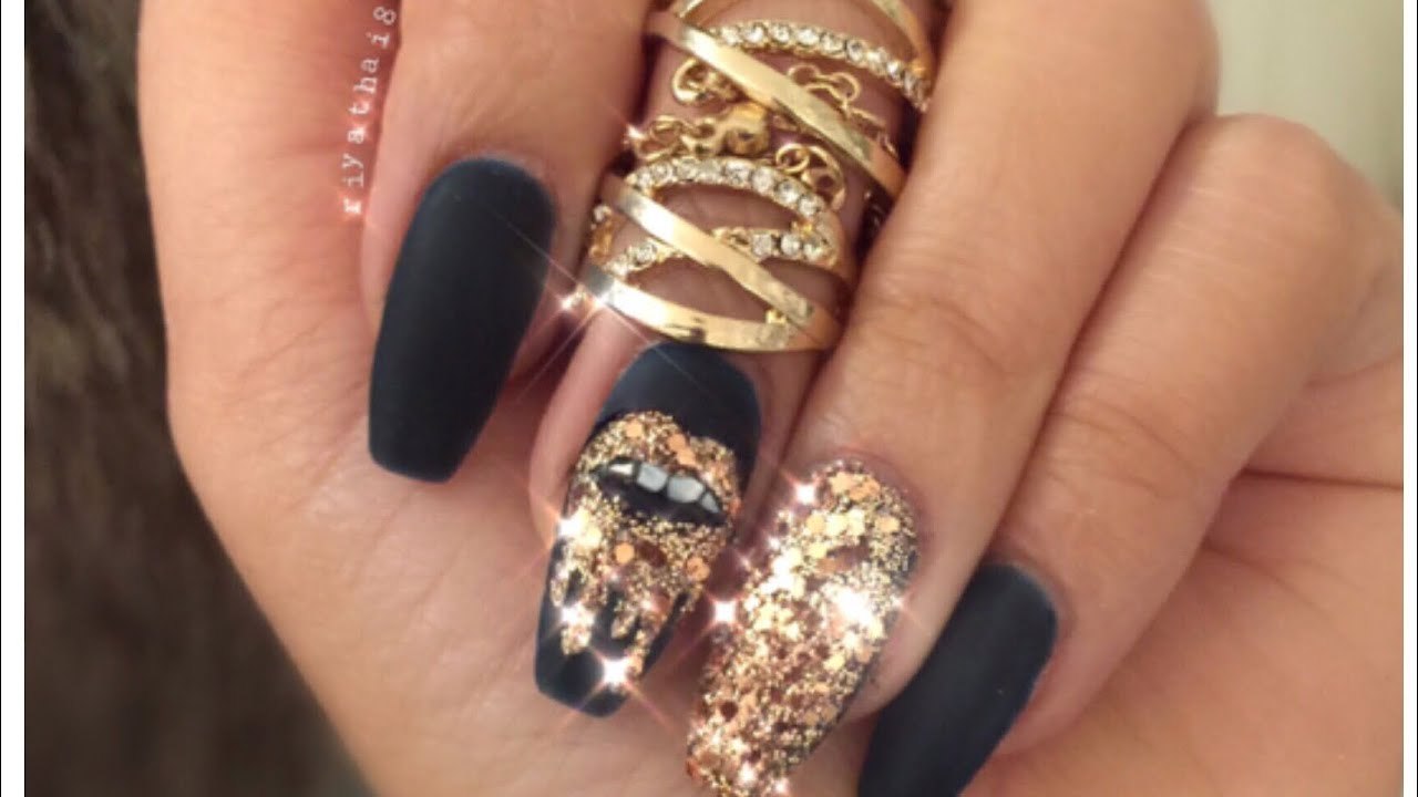 Маникюр дизайн ногтей черный с золотом