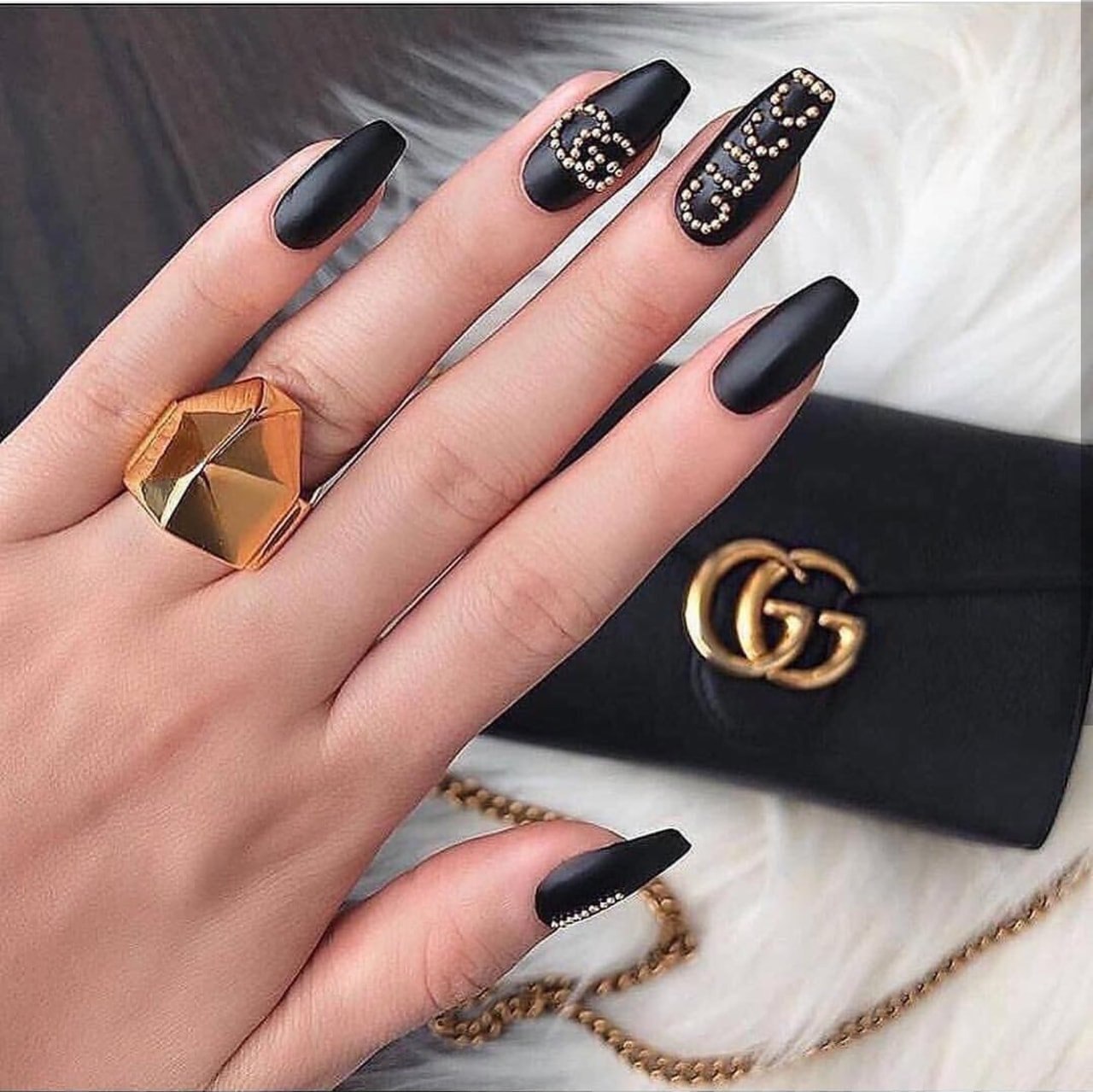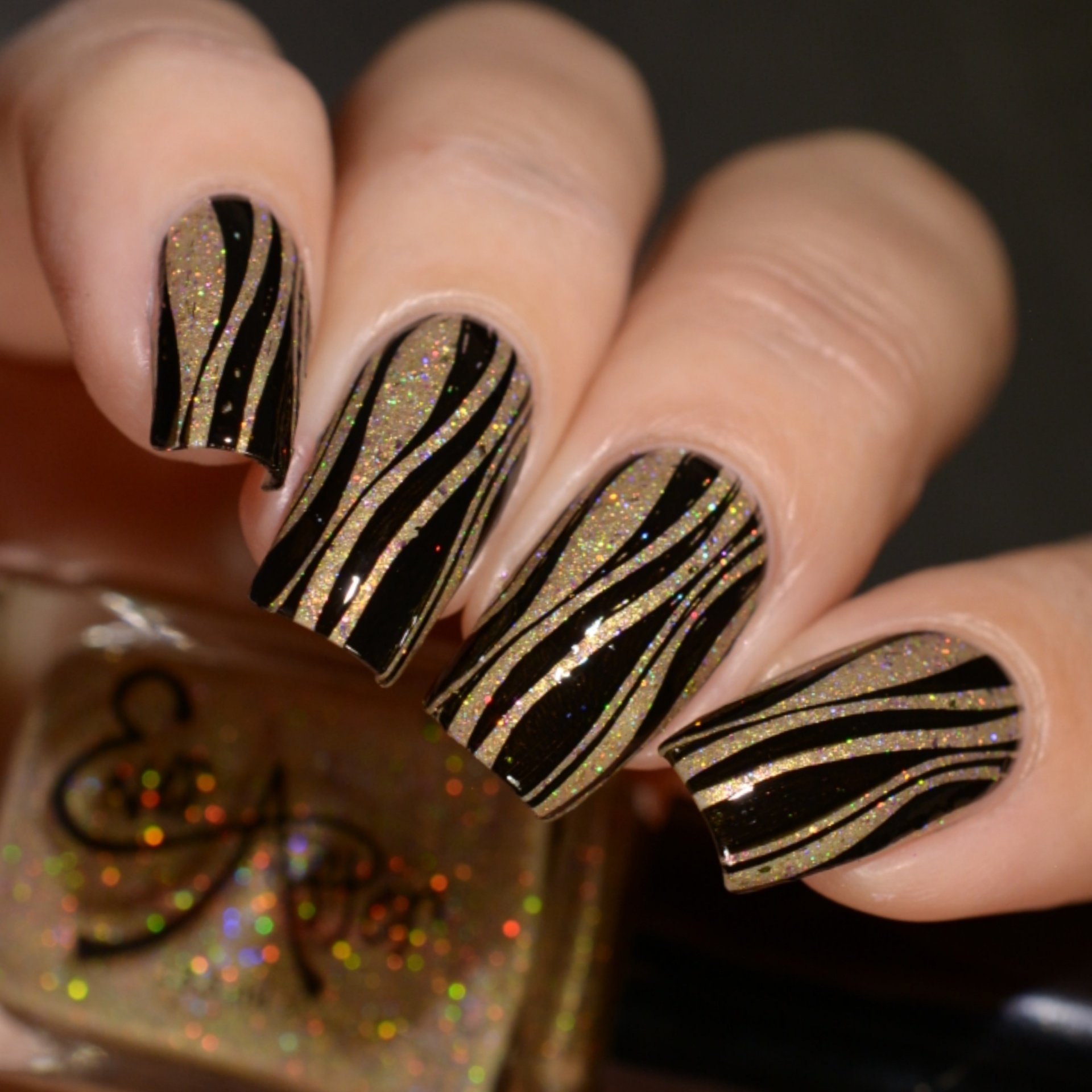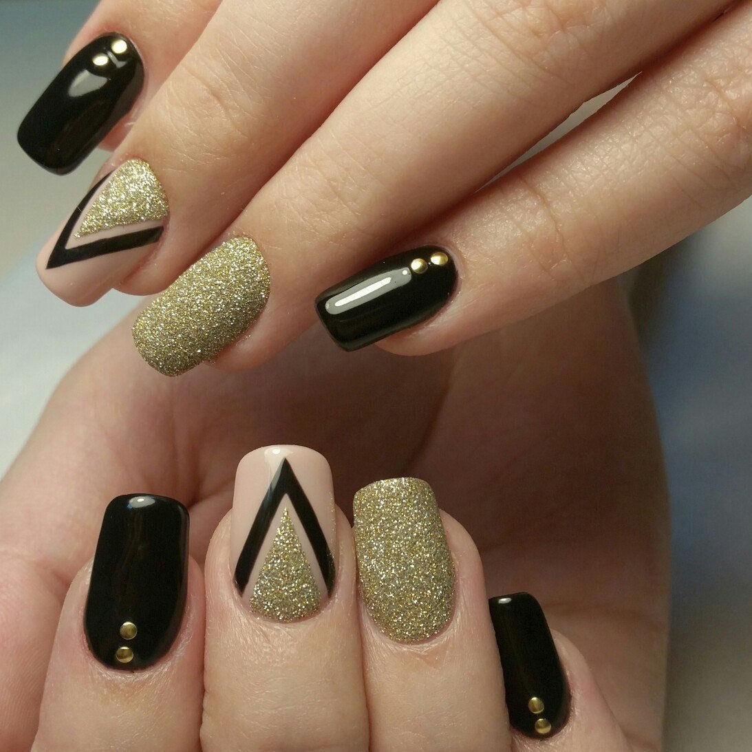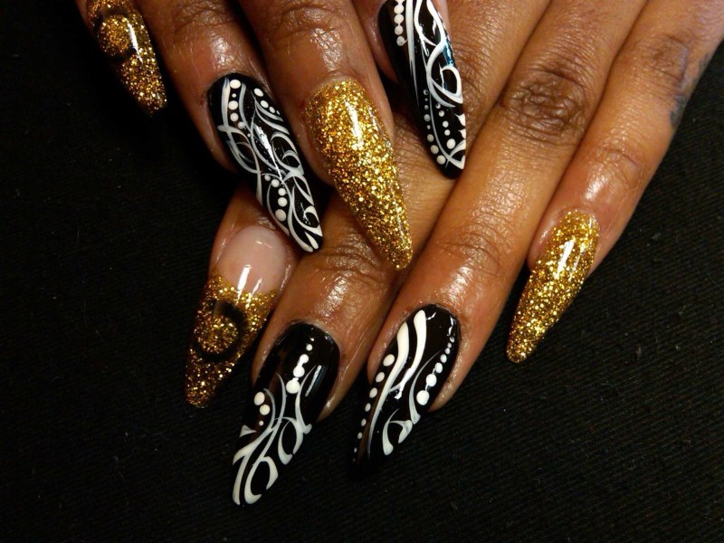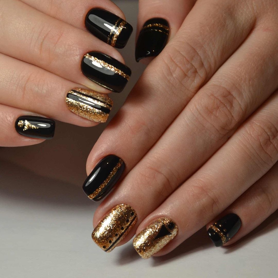 Маникюр золото с черным
