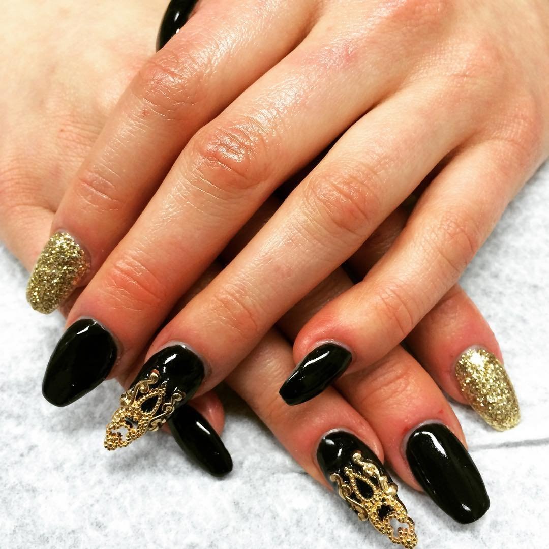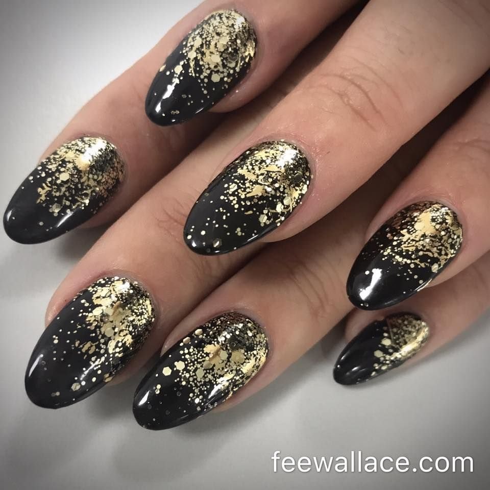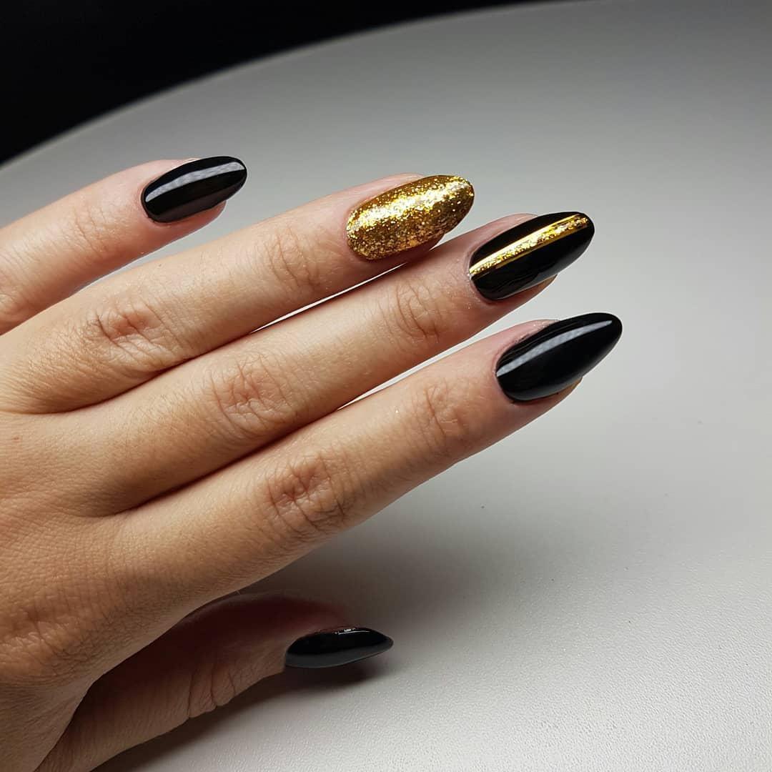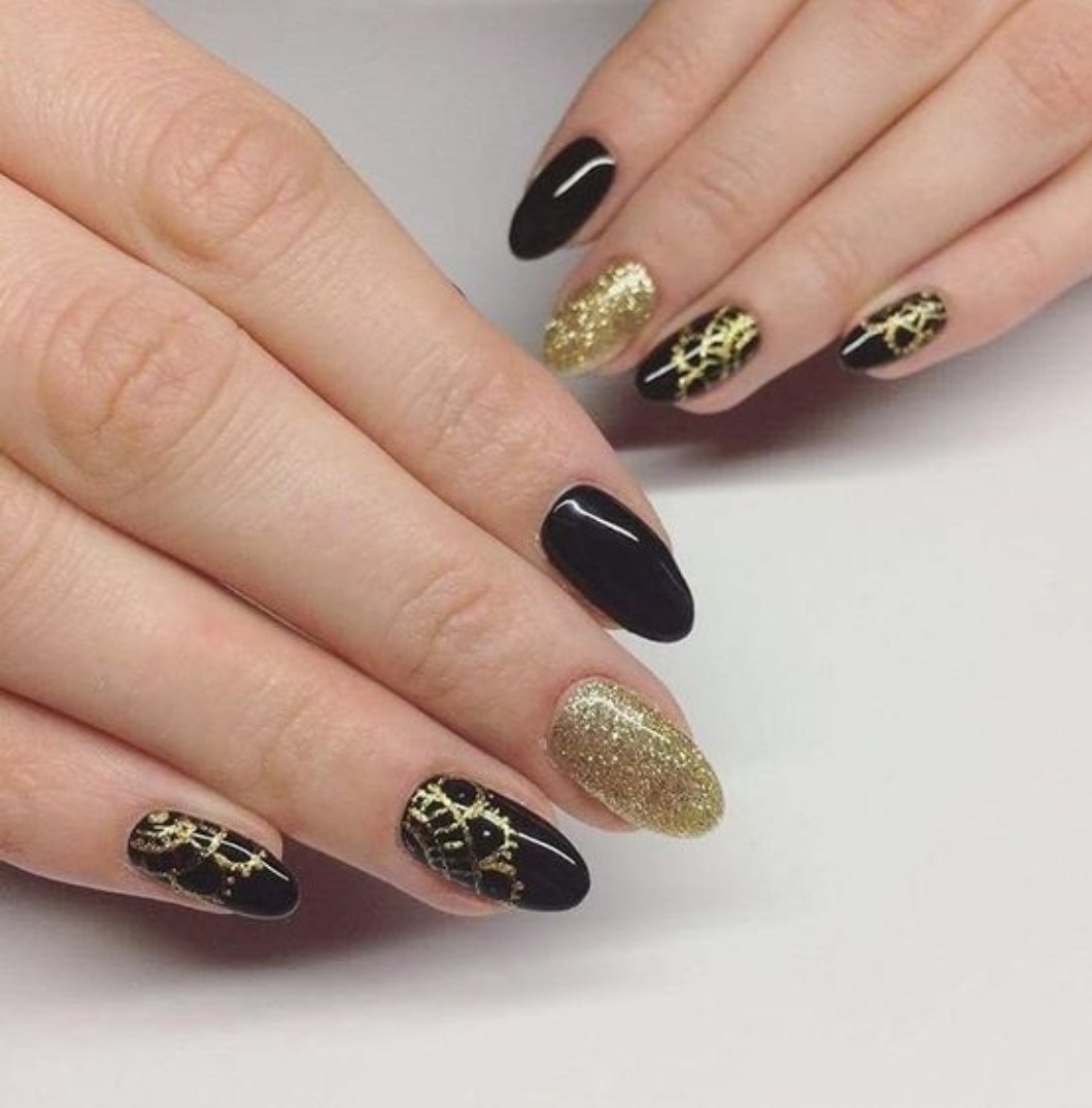 Ногти чёрные с золотом