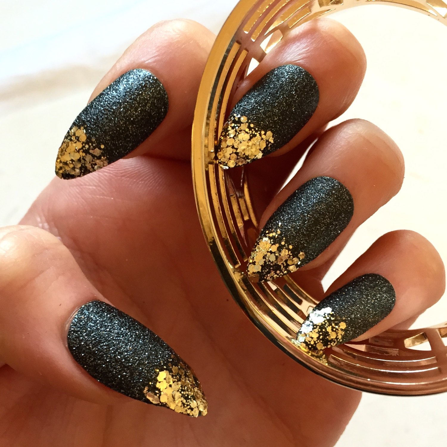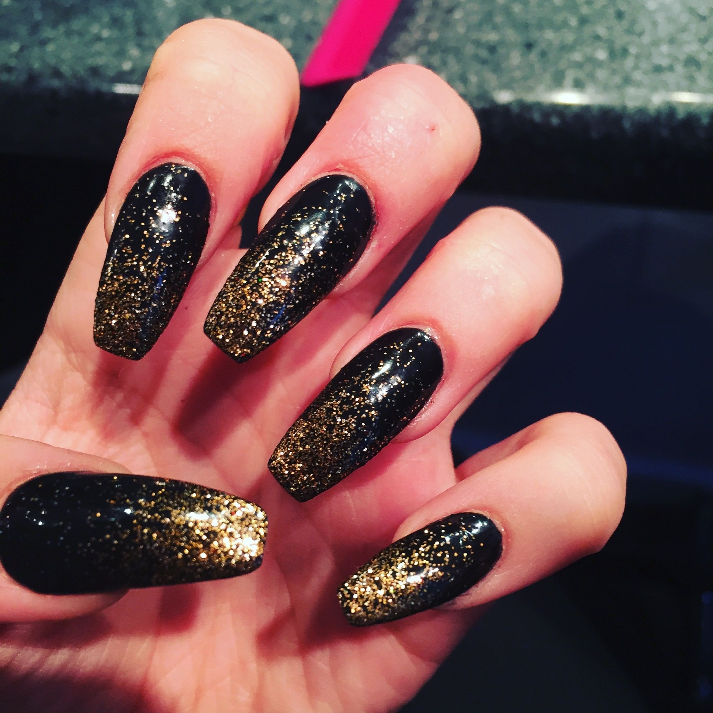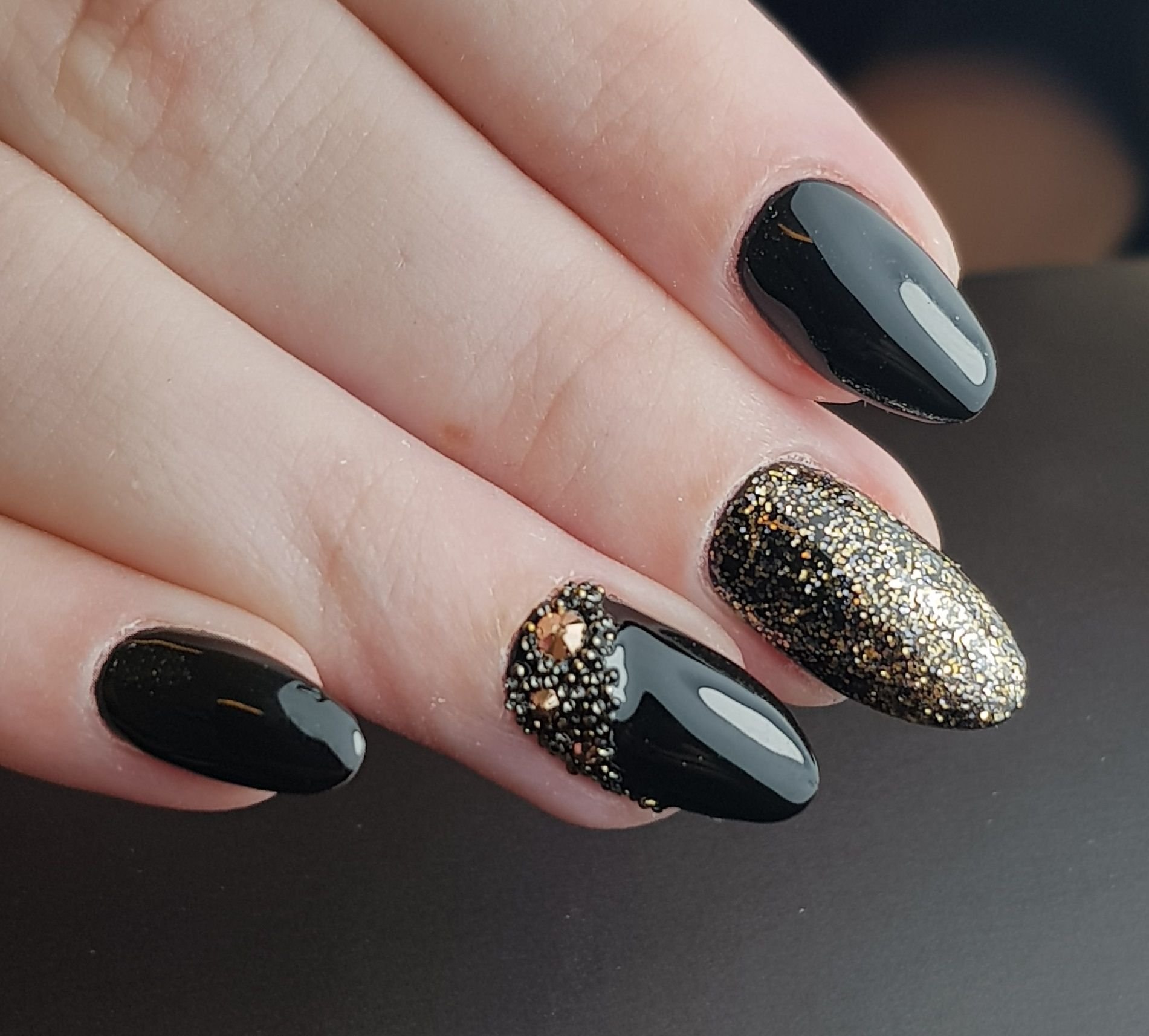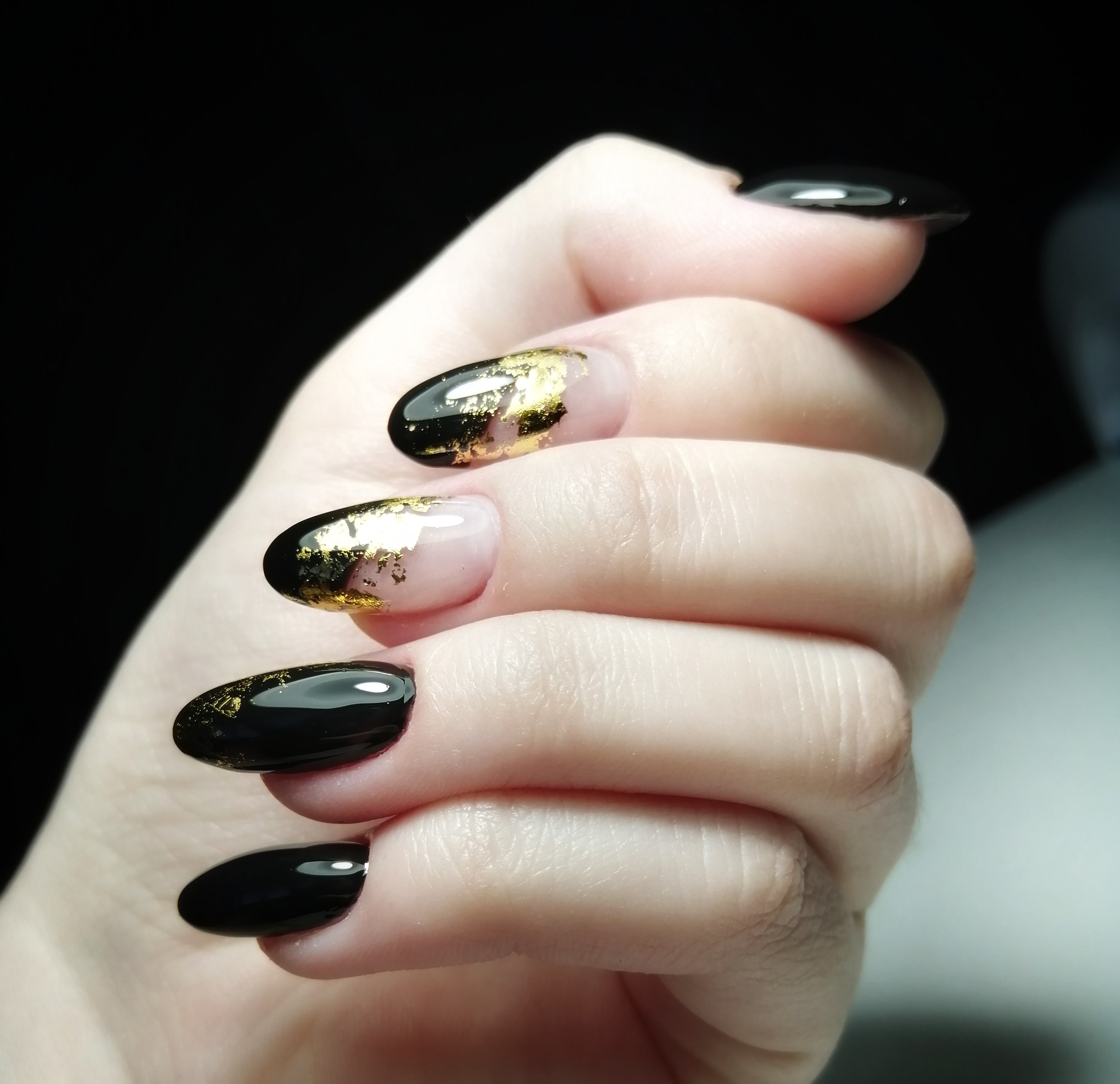 Ногти чёрные с золотом