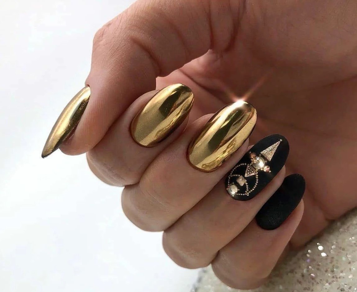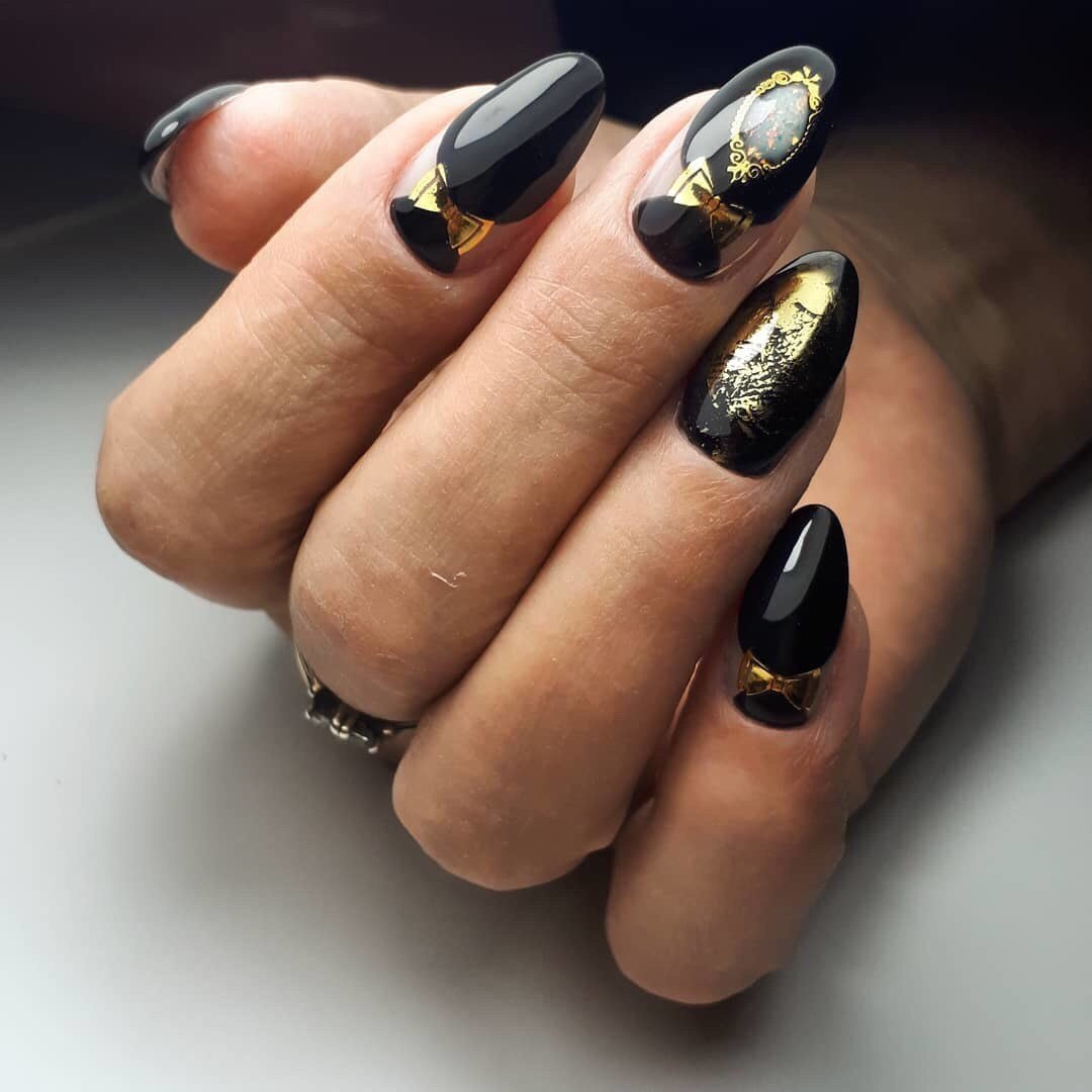 Чернозотлотой маникюр