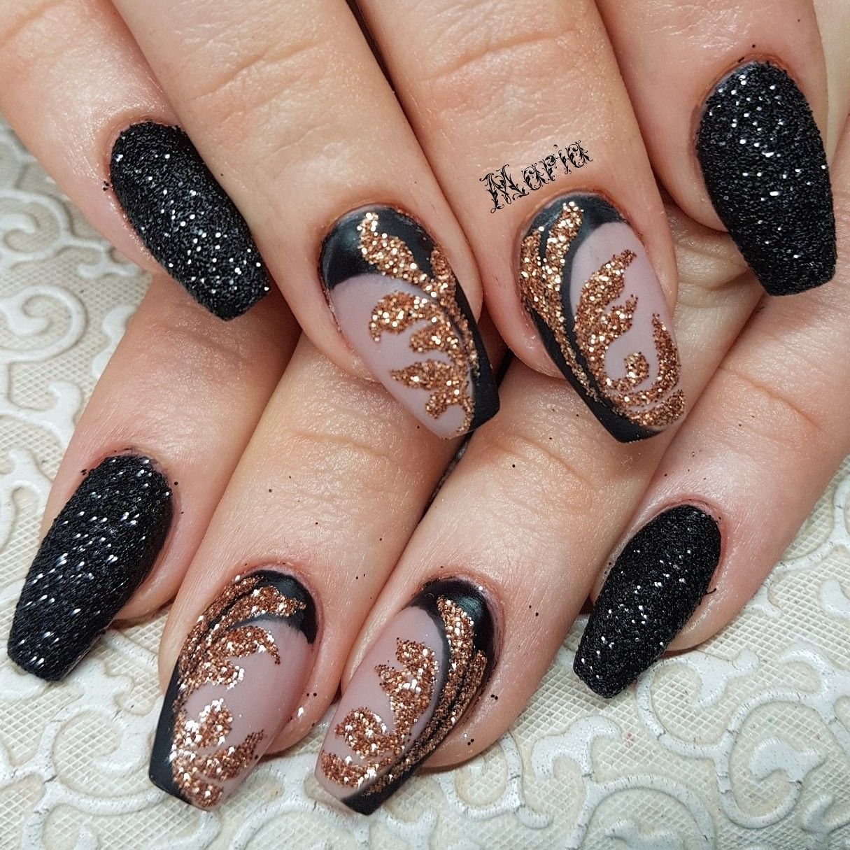 Ногти золото с черным