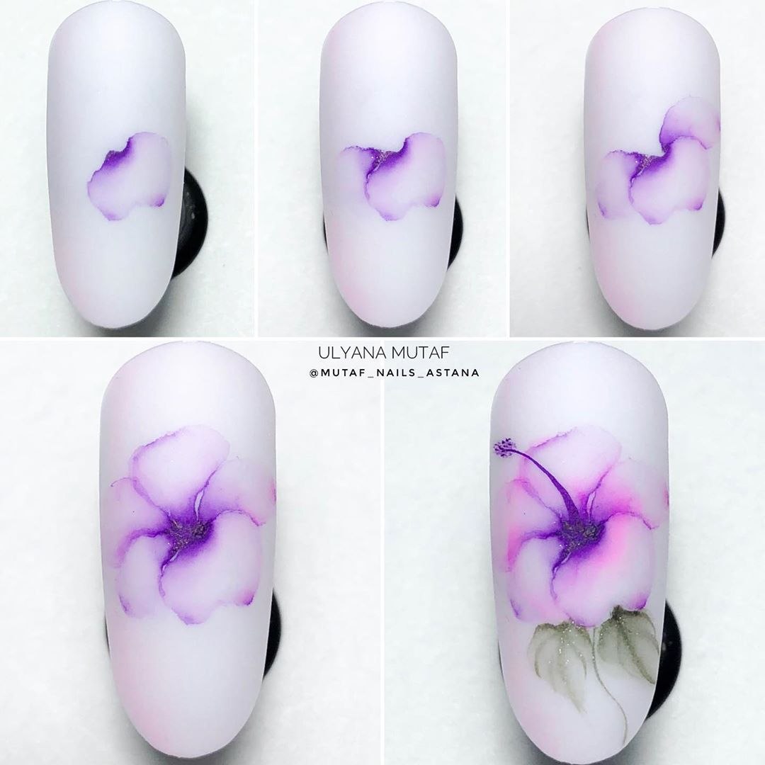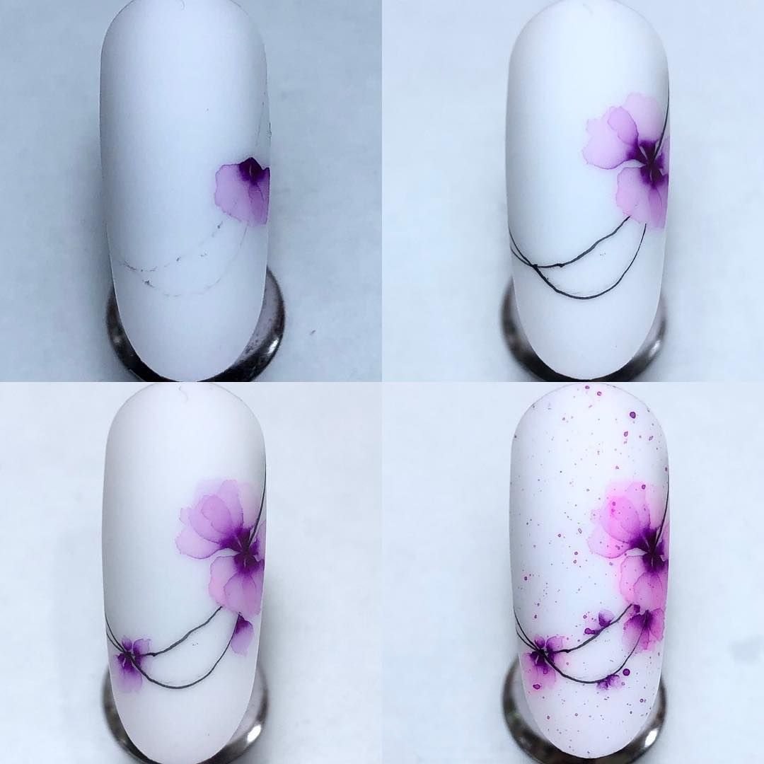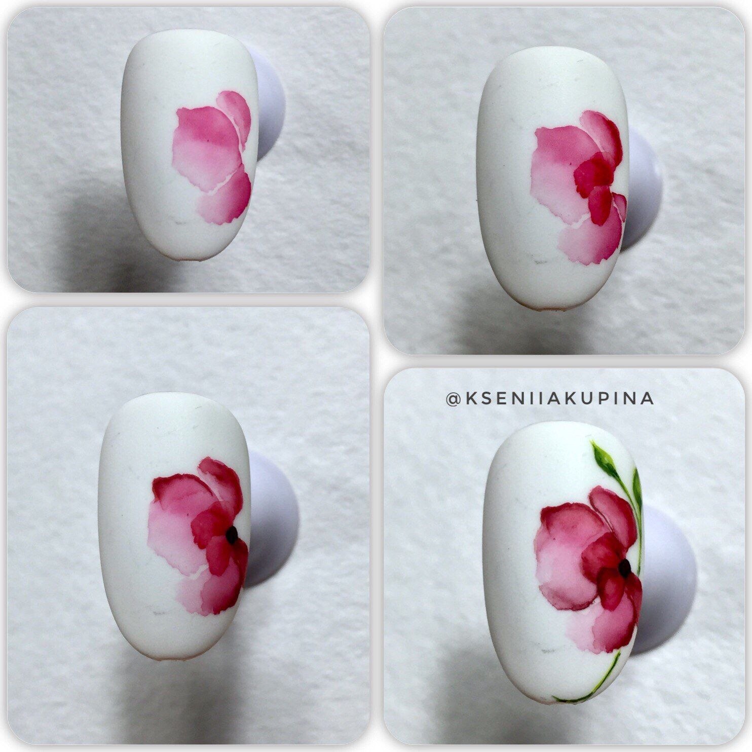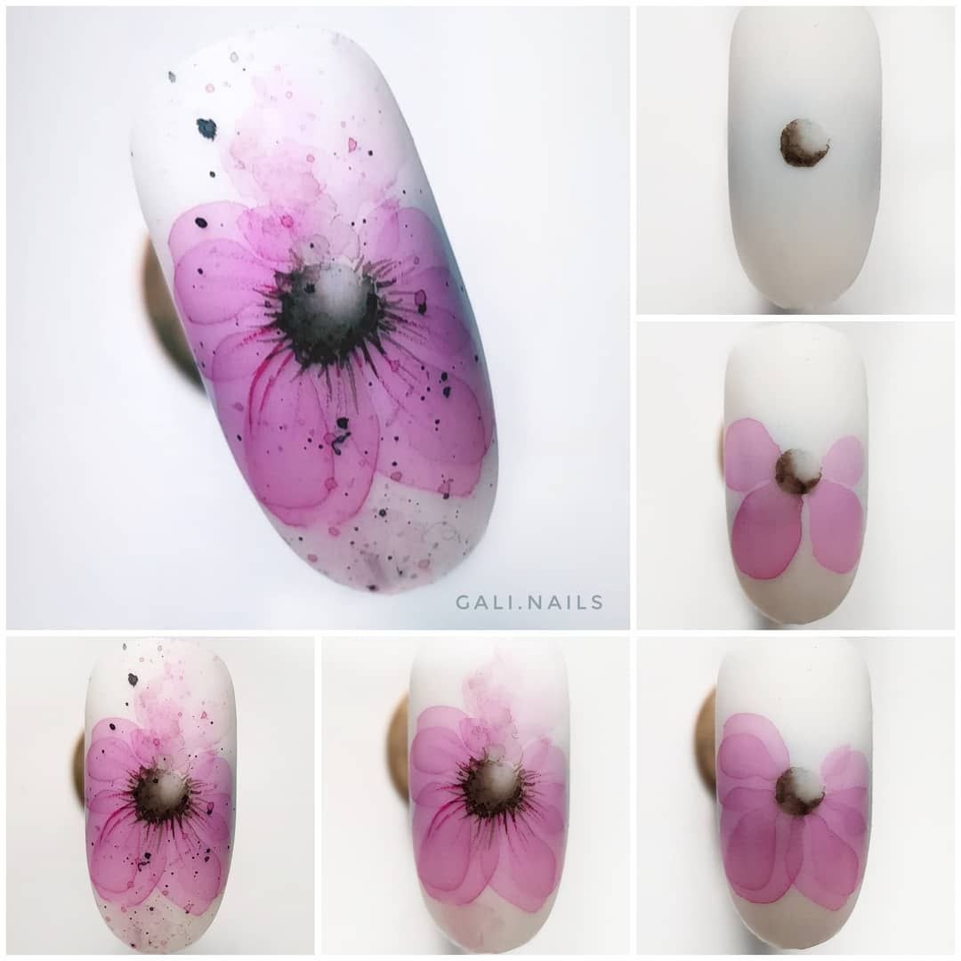 Акварельные цветы на ногтях пошаговое