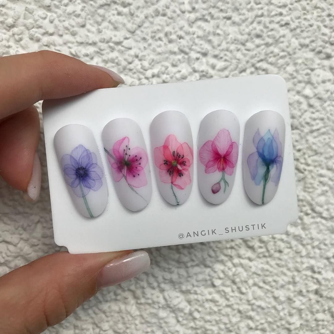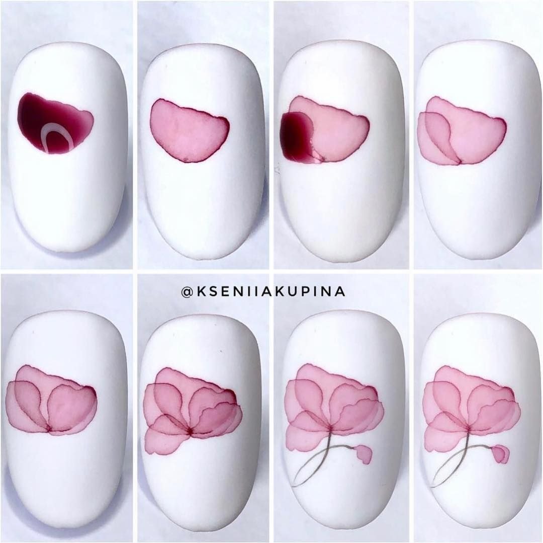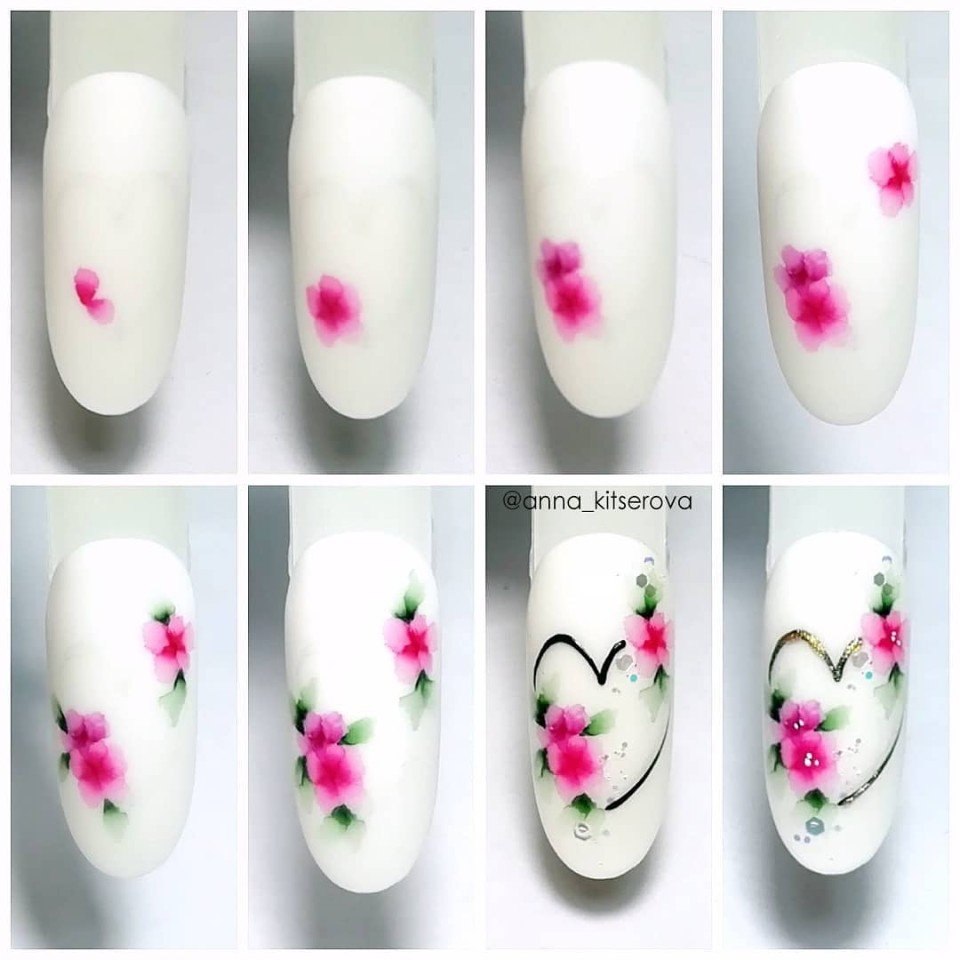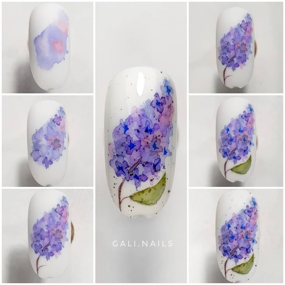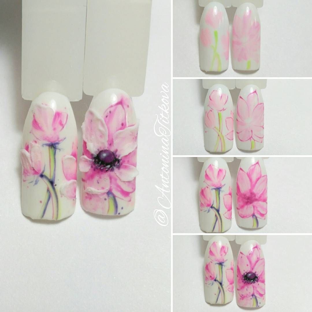 Акварельные цветы на ногтях пошаговое