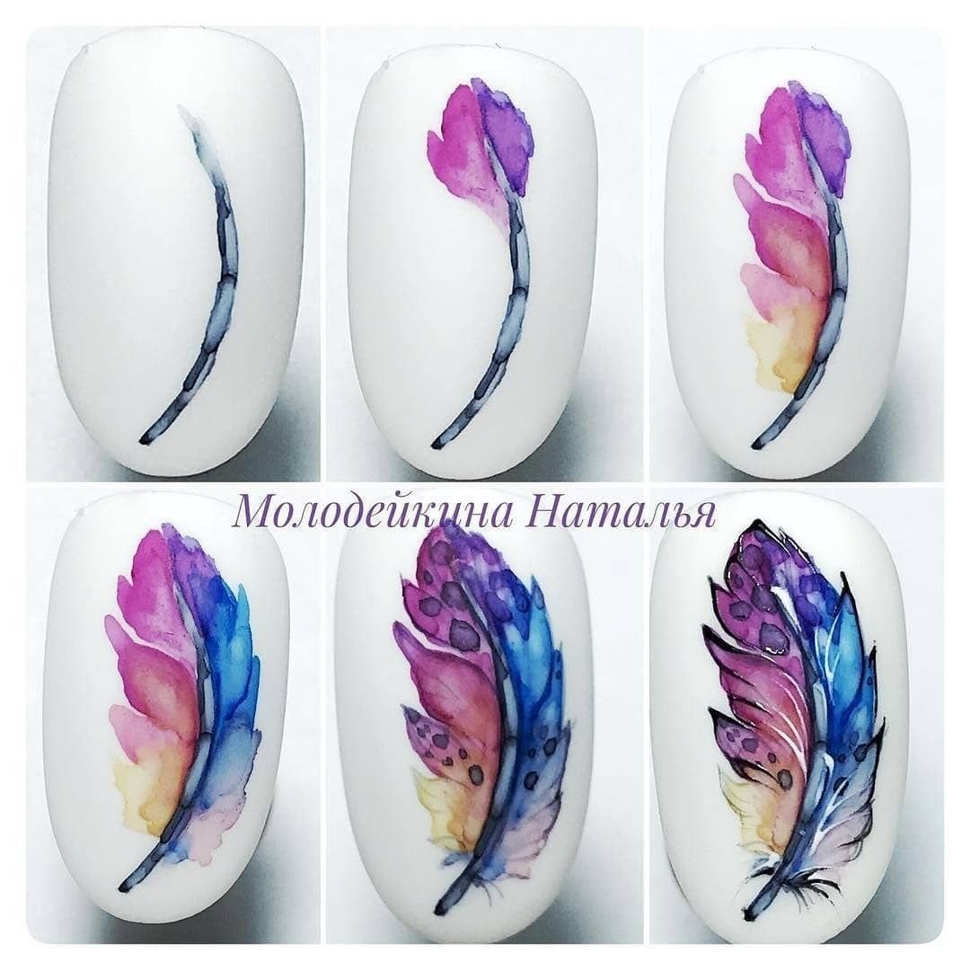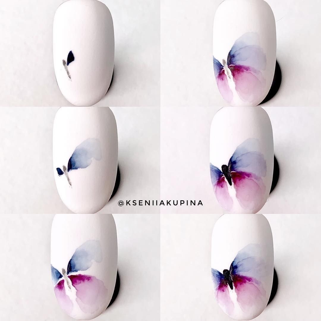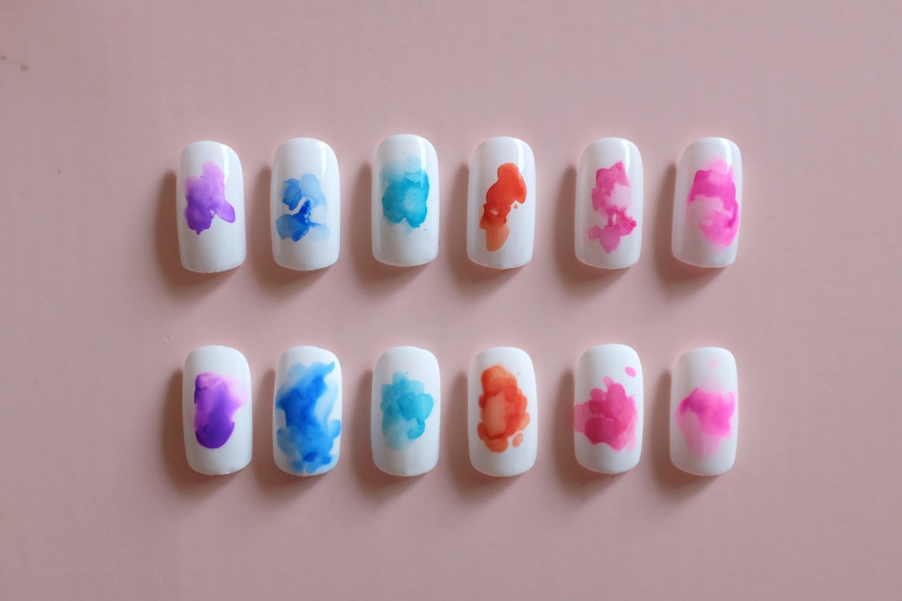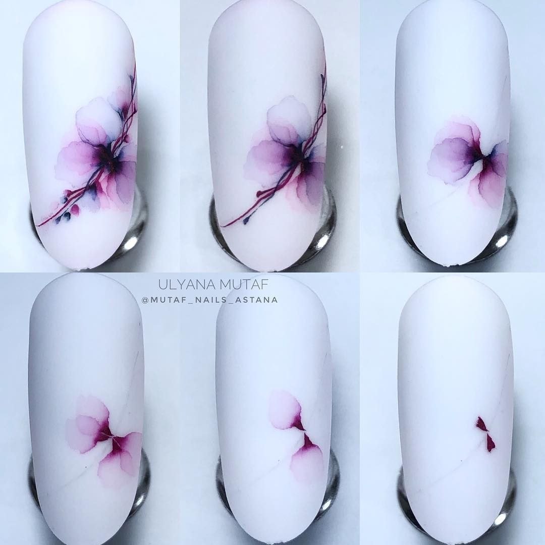Акварель на ногтях пошагово