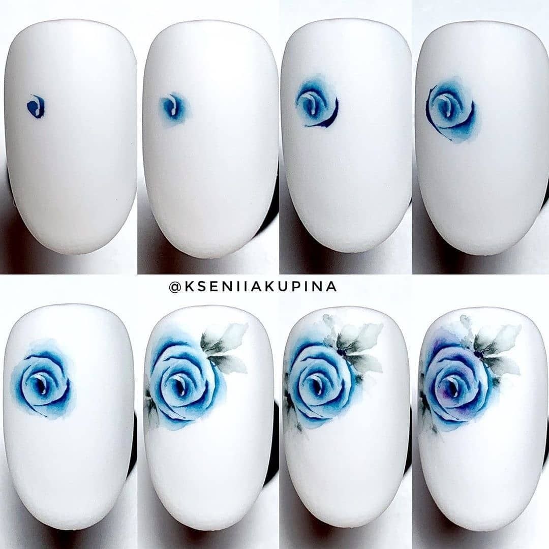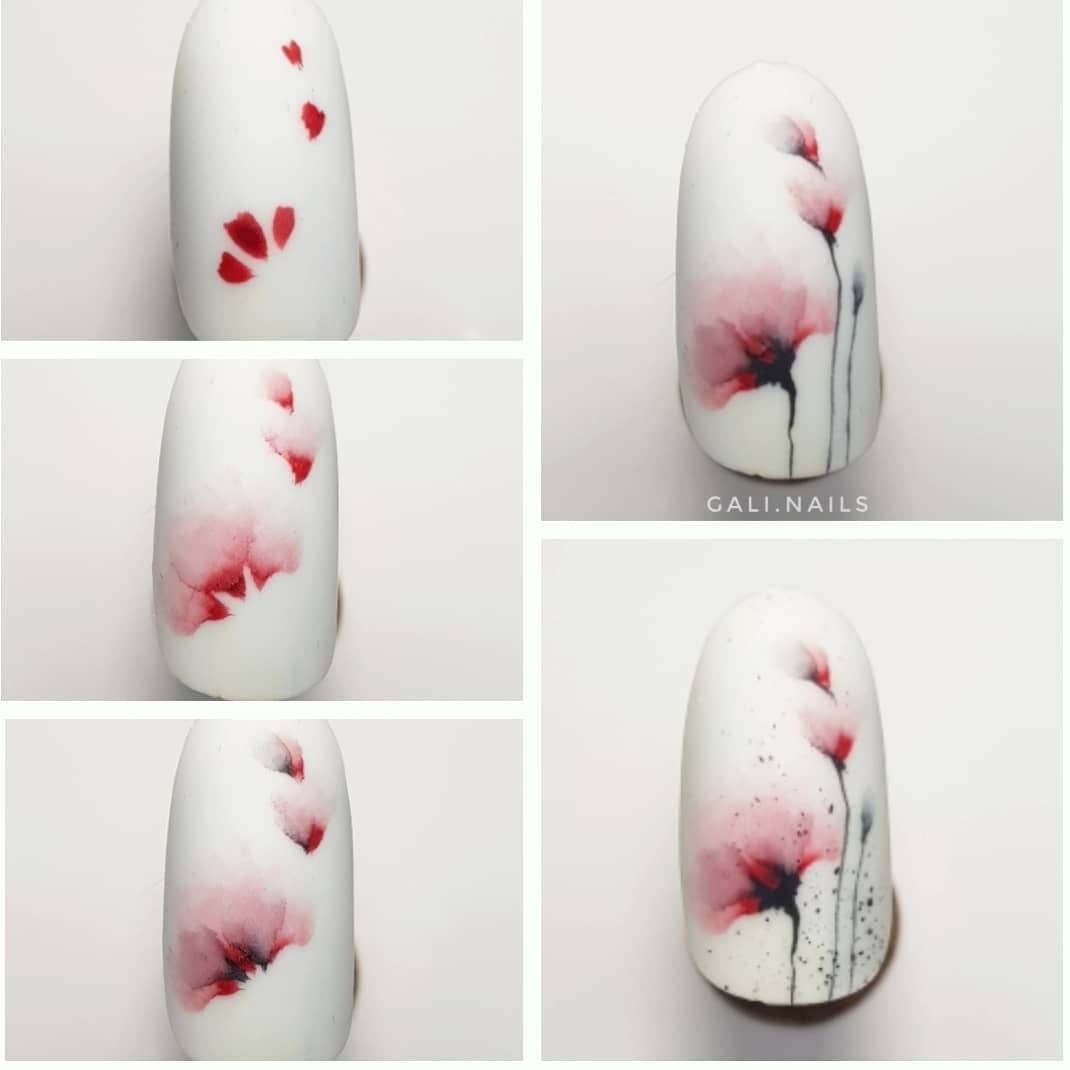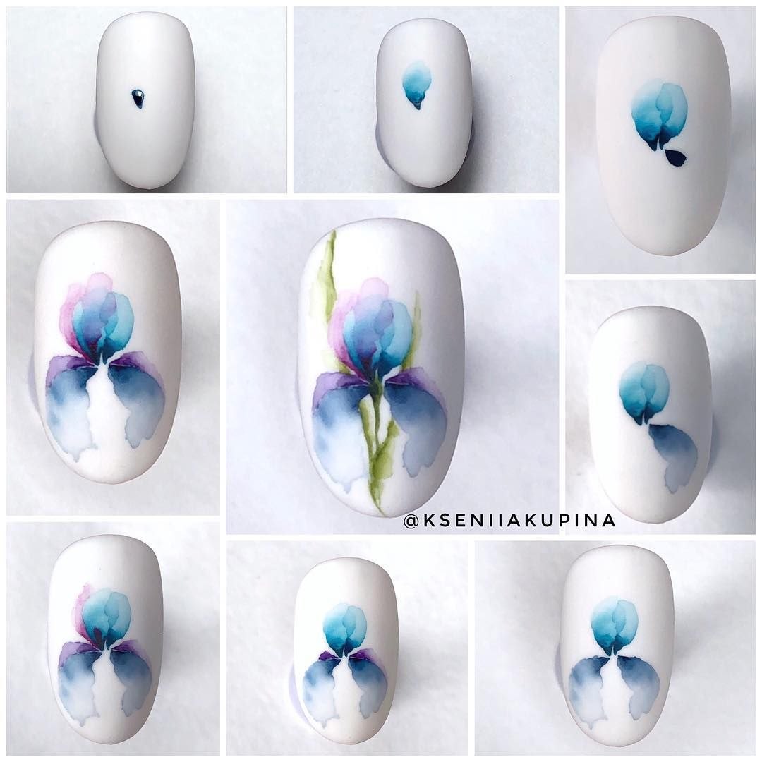 Рисунки акварелью на ногтях пошагово