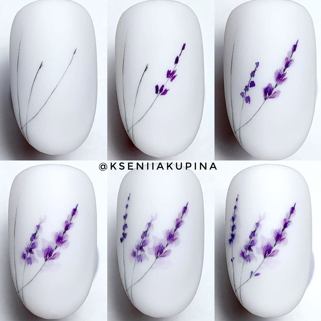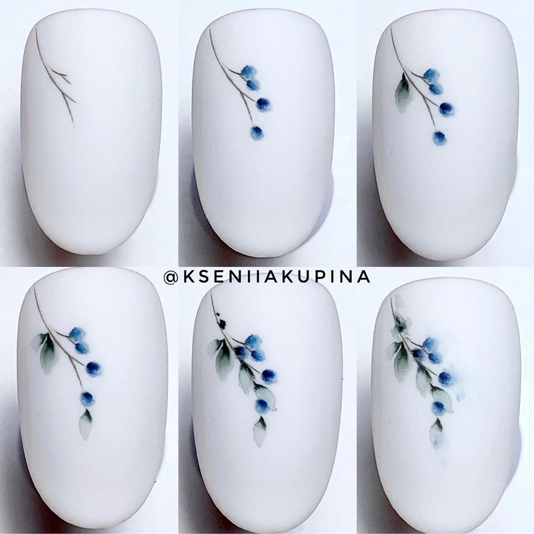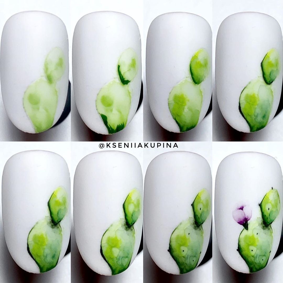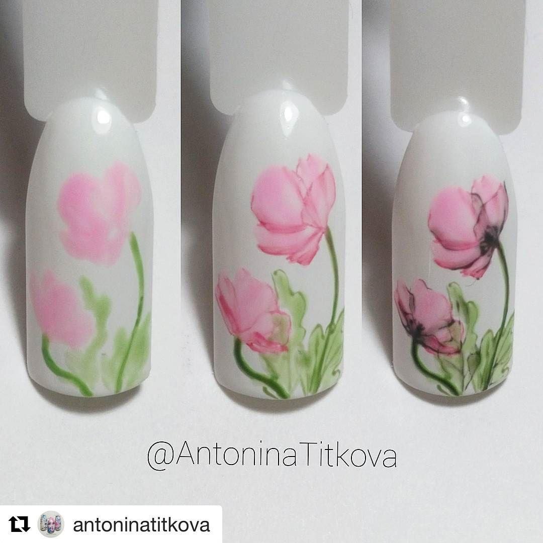 Рисунки акварелью на ногтях пошагово