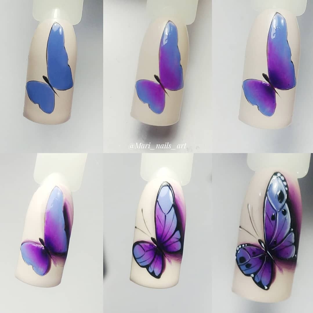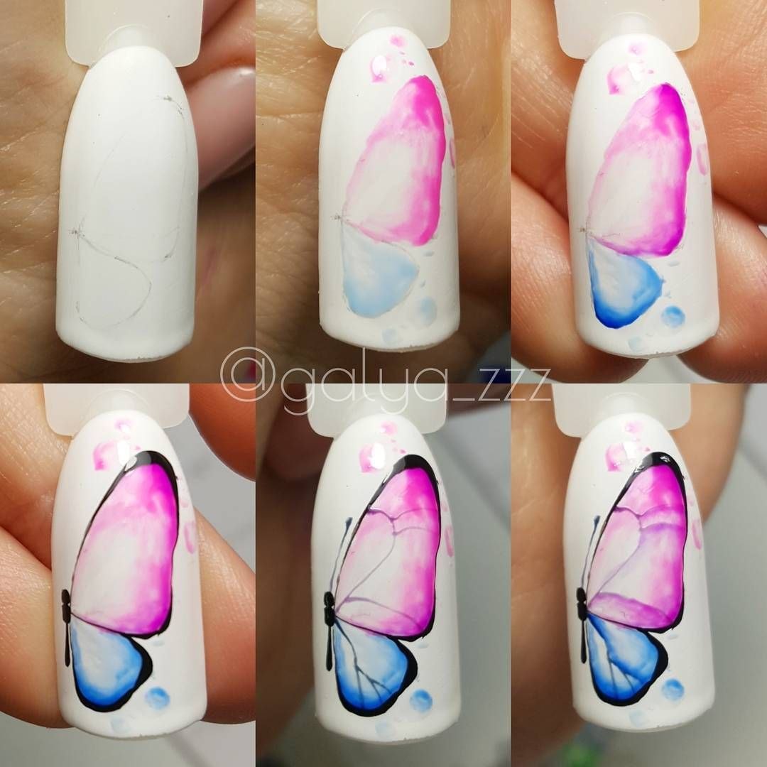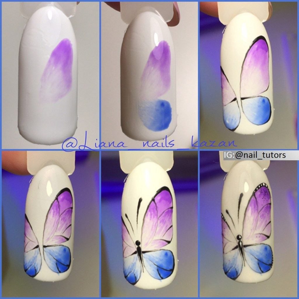 Бабочка на ногтях пошагово