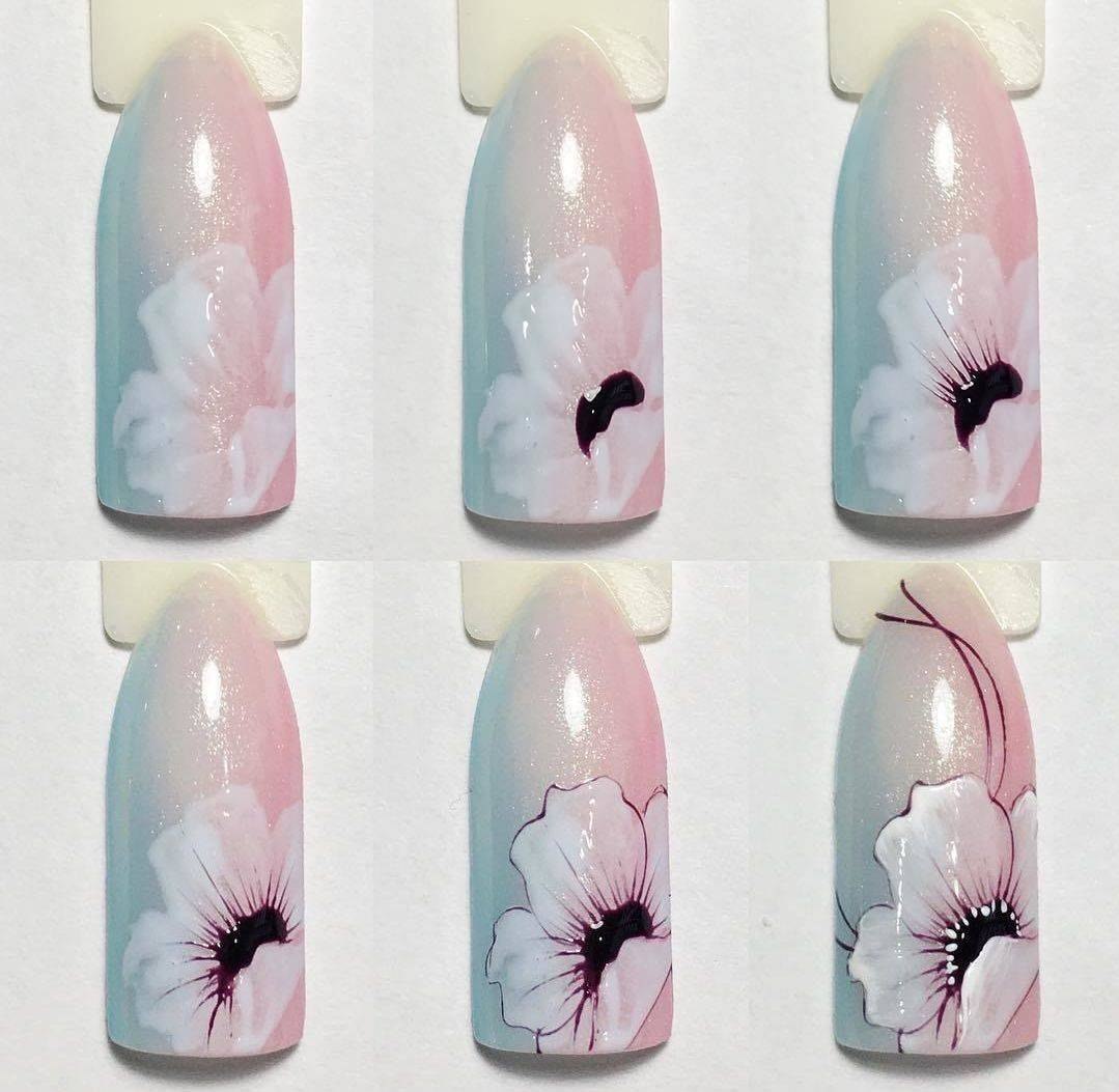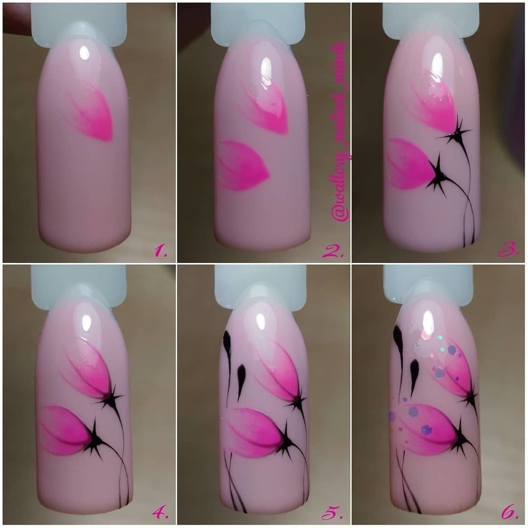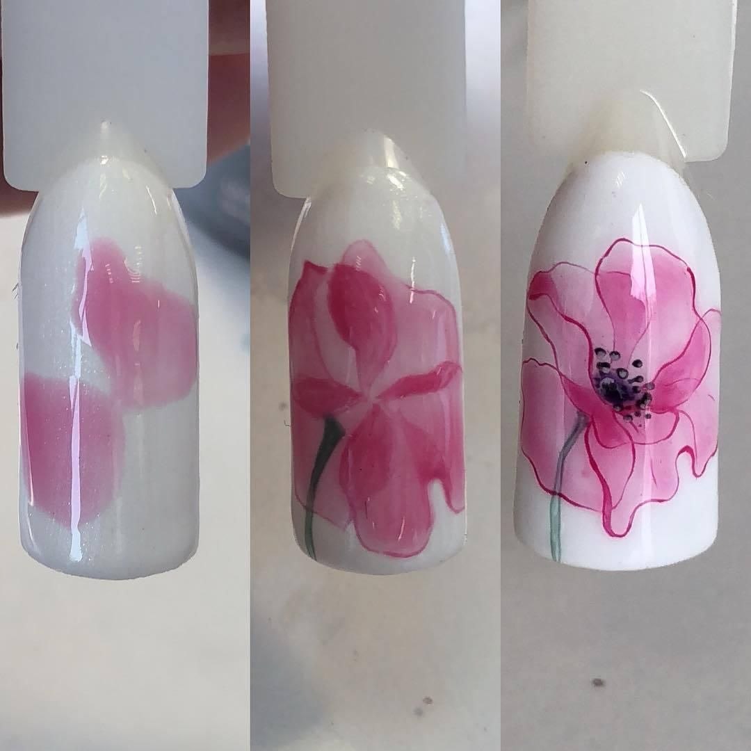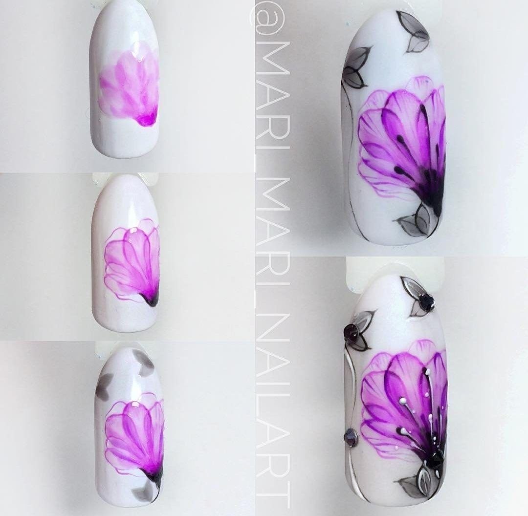 Цветы на ногтях пошагово для начинающих