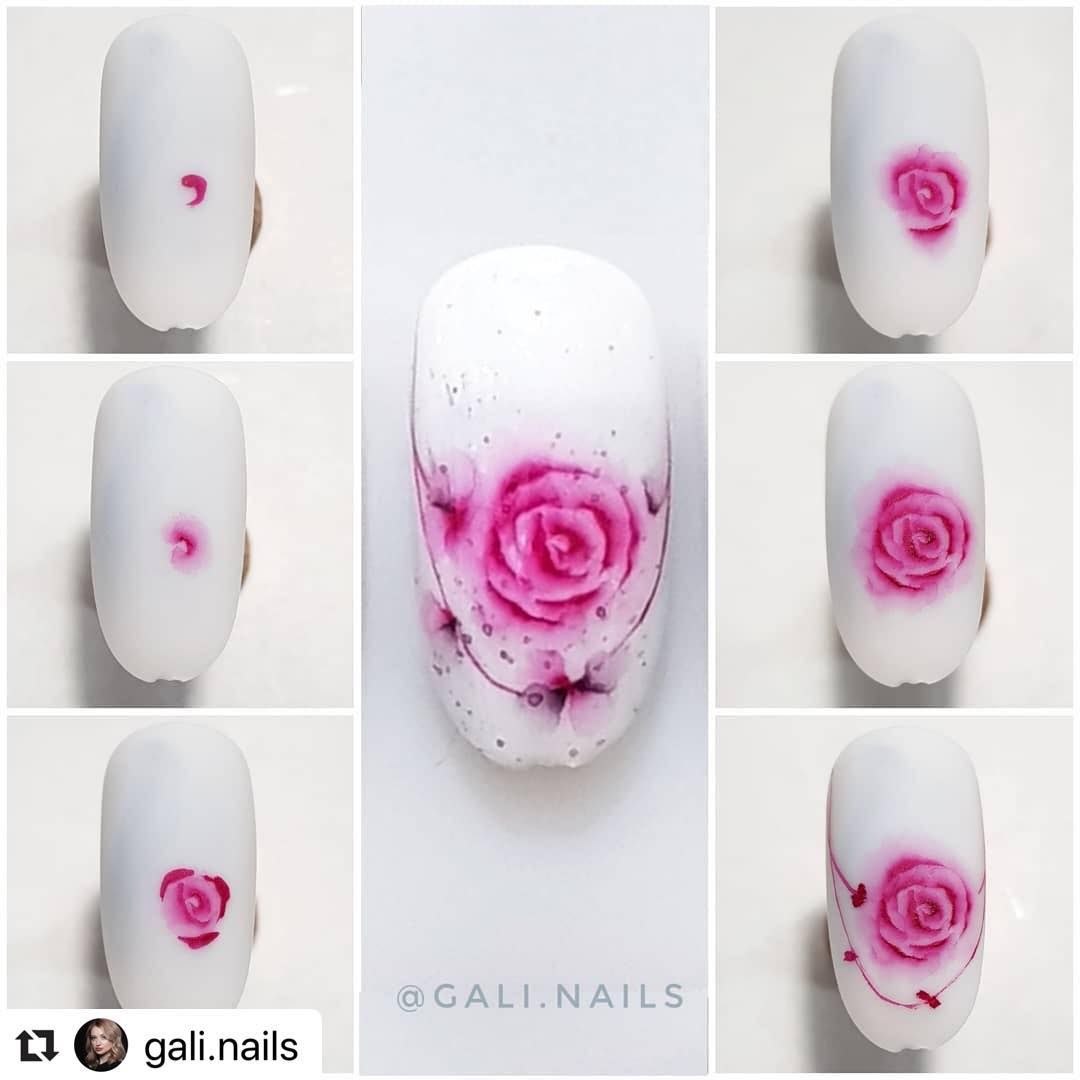 Роза акварелью на ногтях