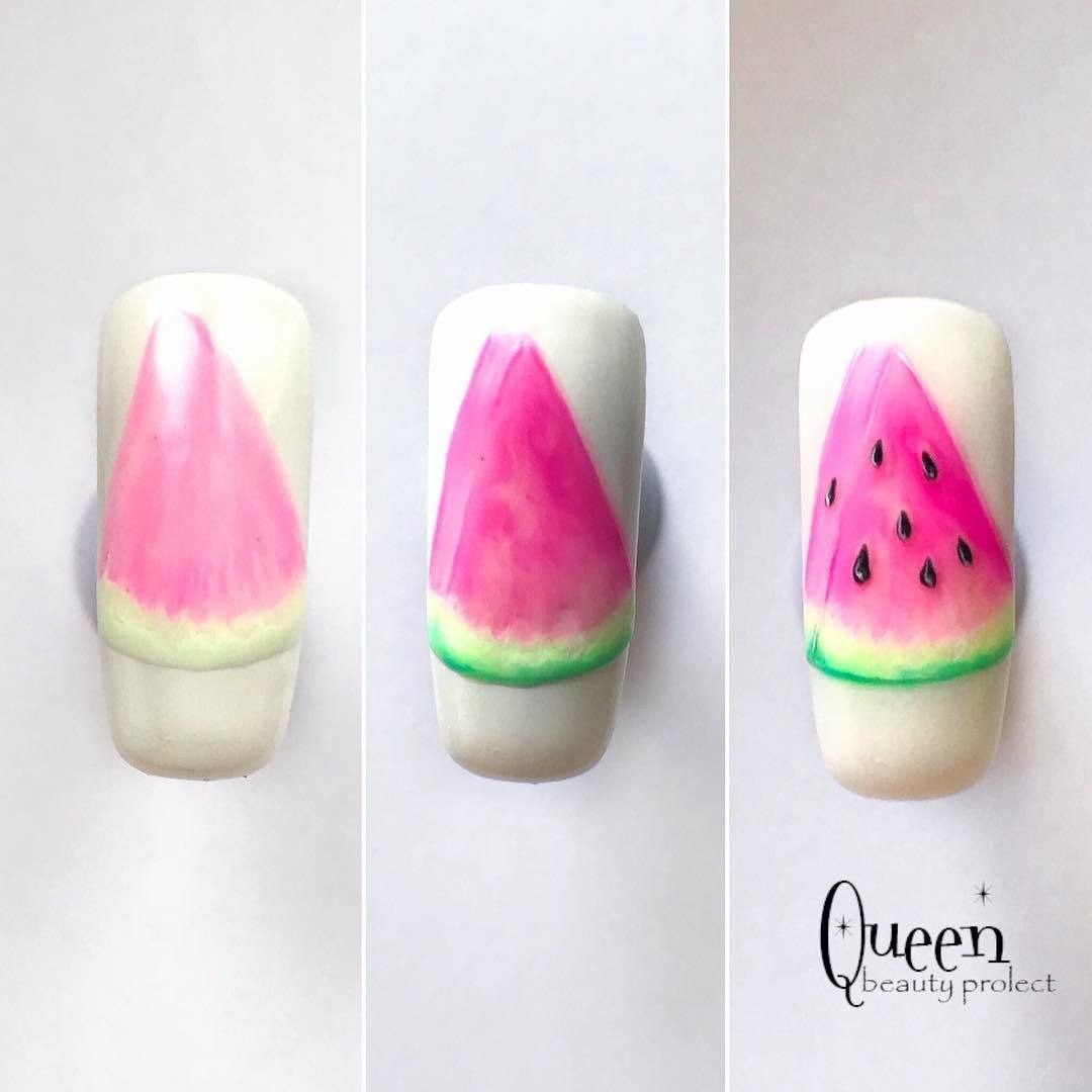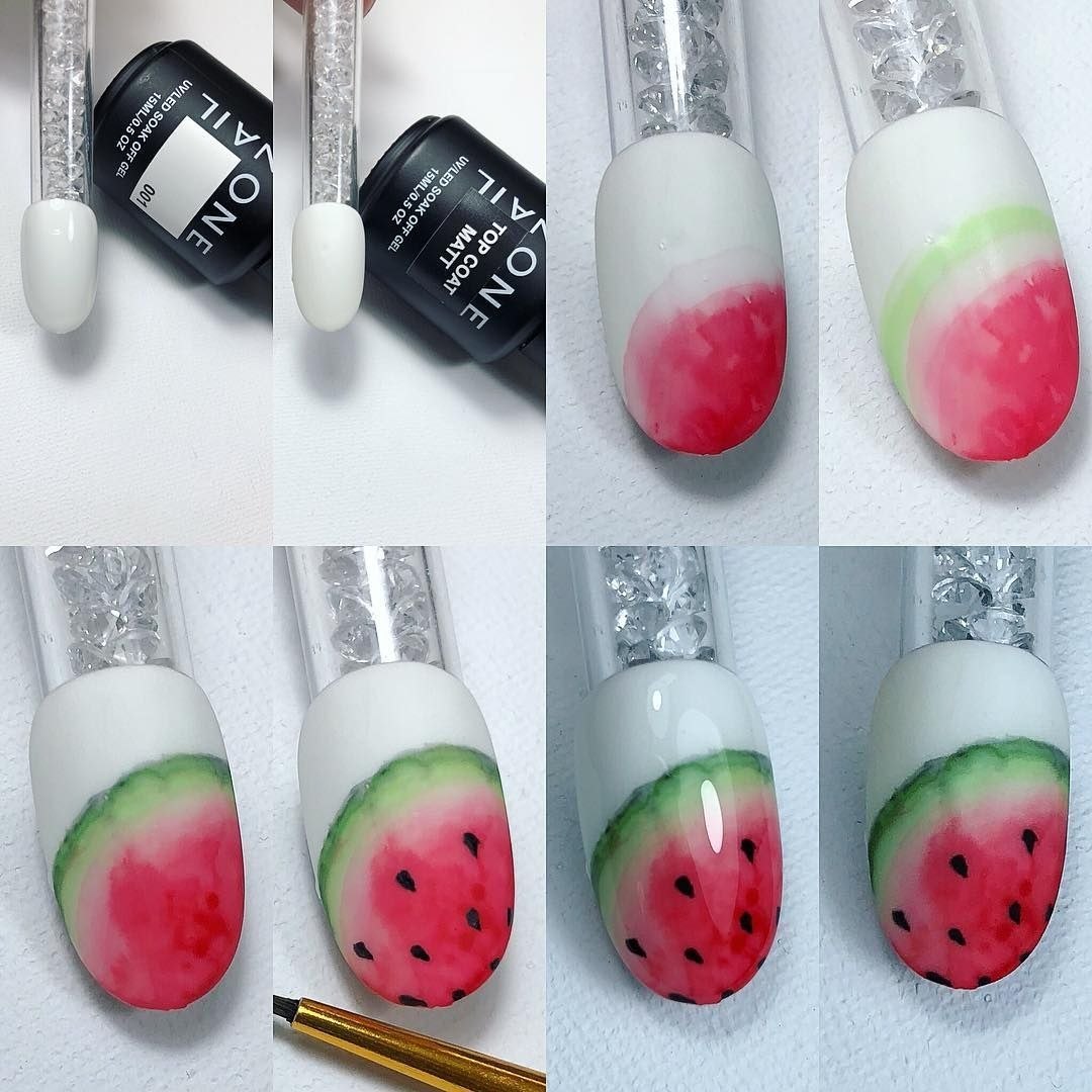Арбуз на ногтях пошагово