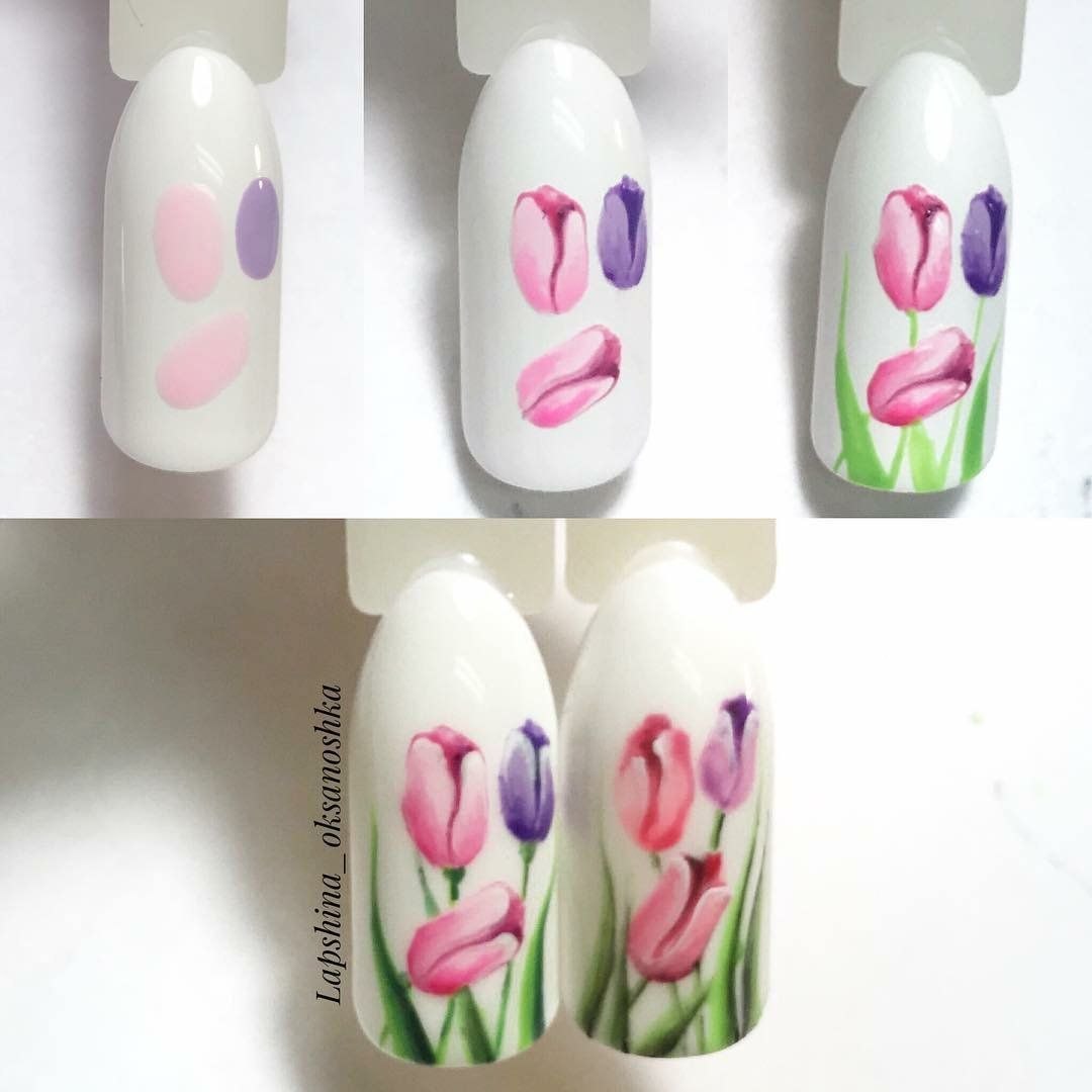 Тюльпаны на ногтях пошагово