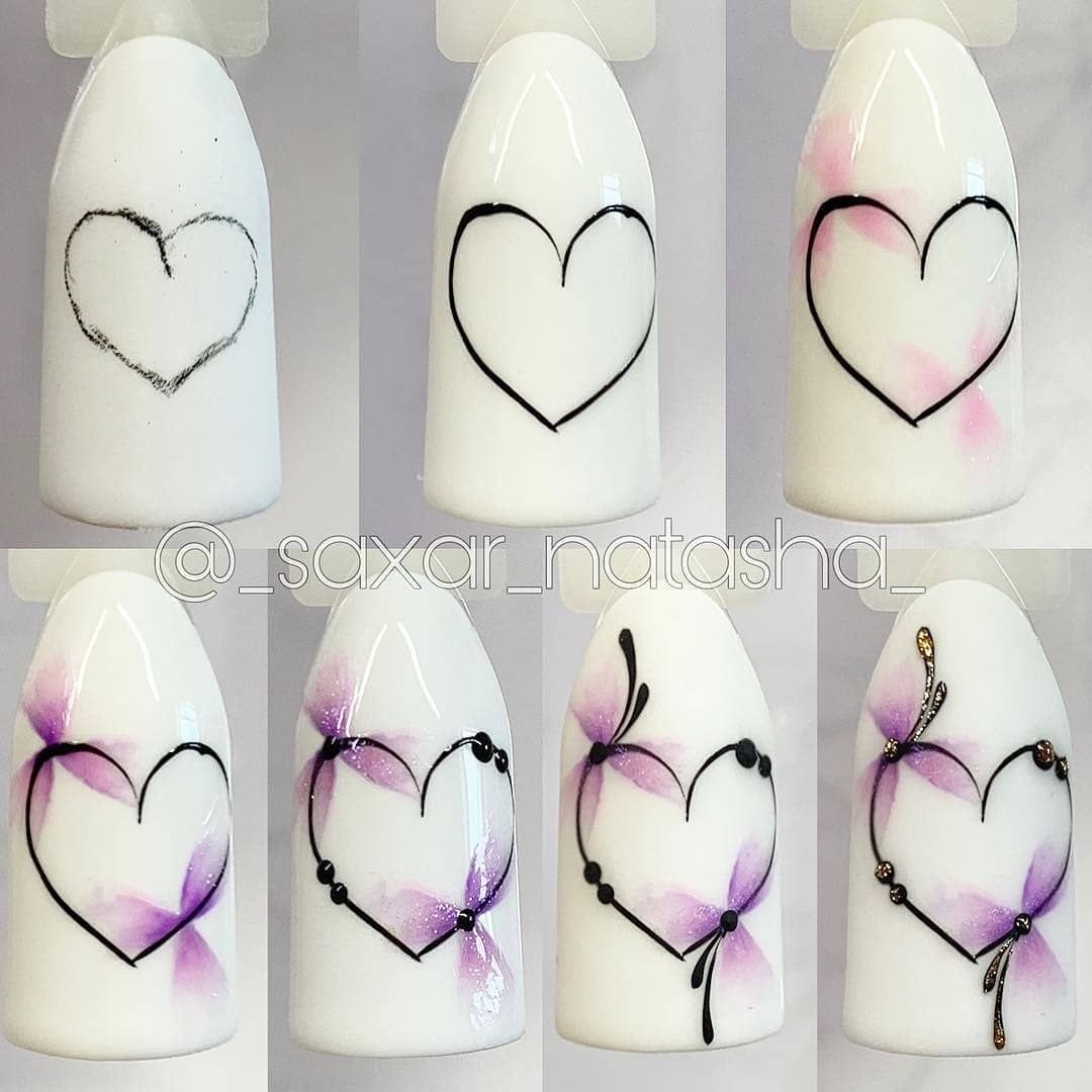 Сердце на ногтях дизайн пошагово