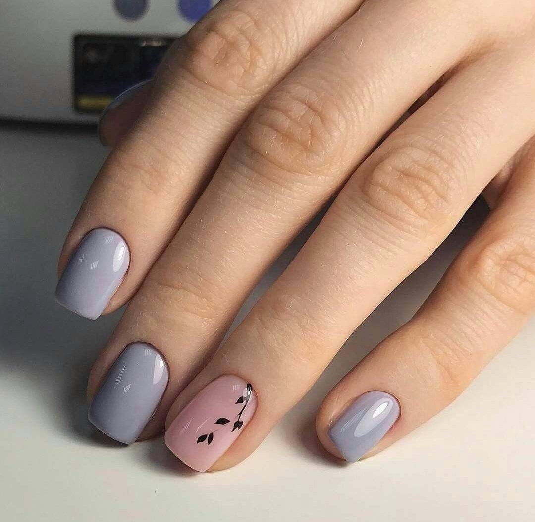 Маникюр серый с розовым