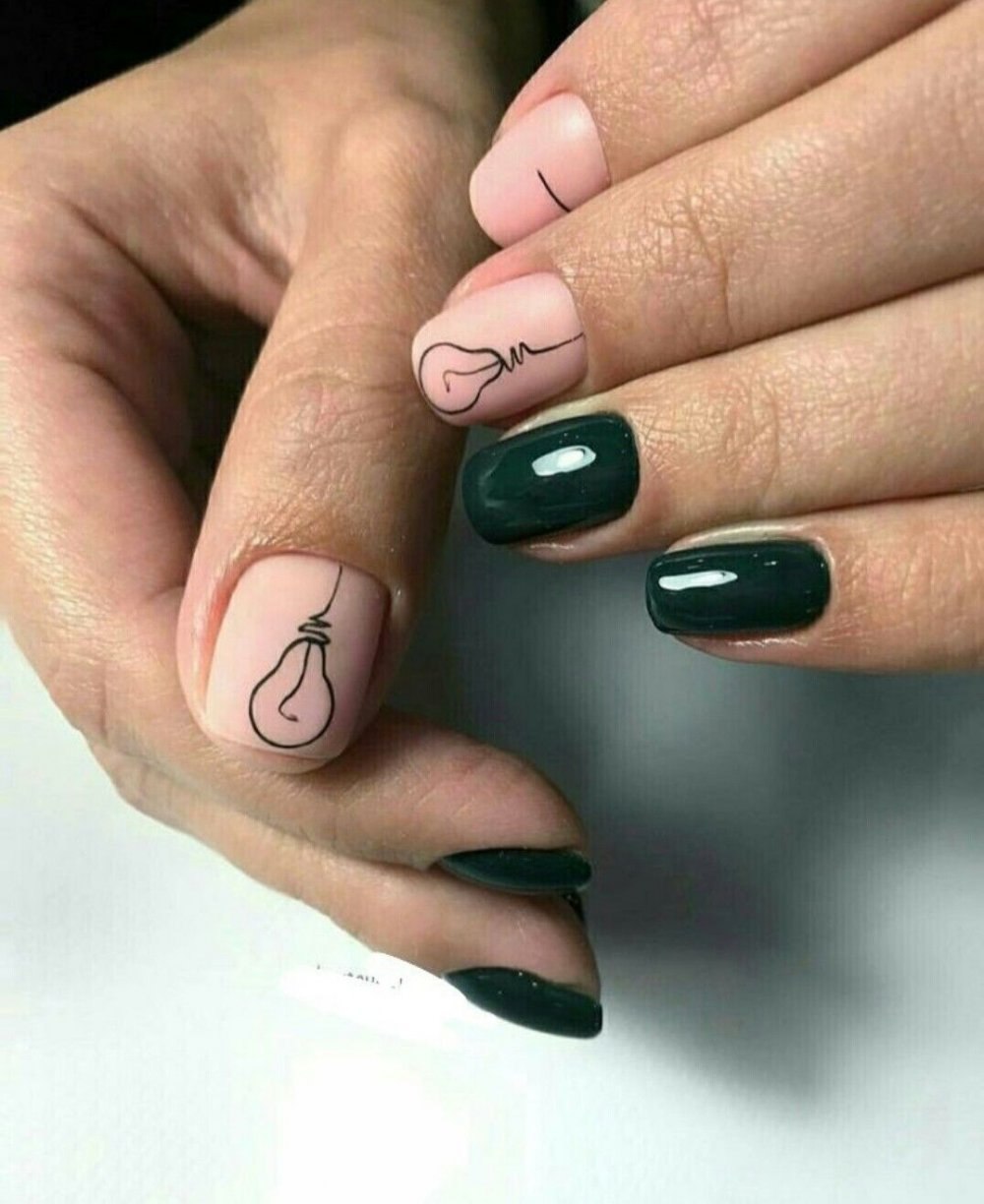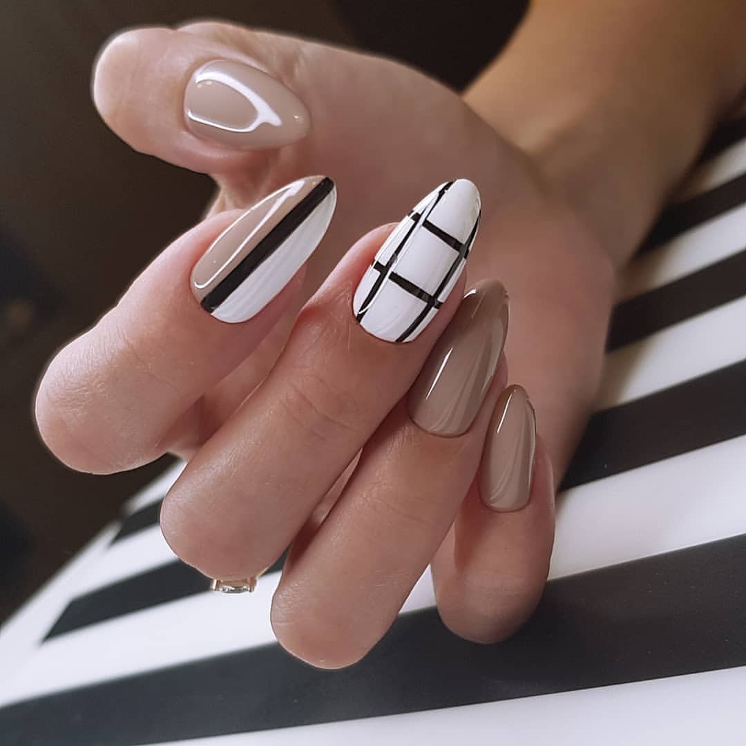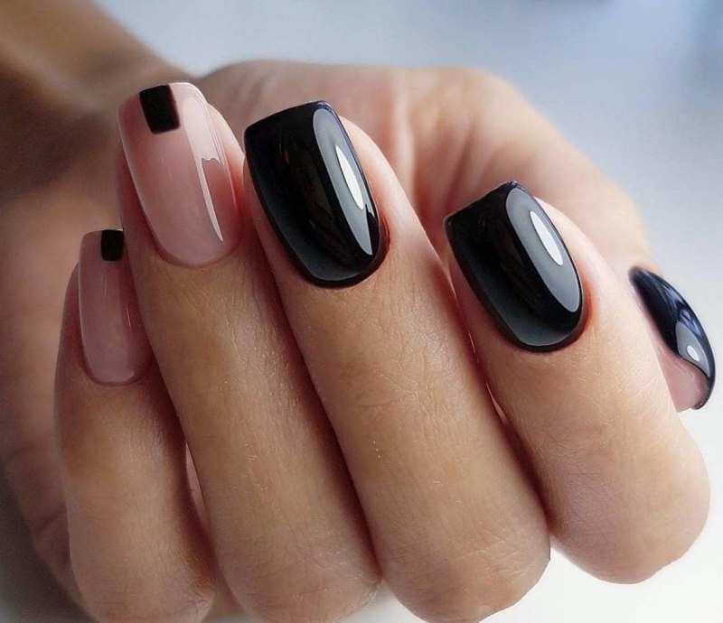 Черно бежевый маникюр