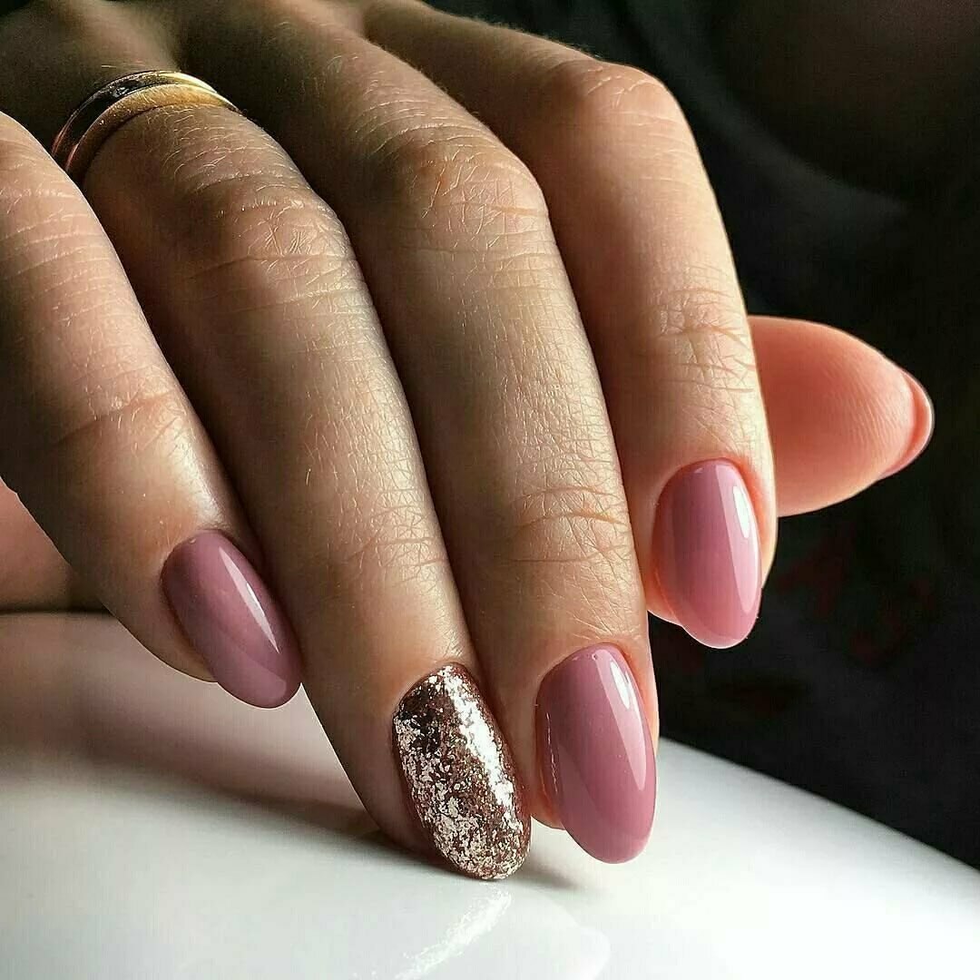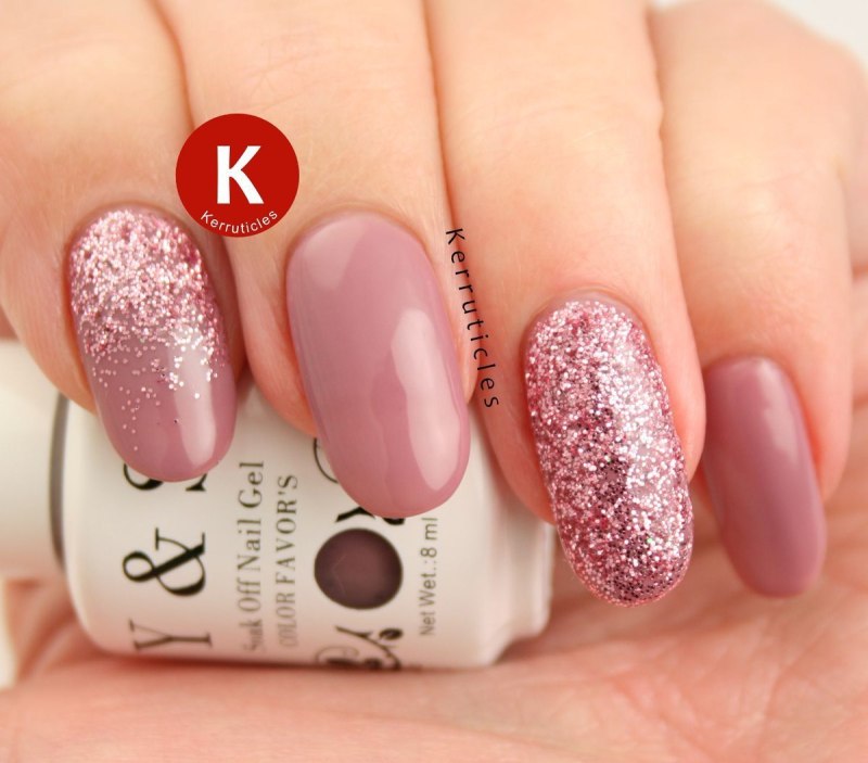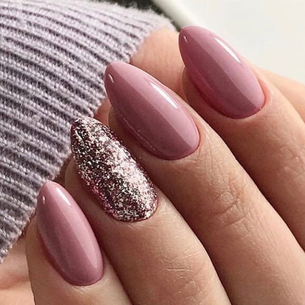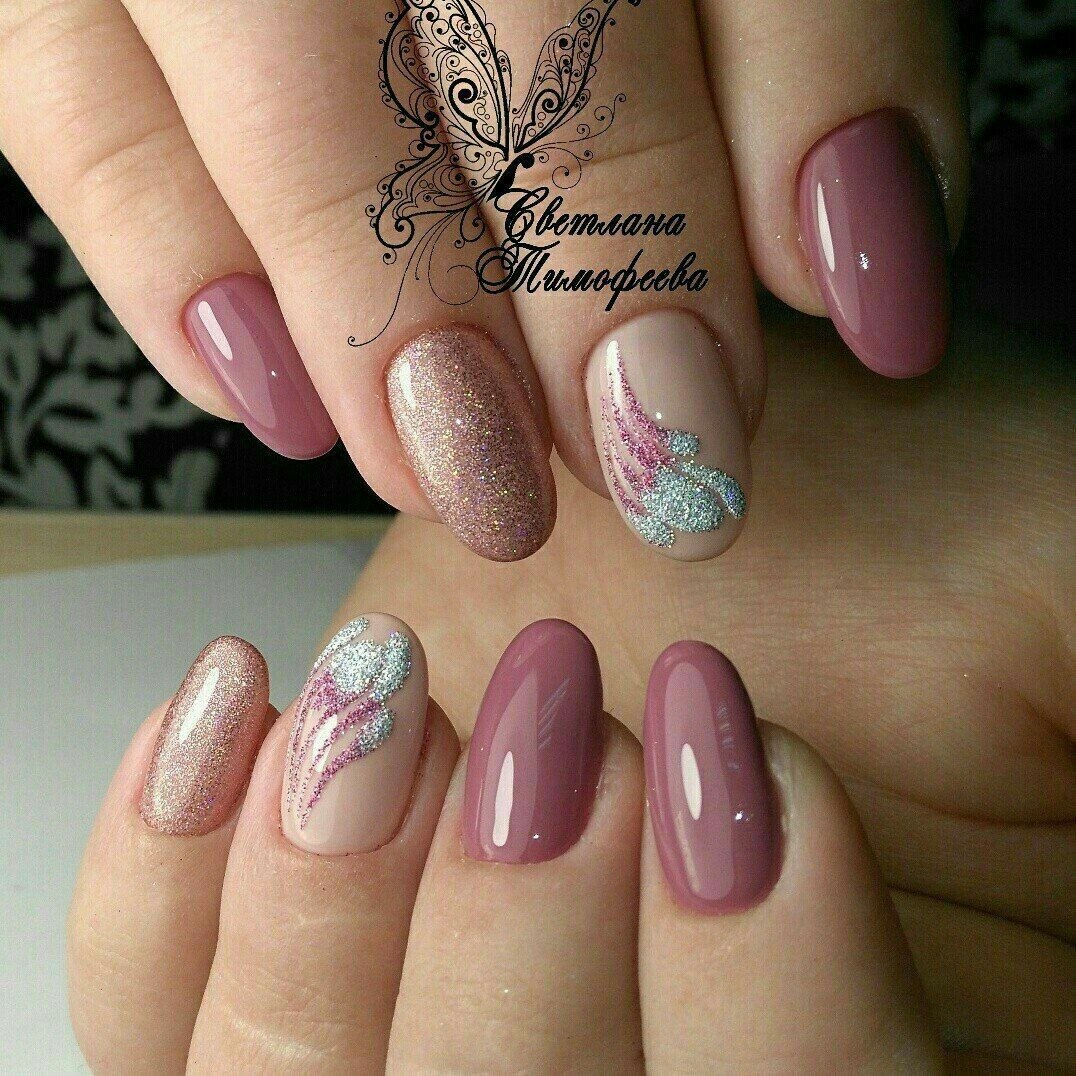 Пыльно розовый маникюр с блестками