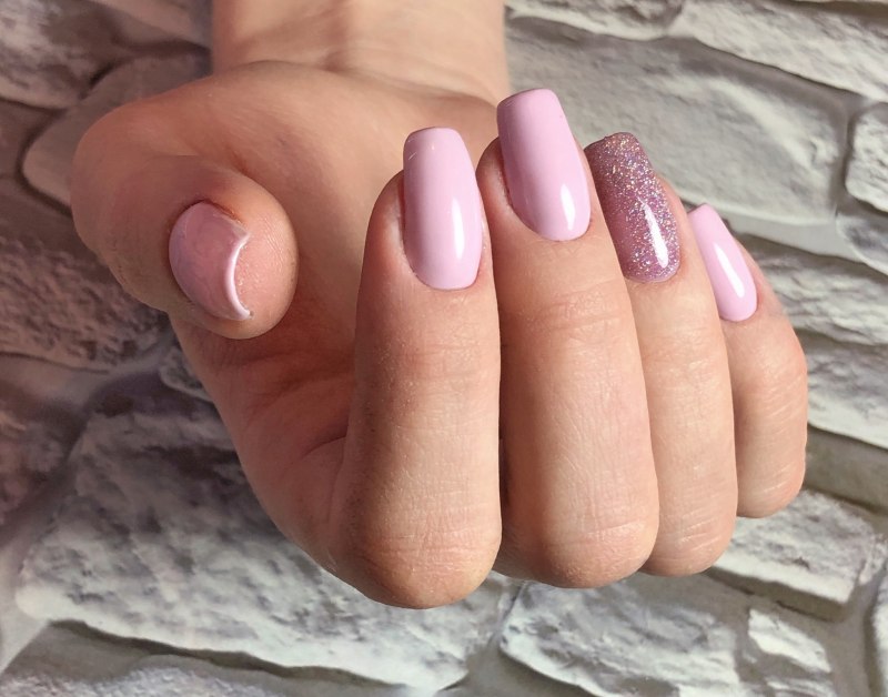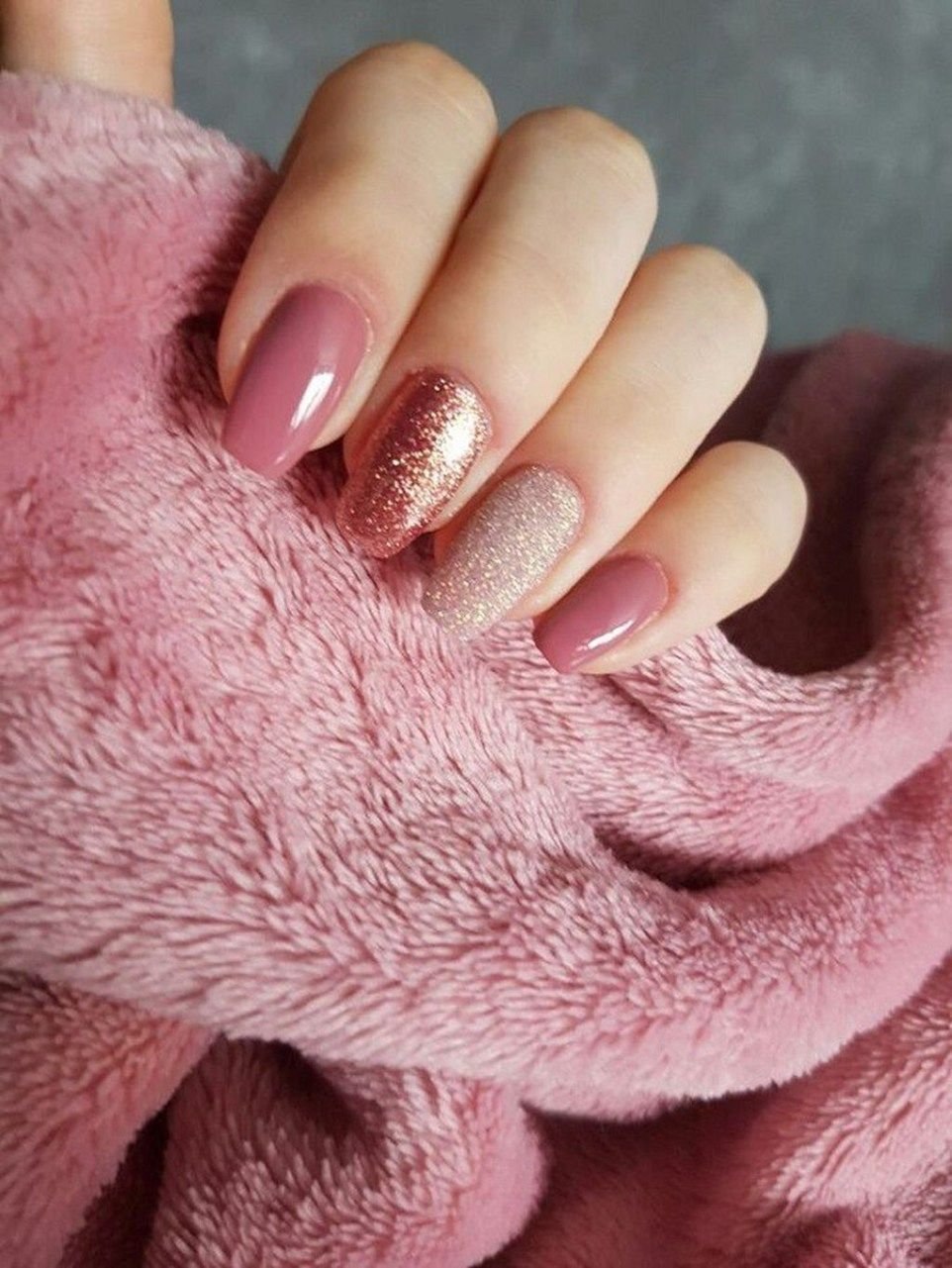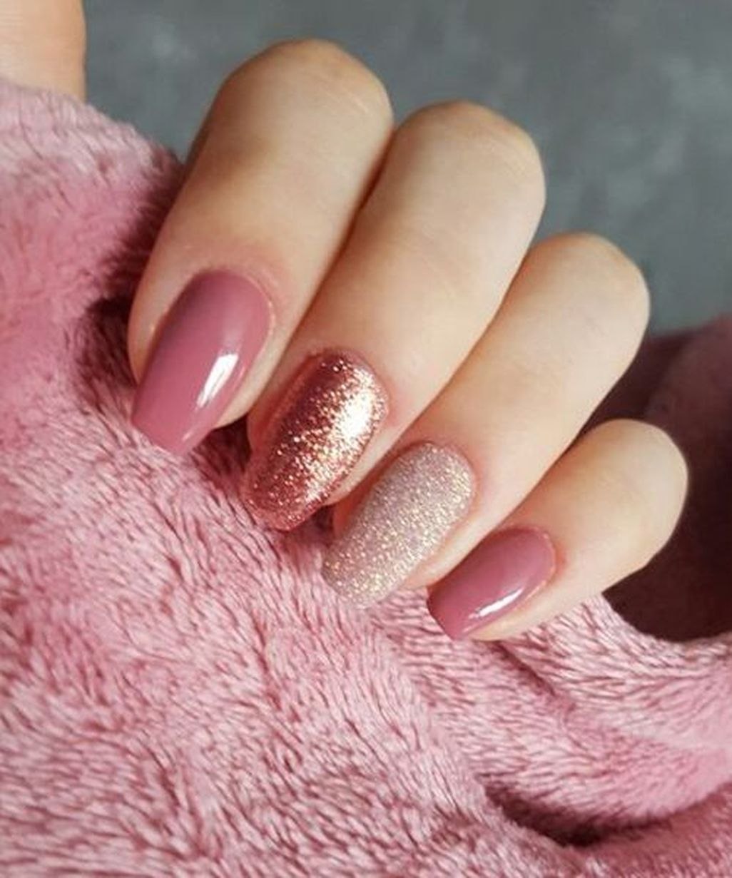 Пыльно розовый маникюр с блестками