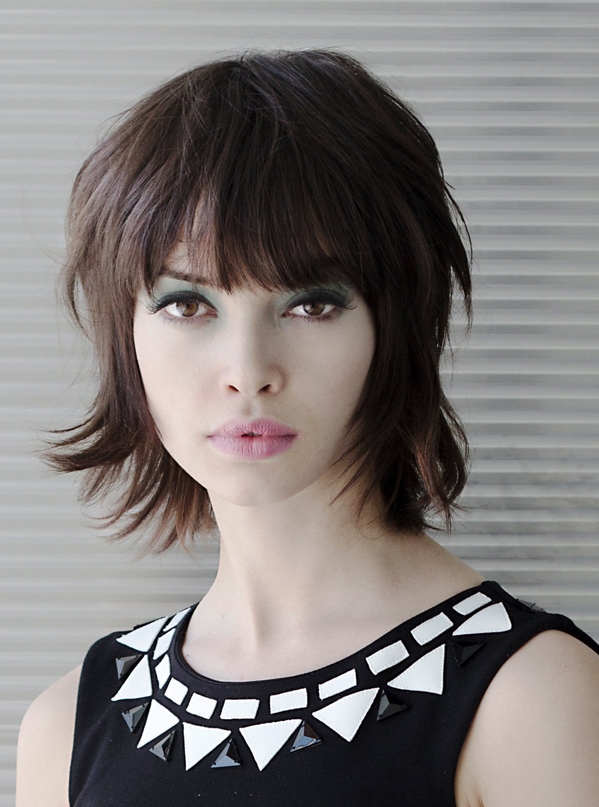 Стрижка Боб Каскад на средние волосы с короткой челкой