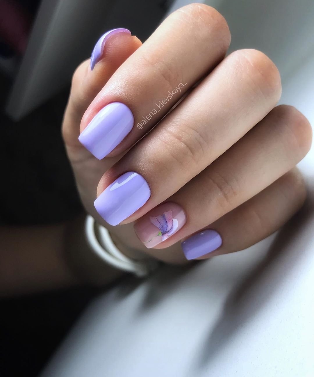 Лавандовый маникюр на квадратные ногти