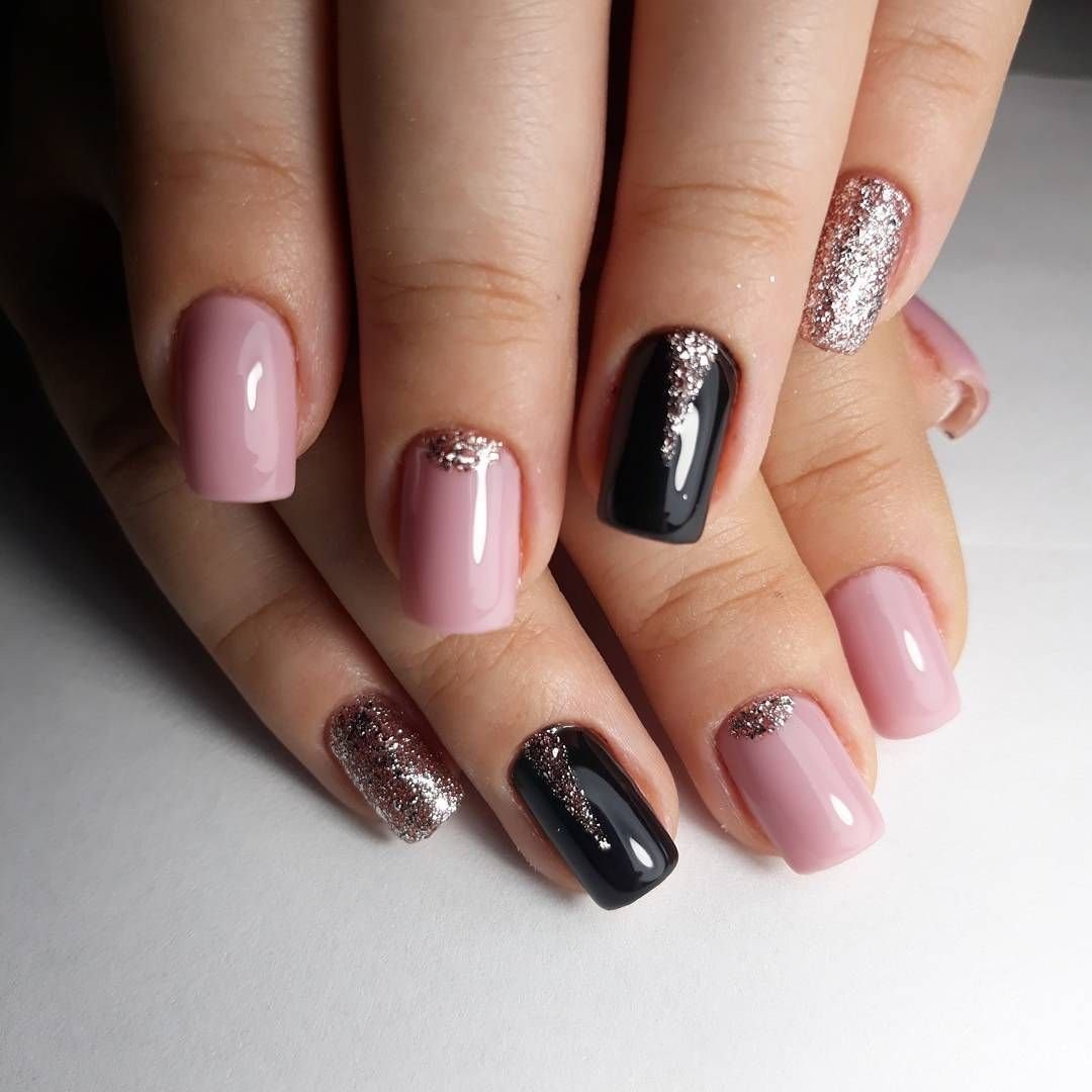 Маникюр розовый с черным