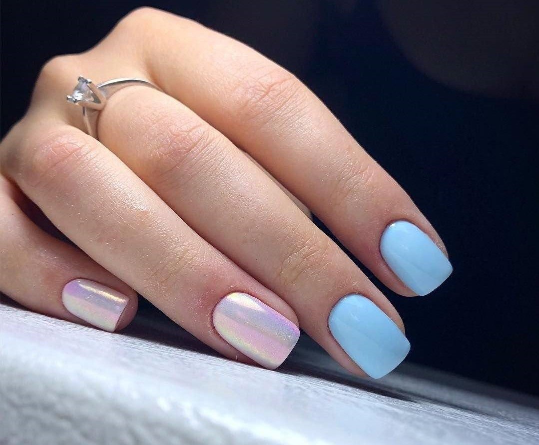 Синий маникюр на короткие ногти