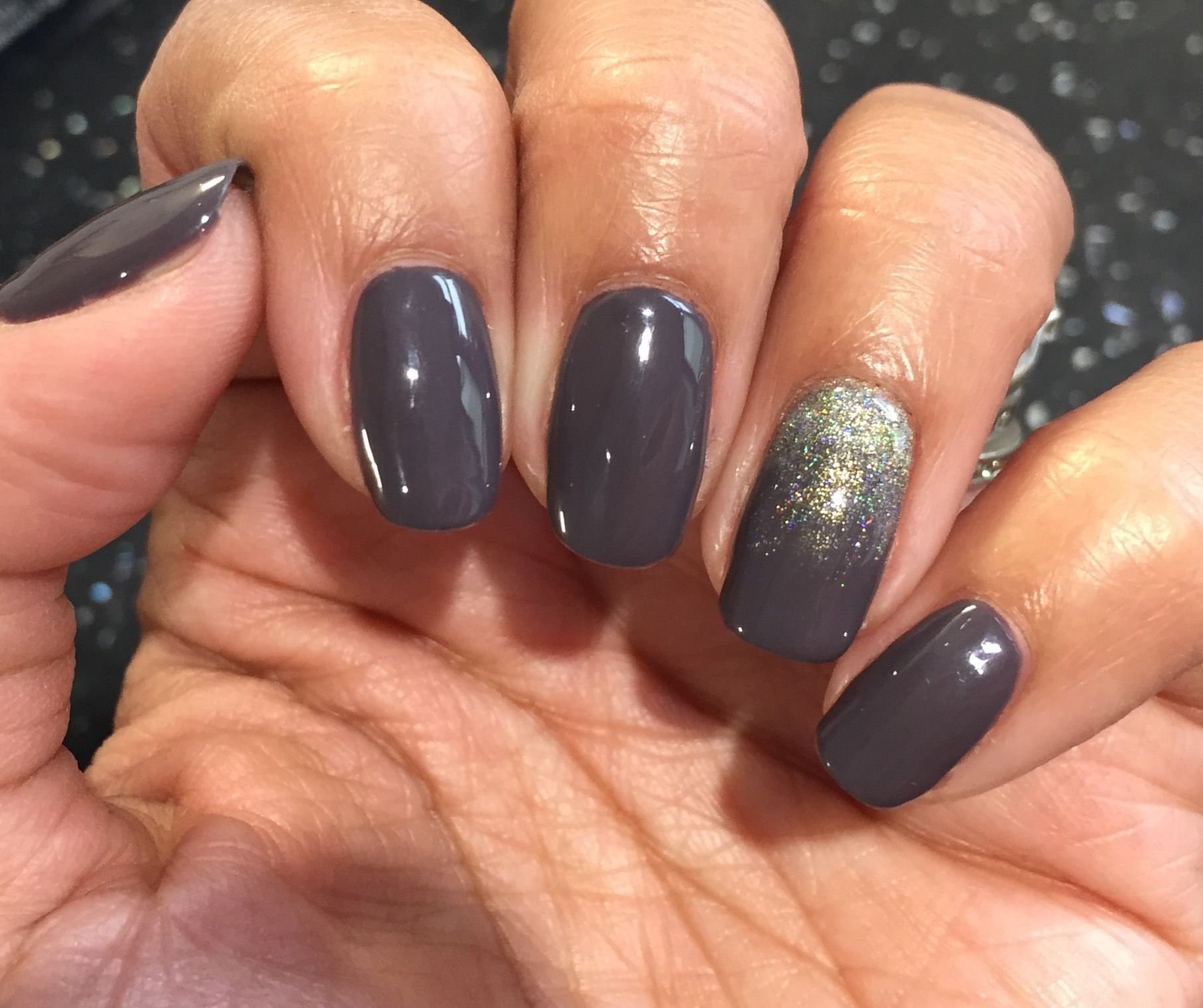 Темно серый маникюр с блестками