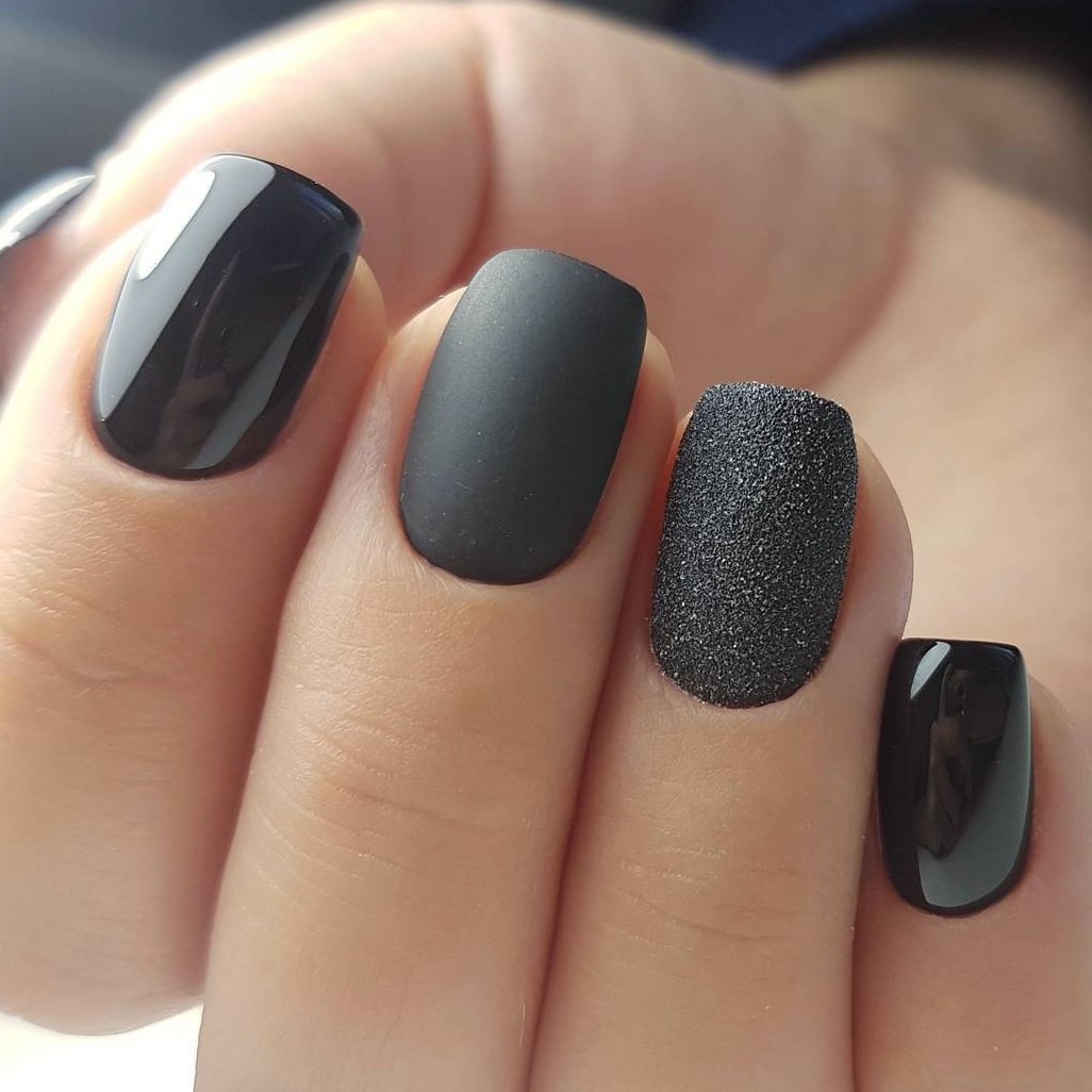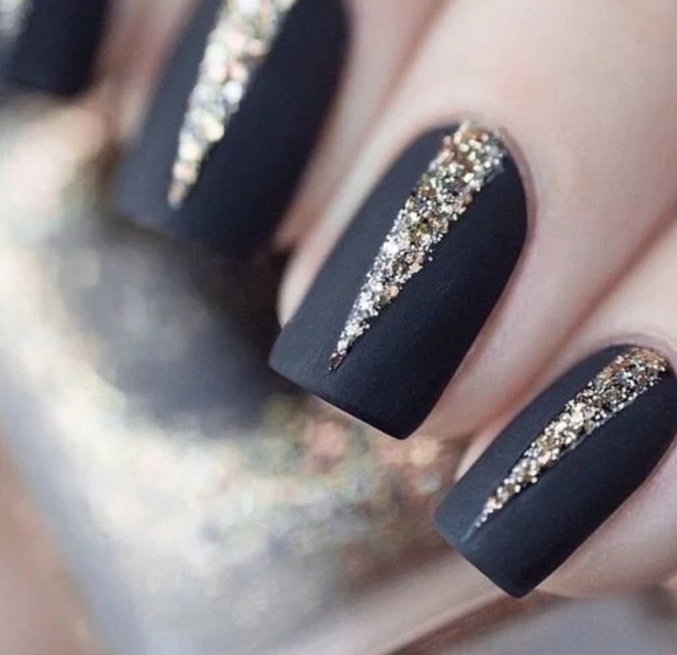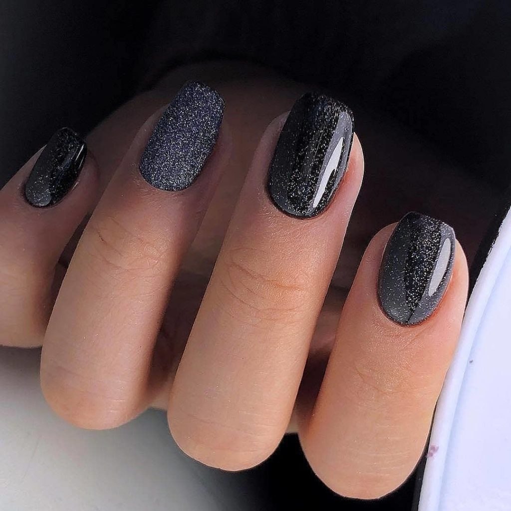 Черный маникюр с серыми блестками