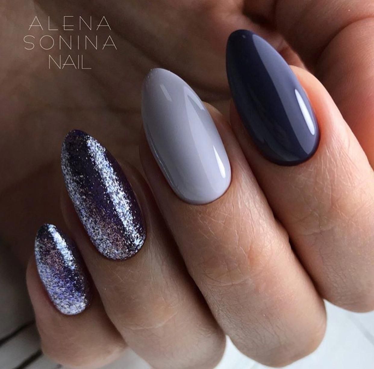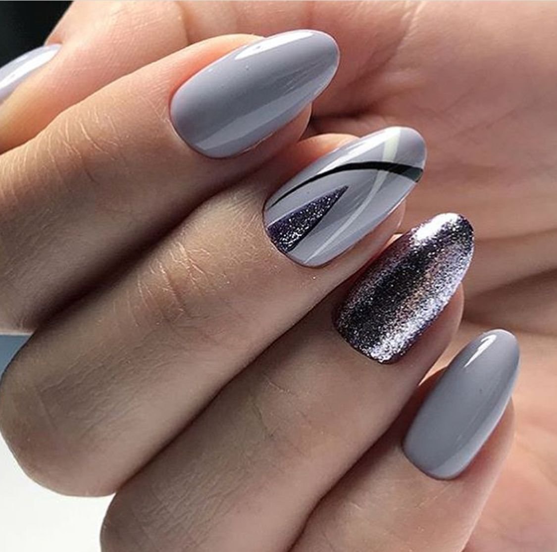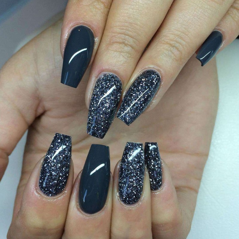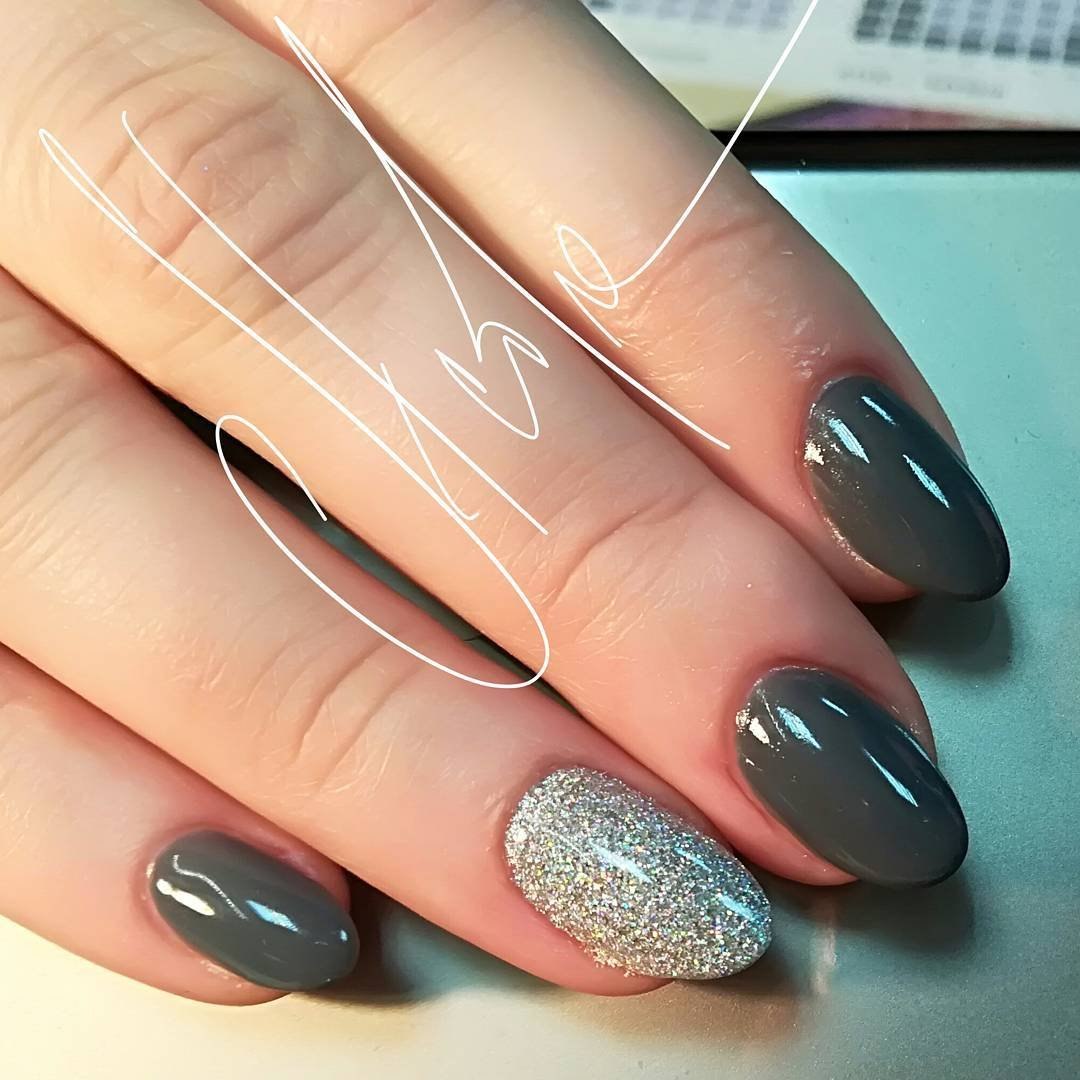Ногти серого цвета с блестками