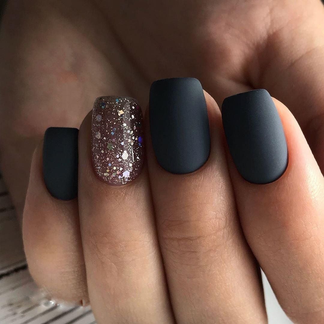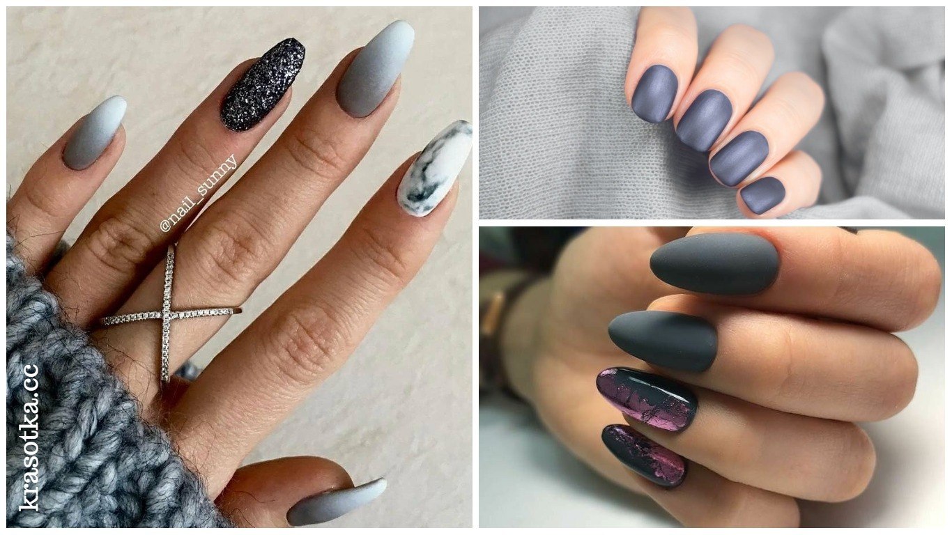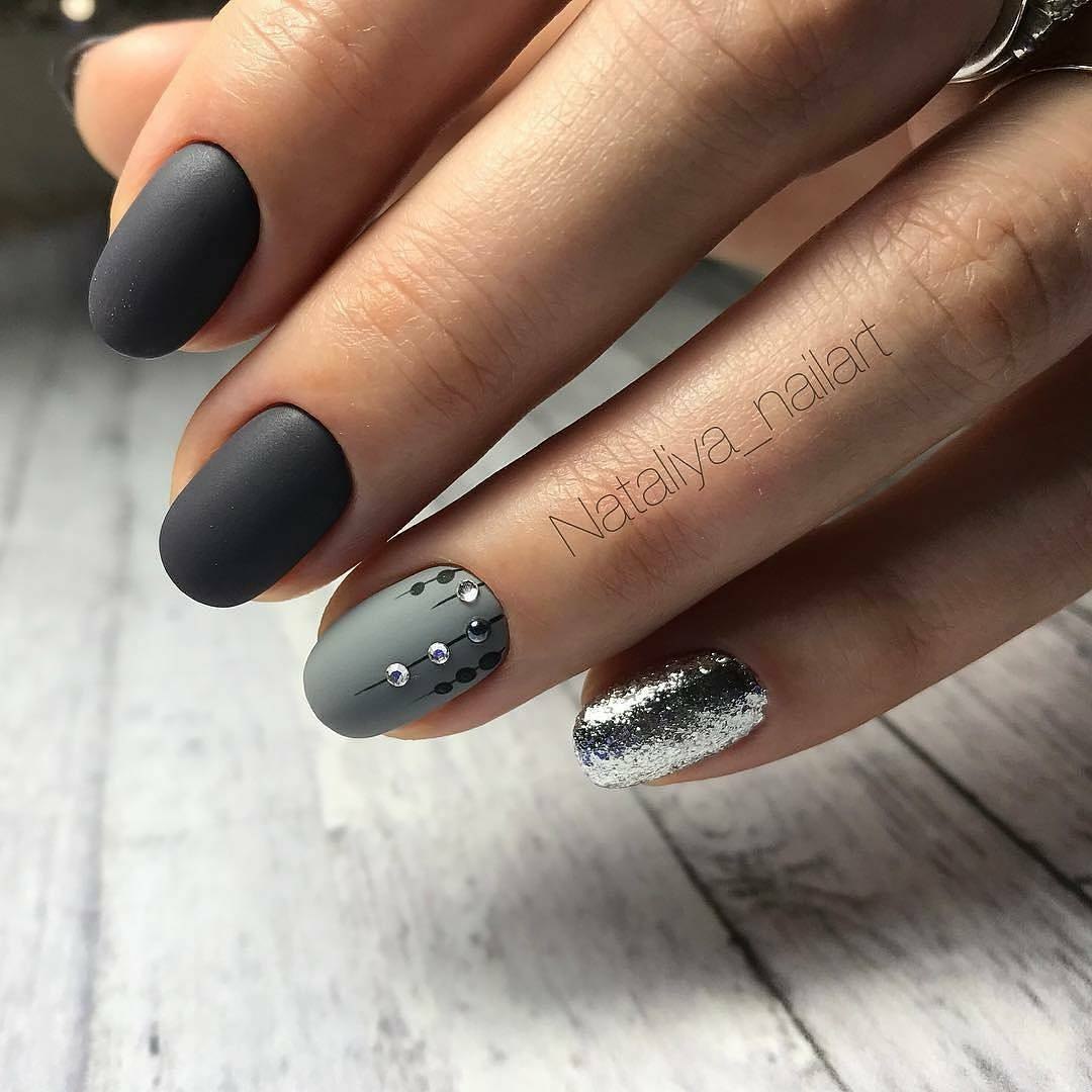 Маникюр графит матовый