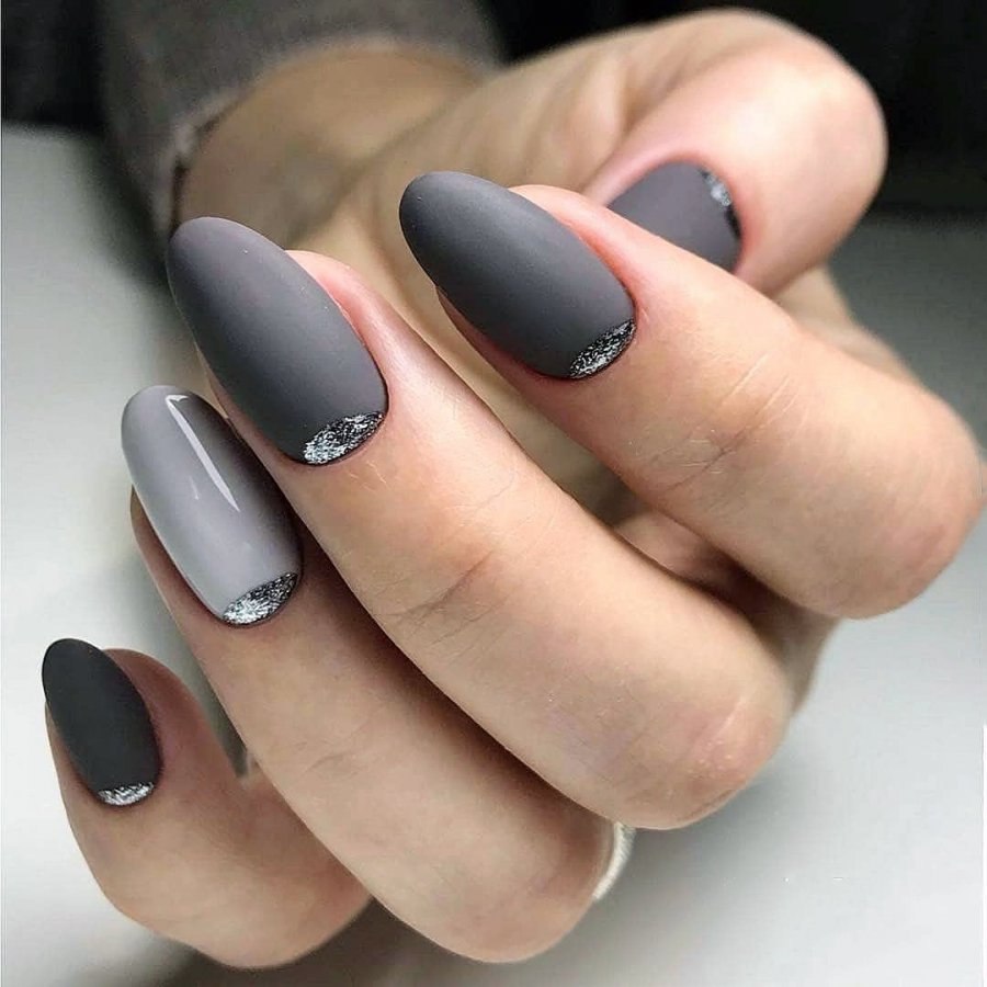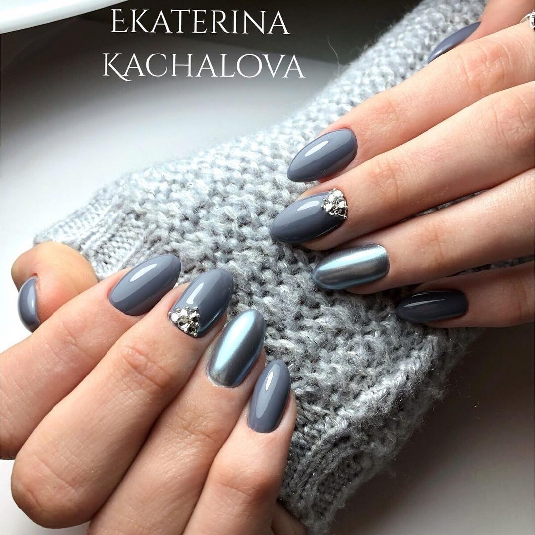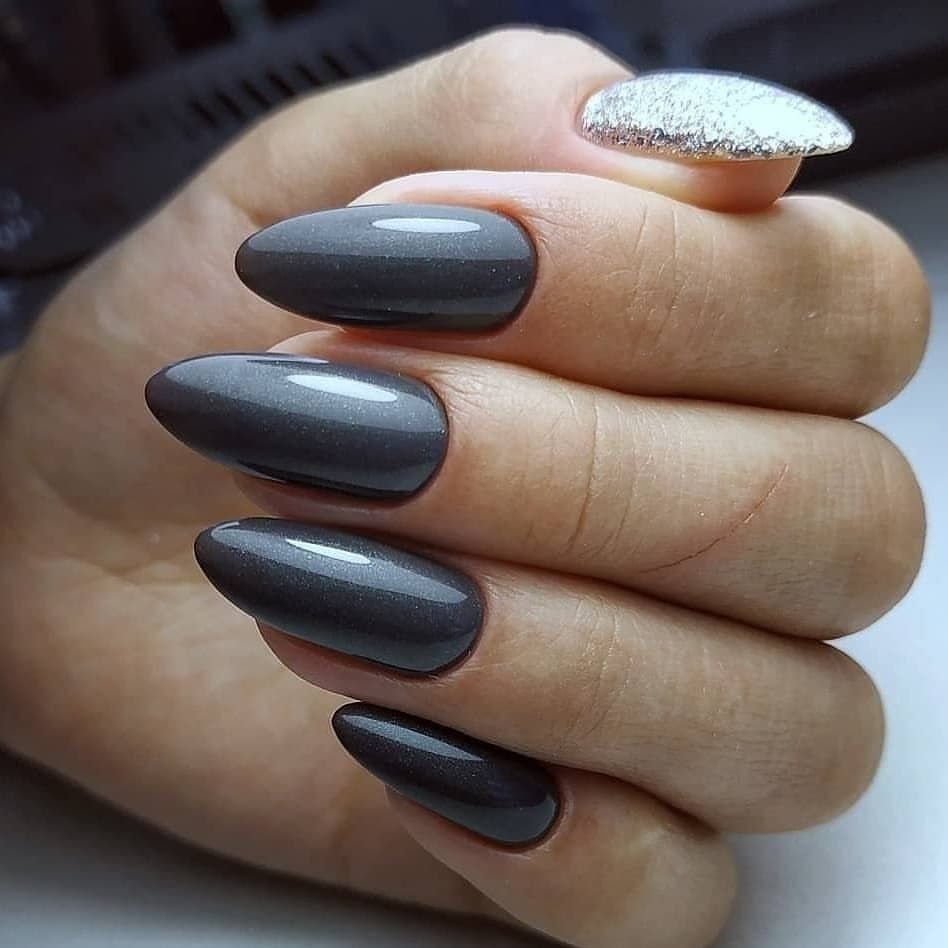 Серый маникюр миндаль