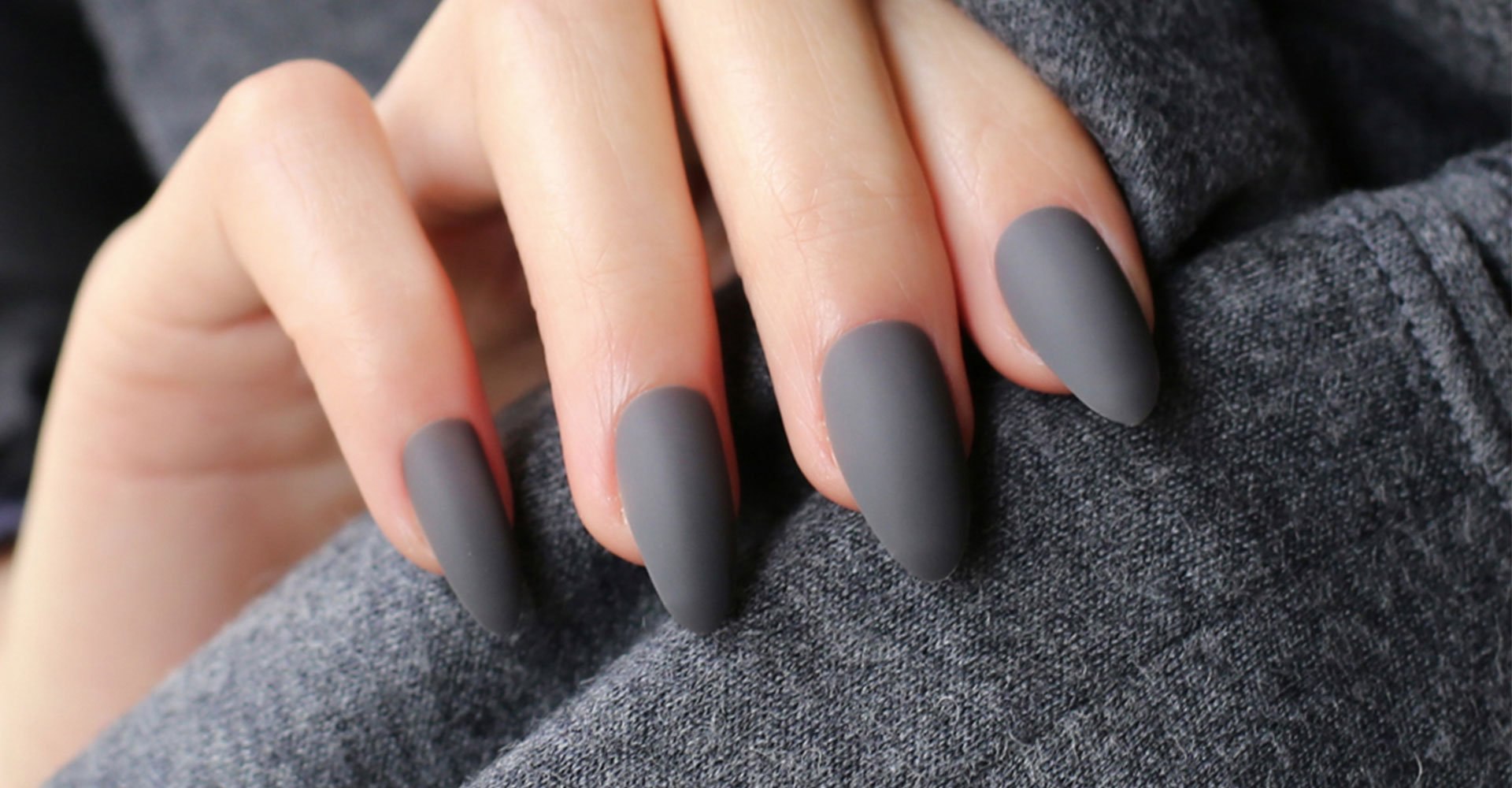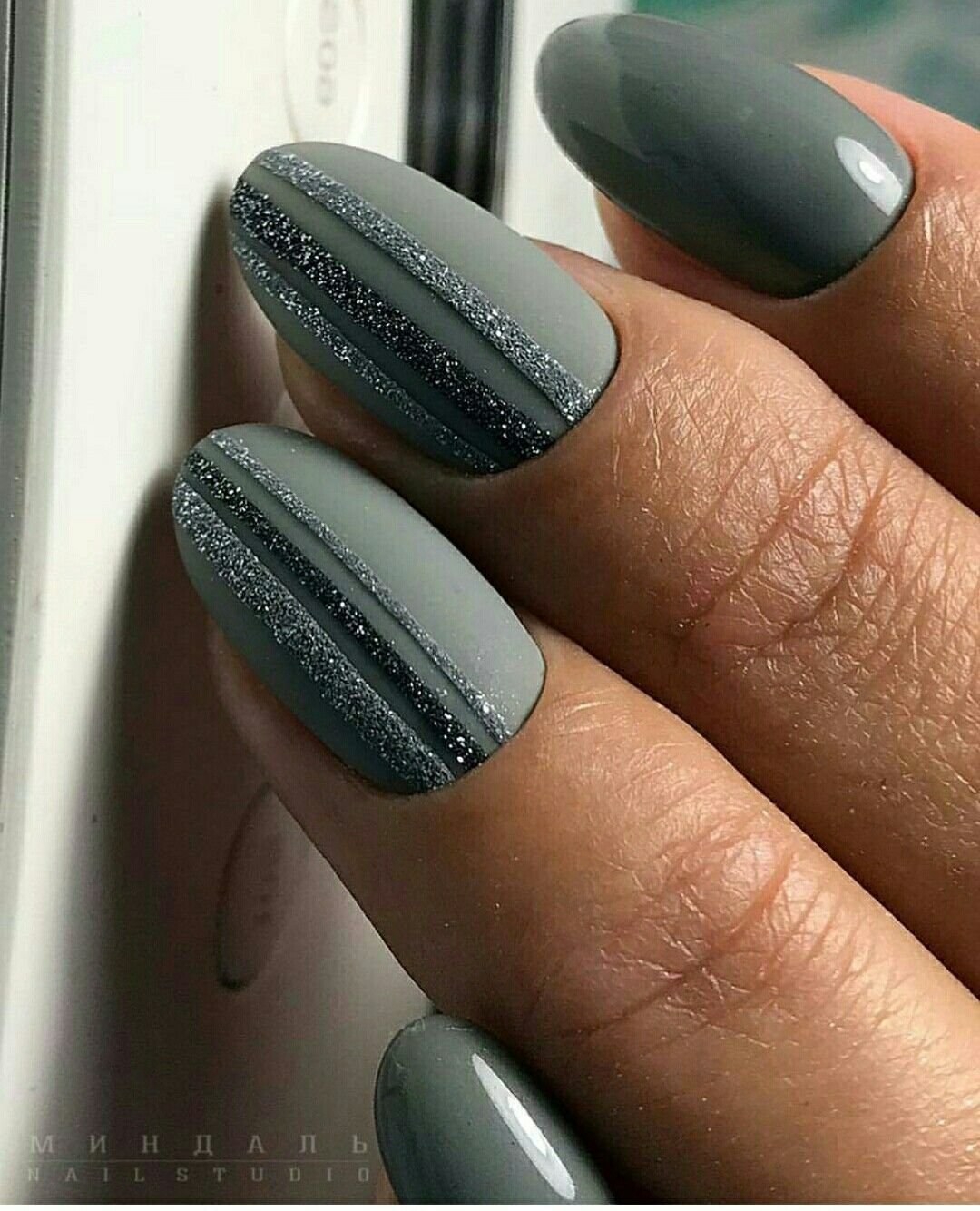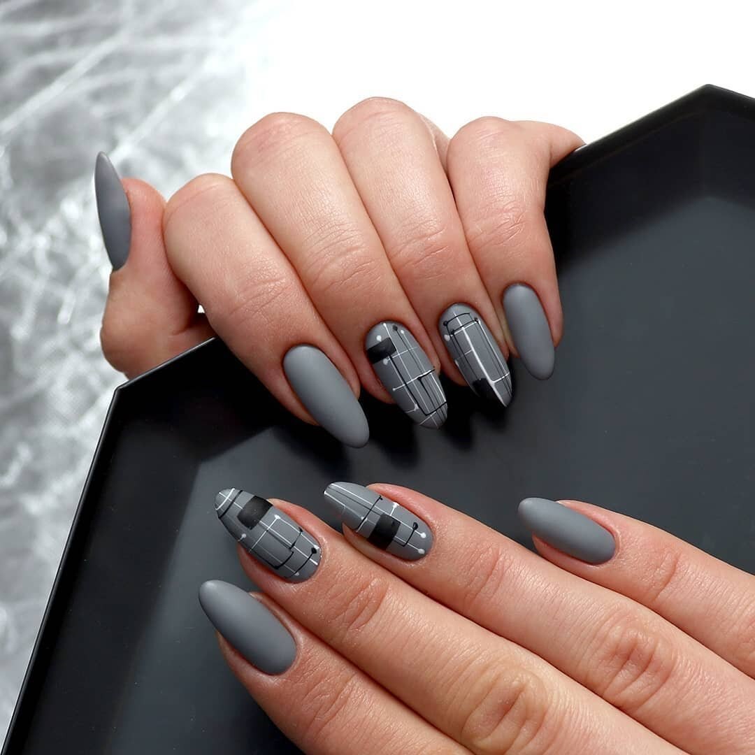 Серый маникюр миндаль