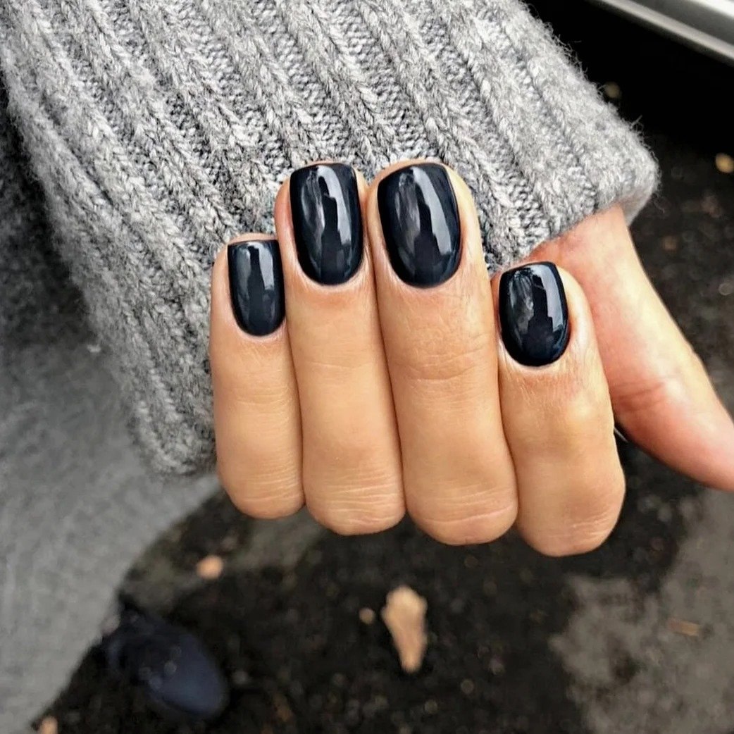 Тёмный маникюр на короткие ногти