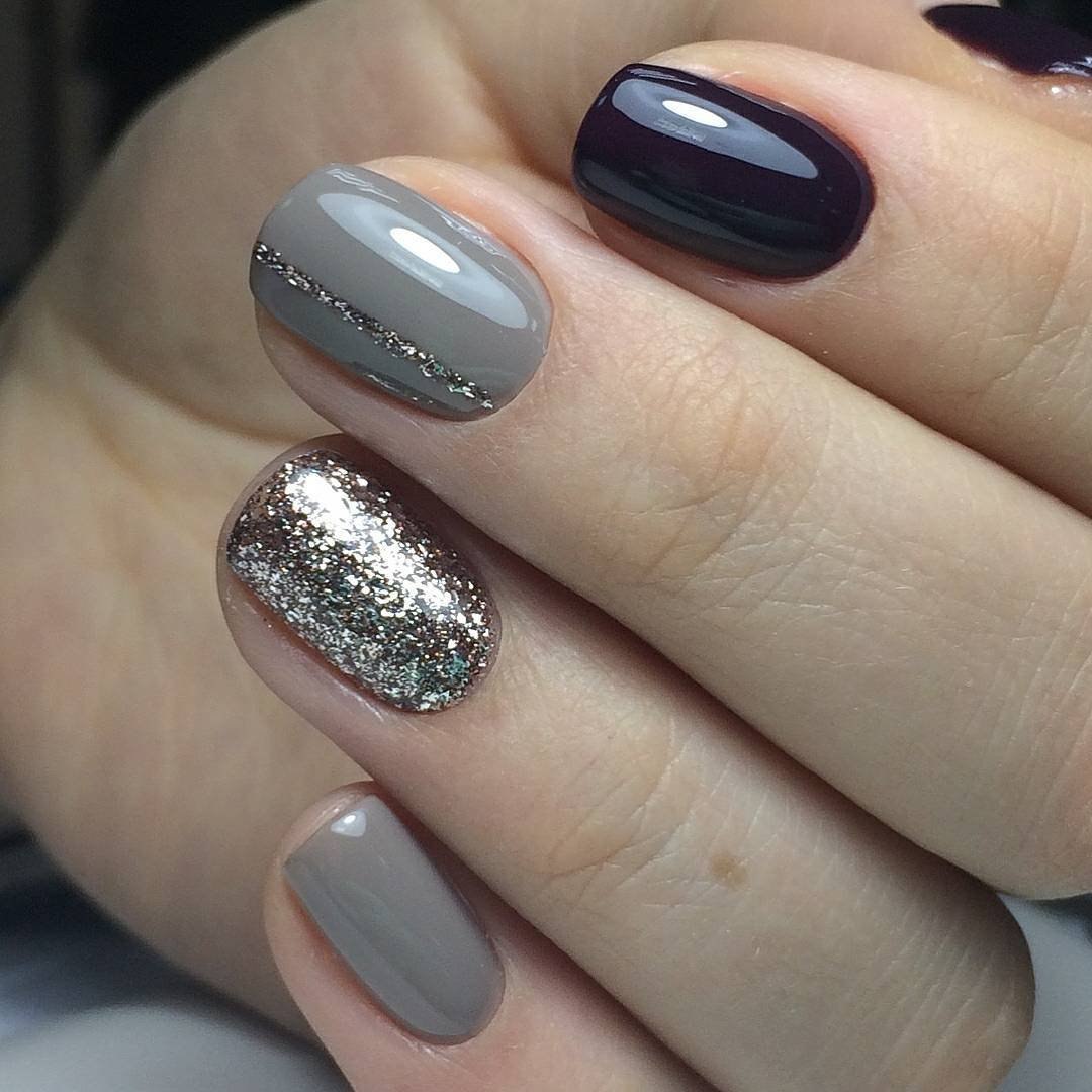 Маникюр цвет асфальт им золото