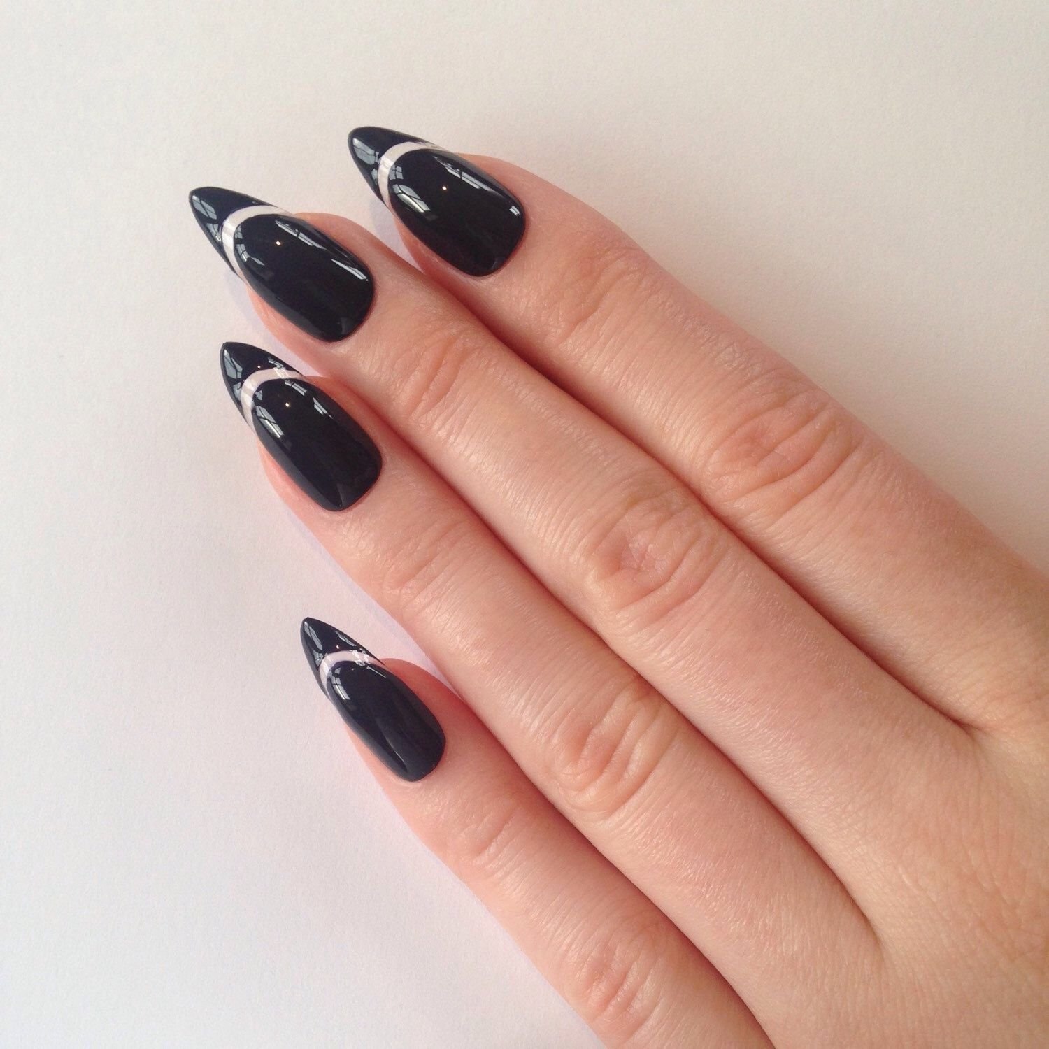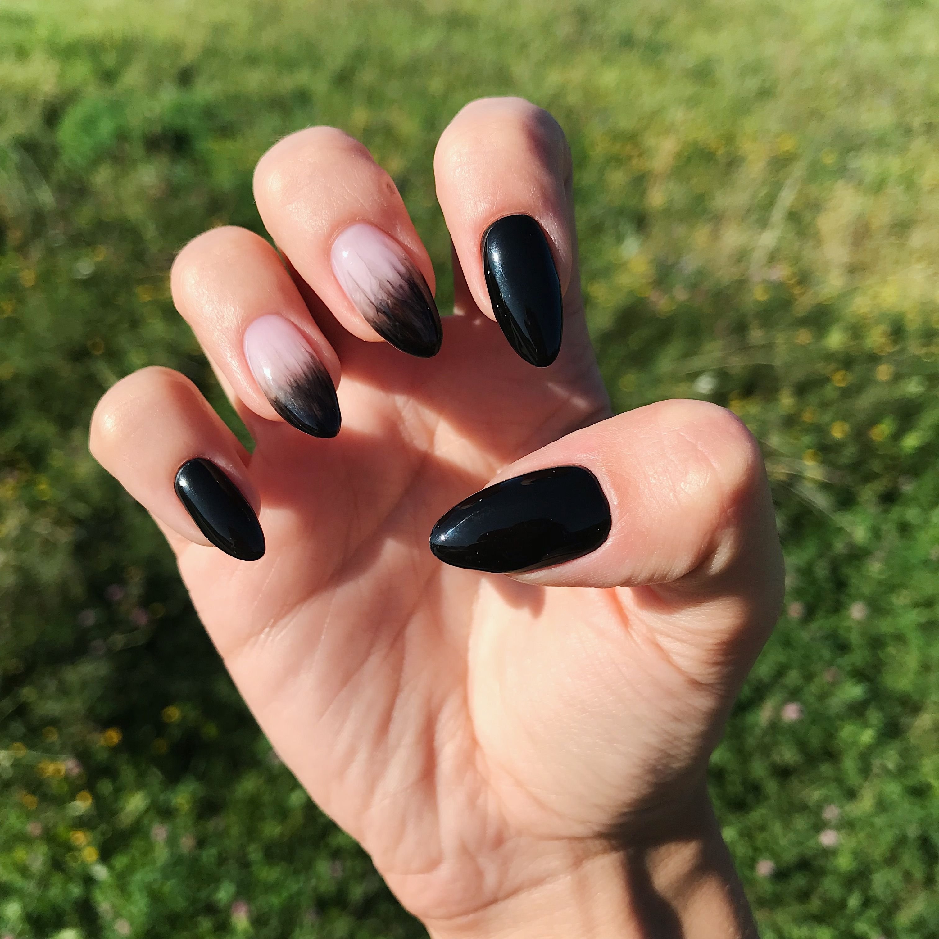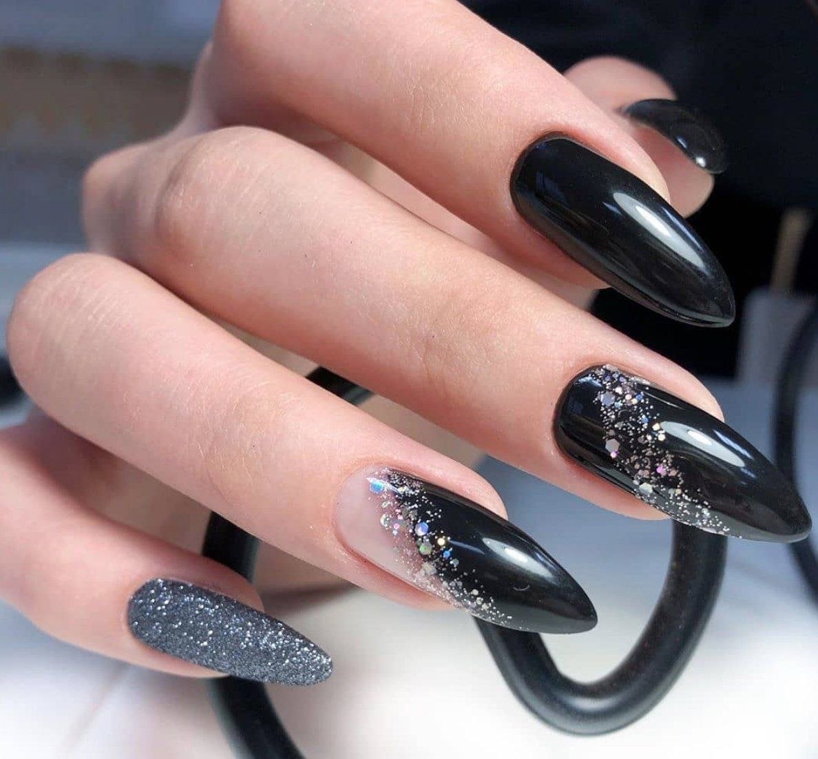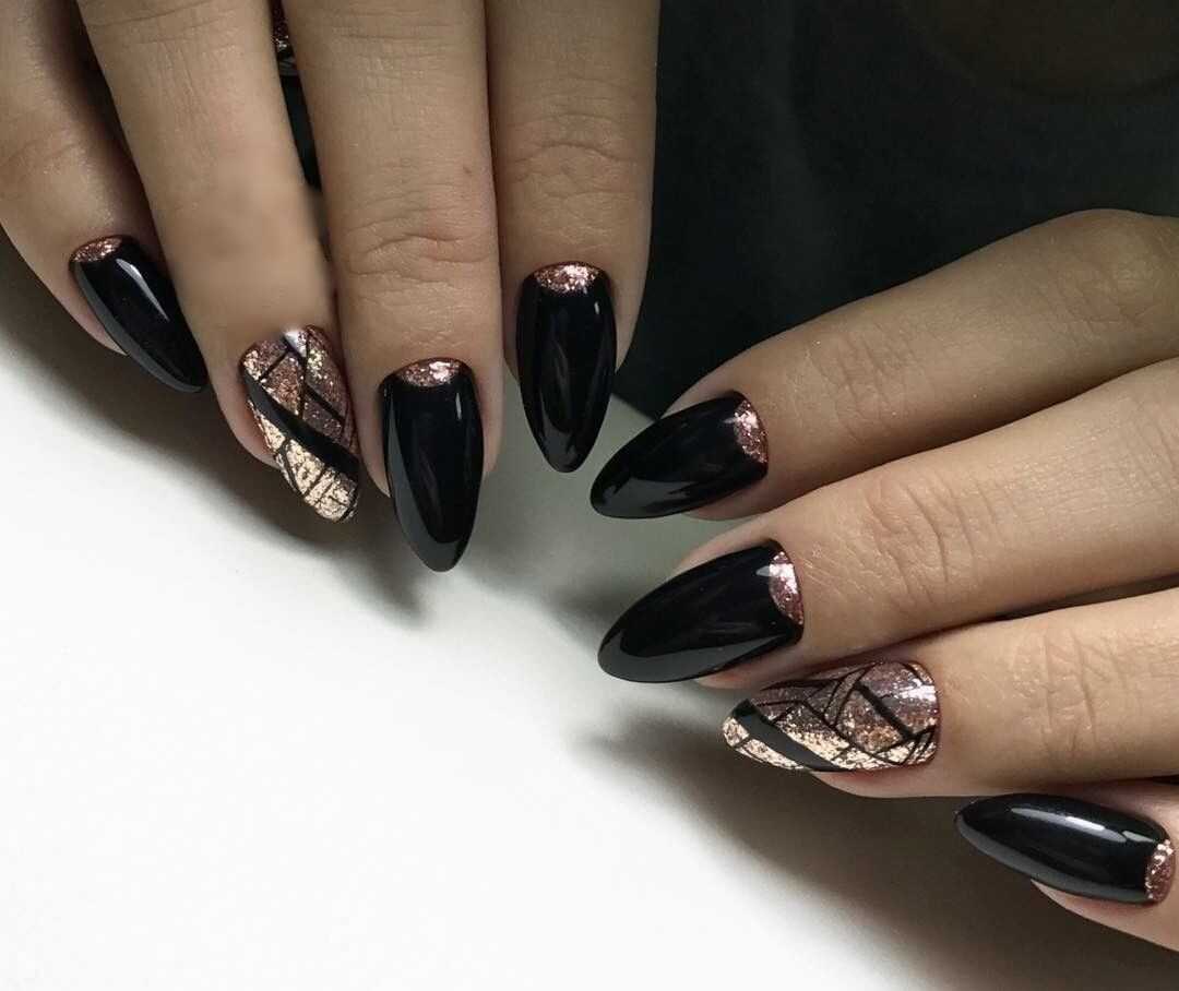 Маникюр на длинные ногти миндалевидной формы с дизайном 2021 черные