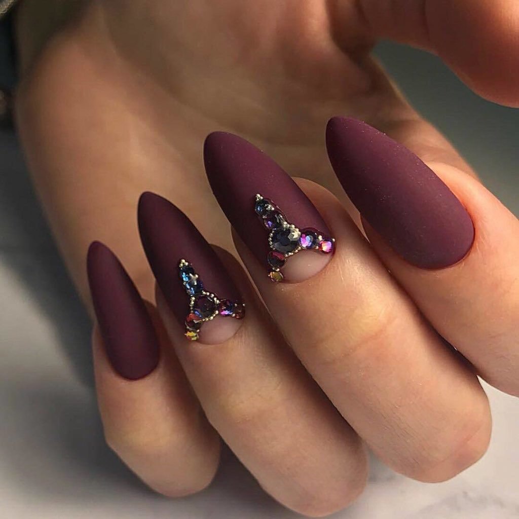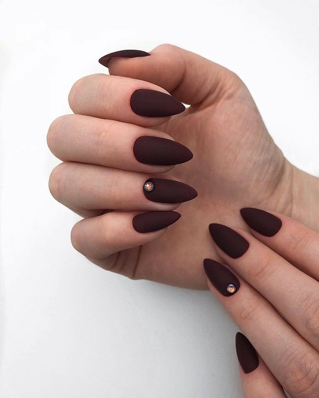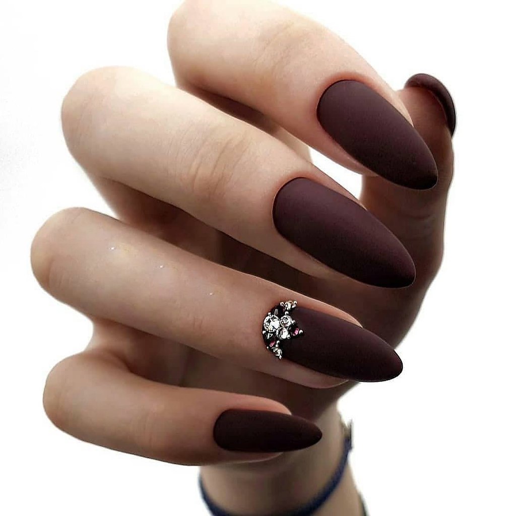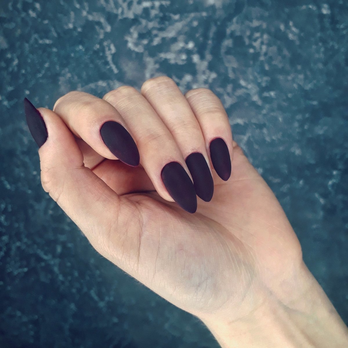 Маникюр на длинные ногти миндалевидной темных оттенков матовые