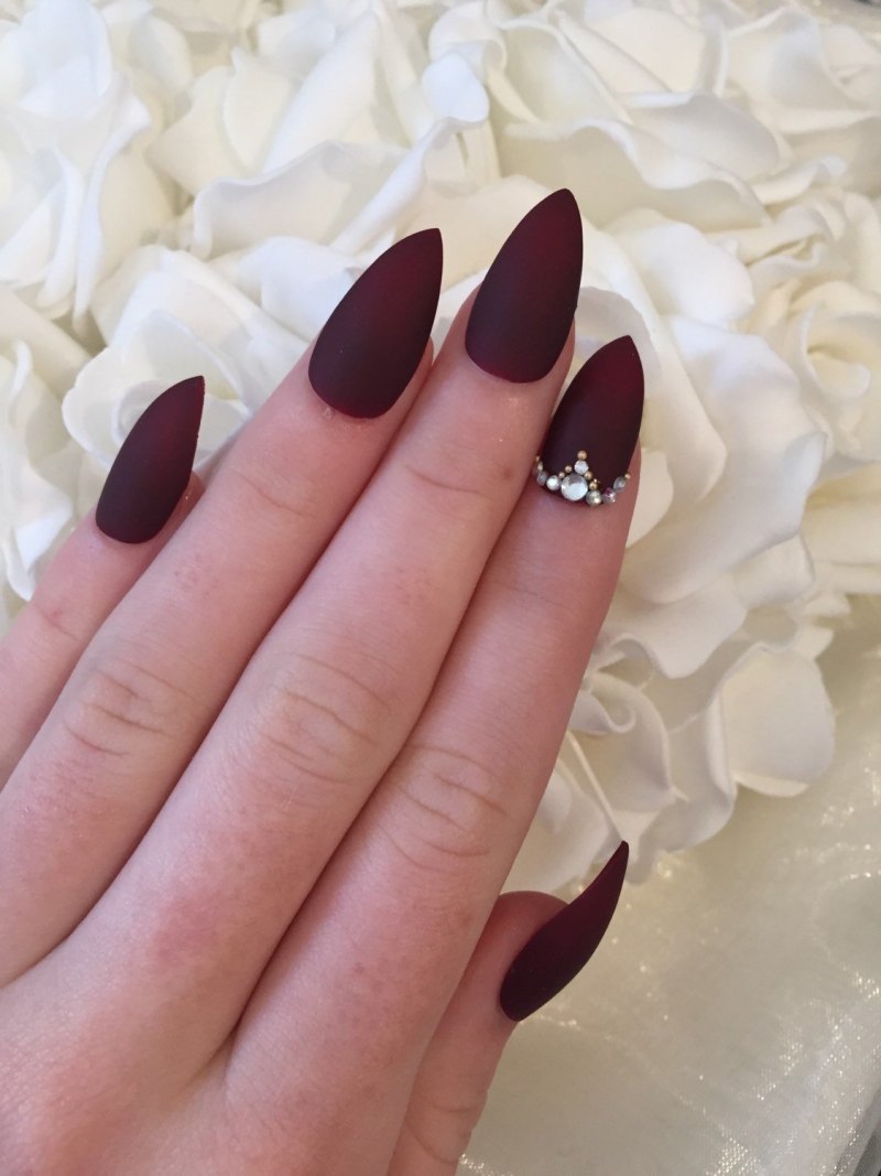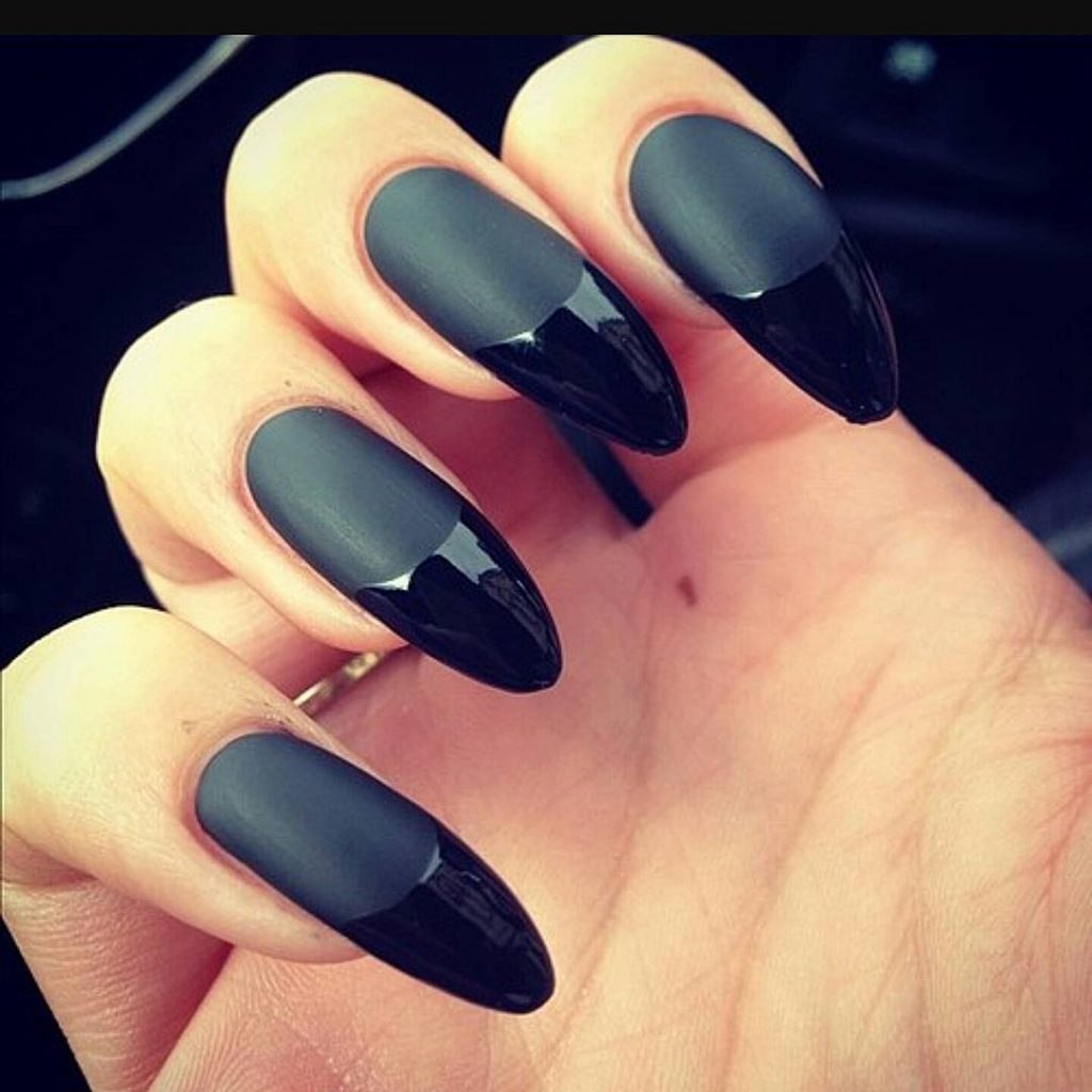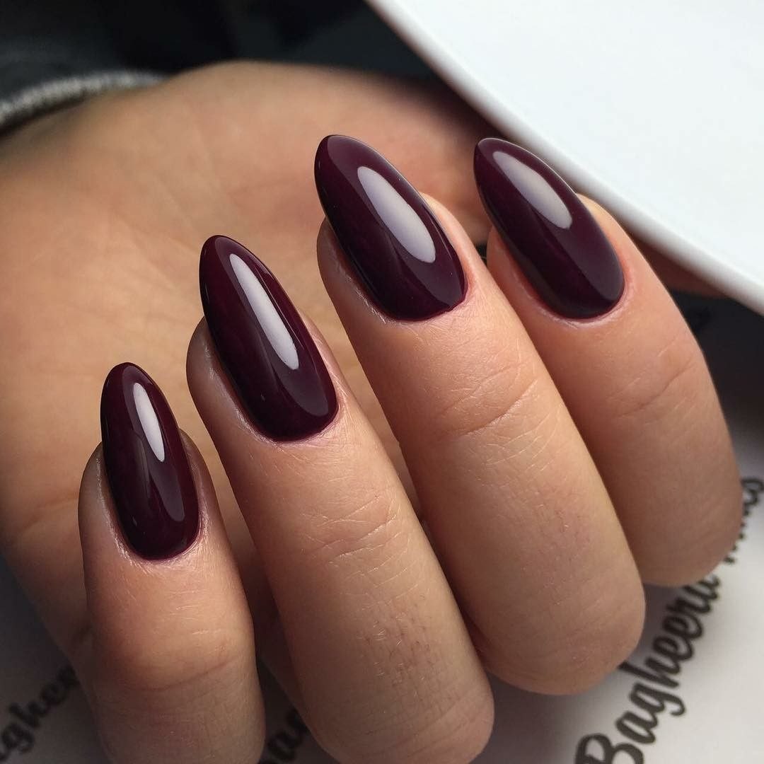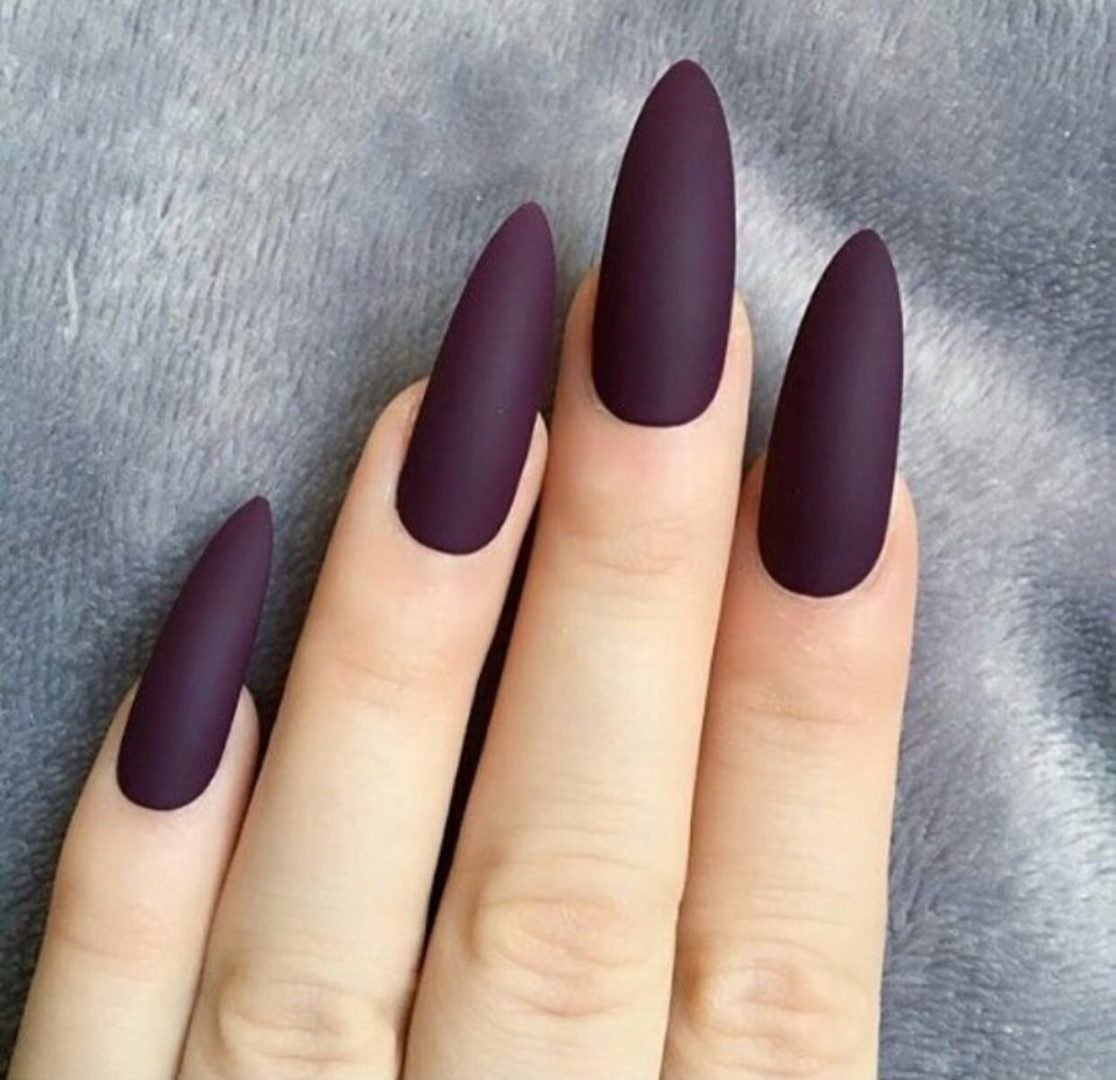 Маникюр на длинные ногти миндалевидной темных оттенков матовые