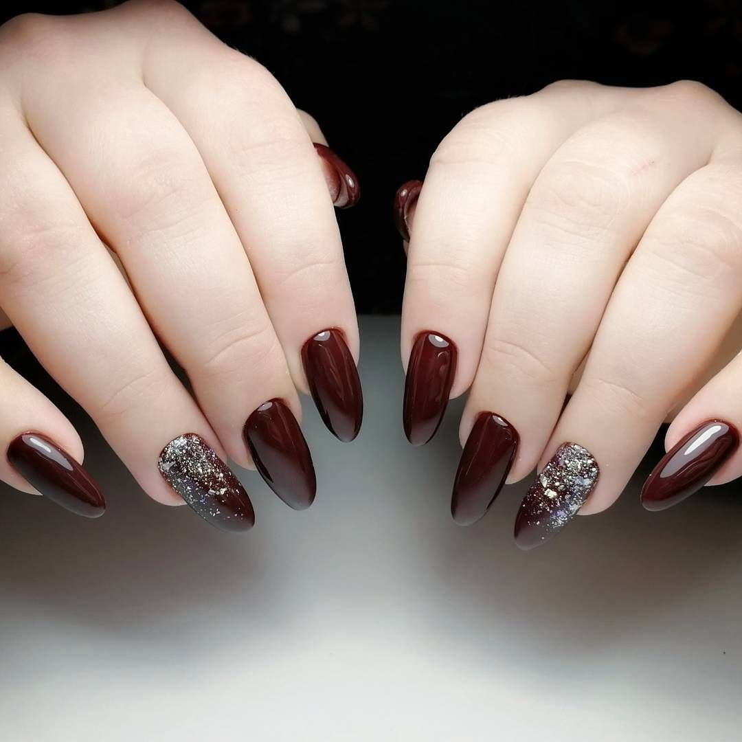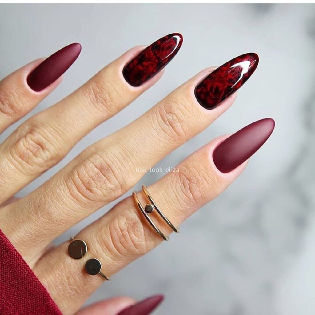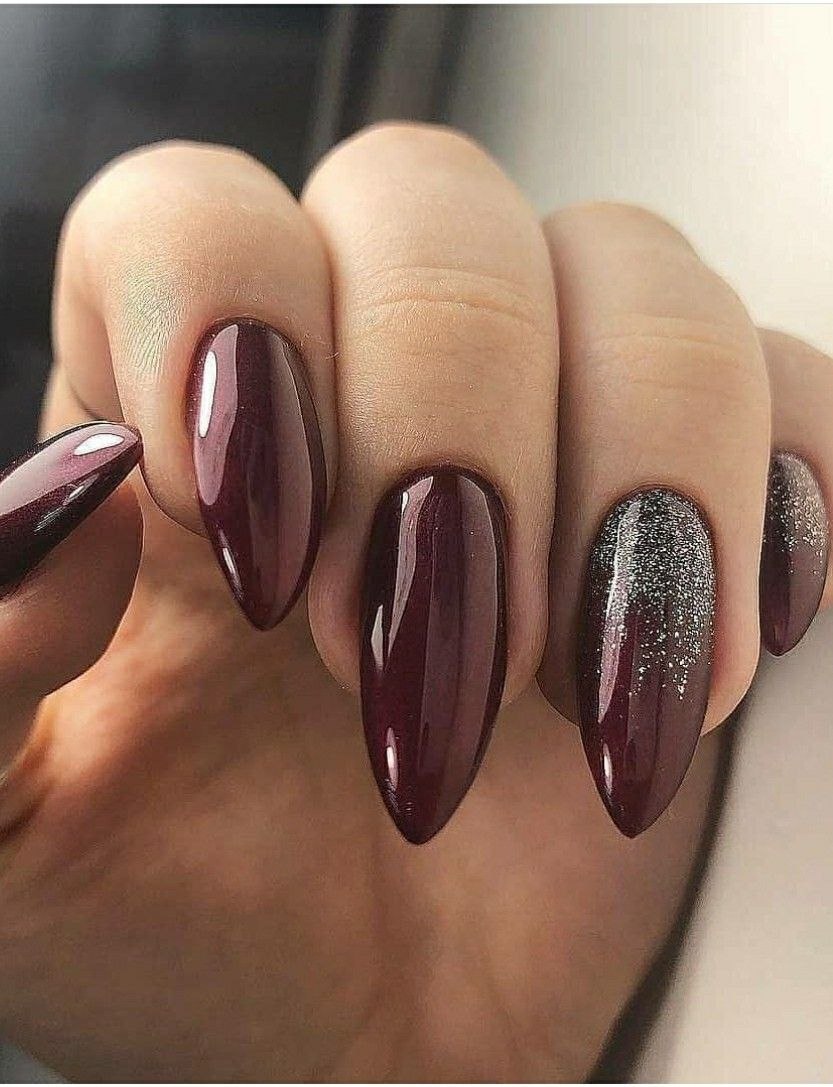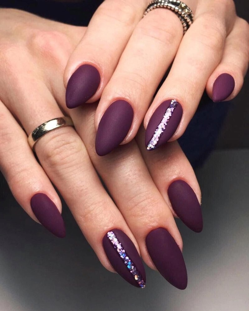 Маникюр на длинные ногти миндалевидной темных оттенков матовые