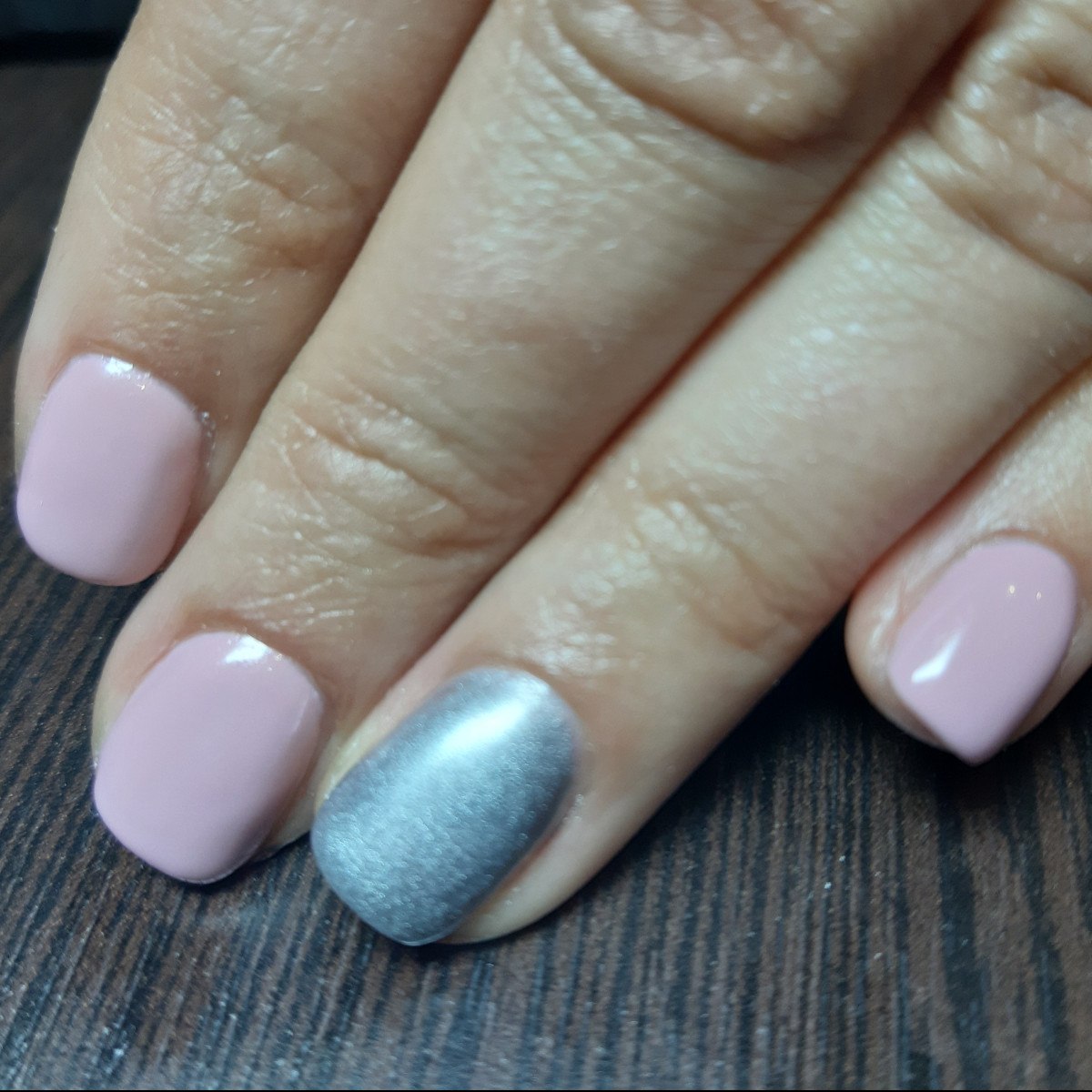 Розовый маникюр с втиркой