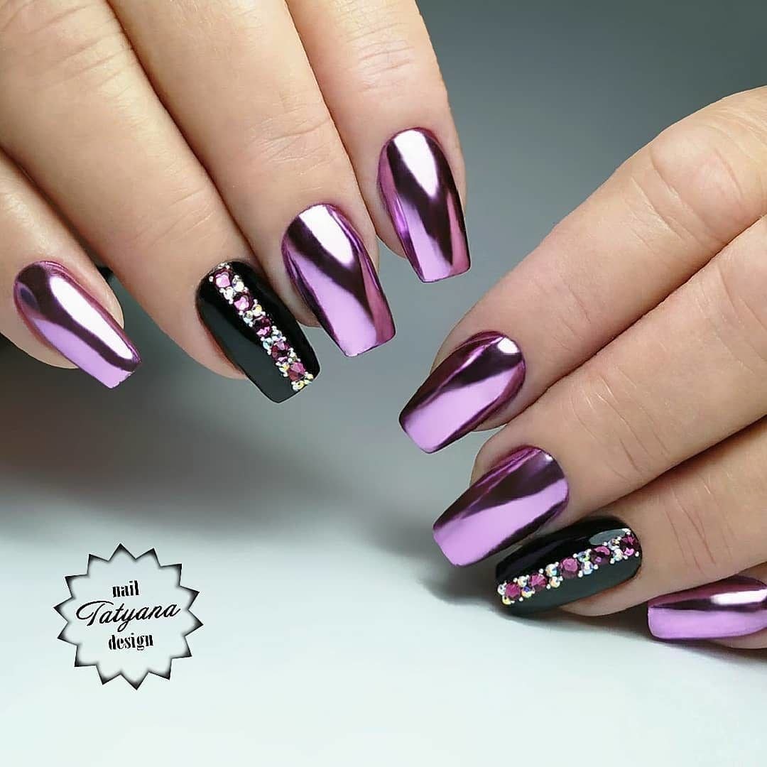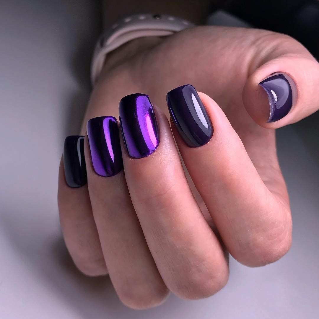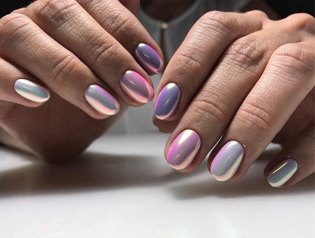 Зеркальный маникюр сиреневый