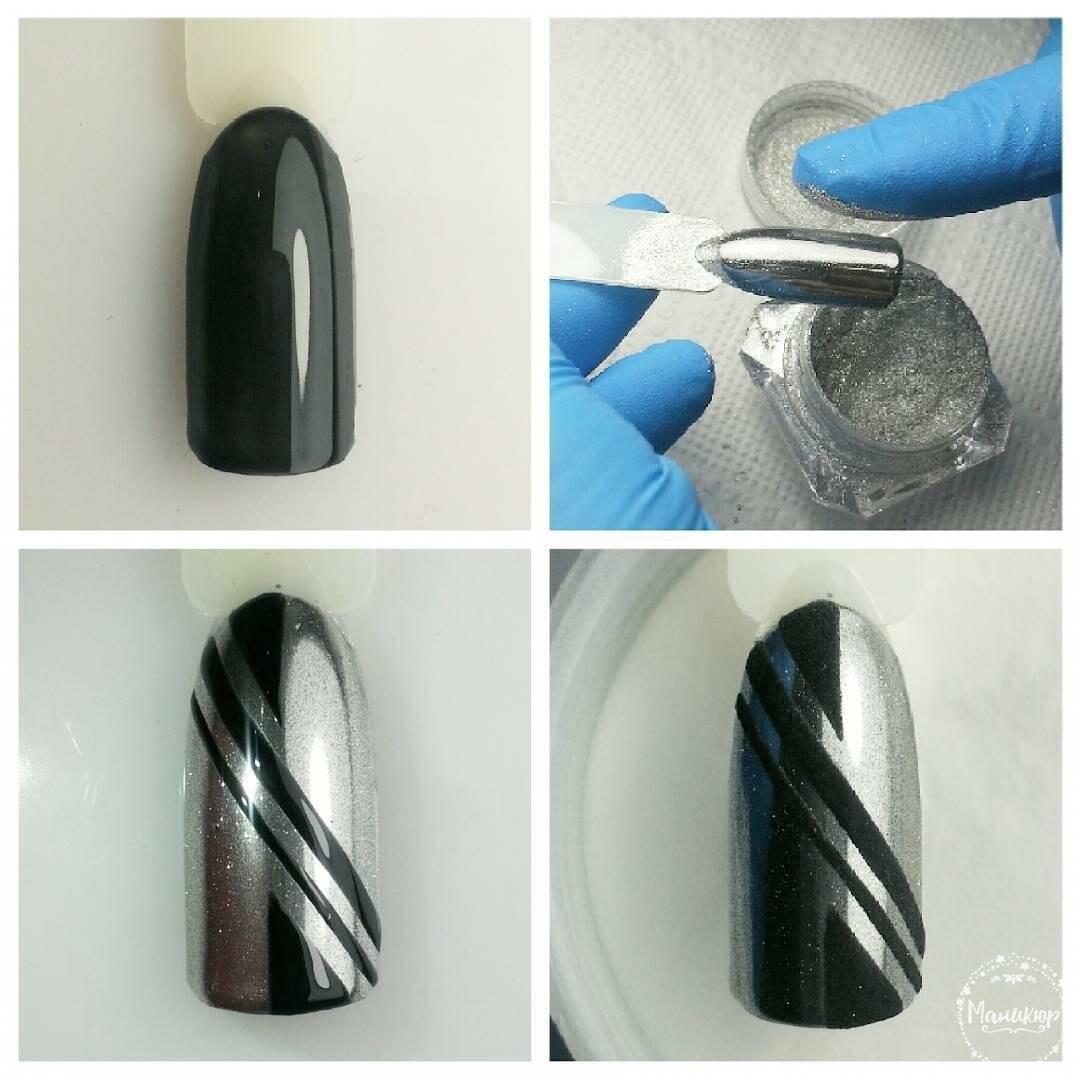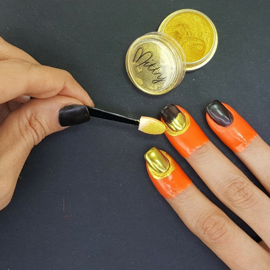 Золотая втирка на ногтях нанесение