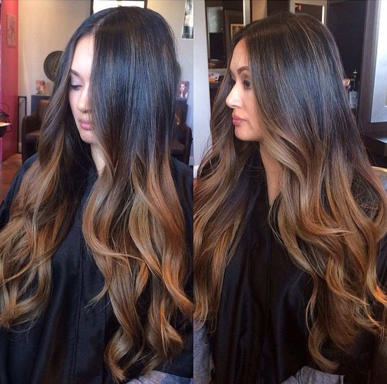 Балаяж амбре на тёмных волосах