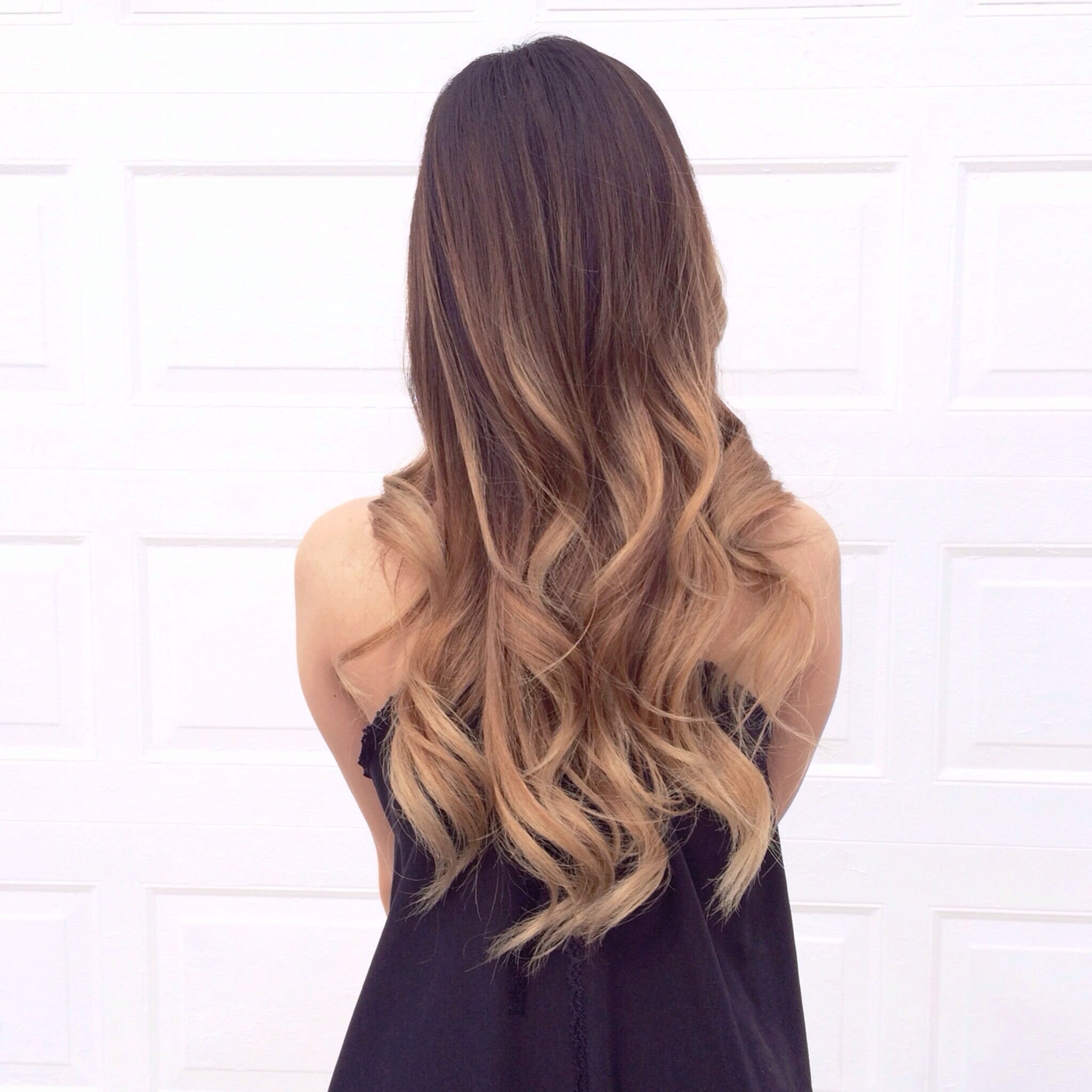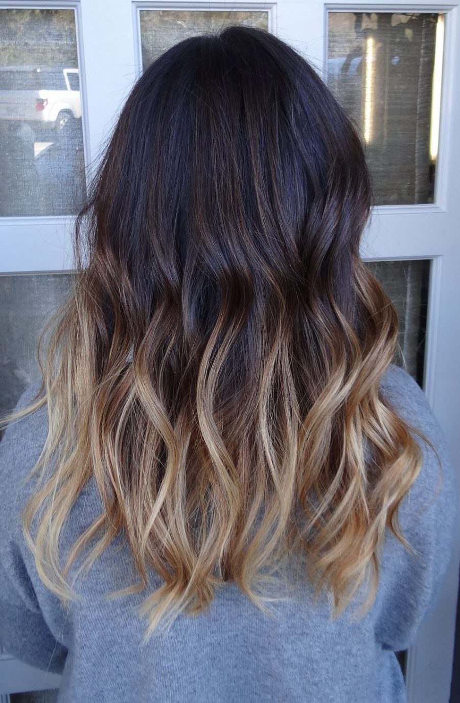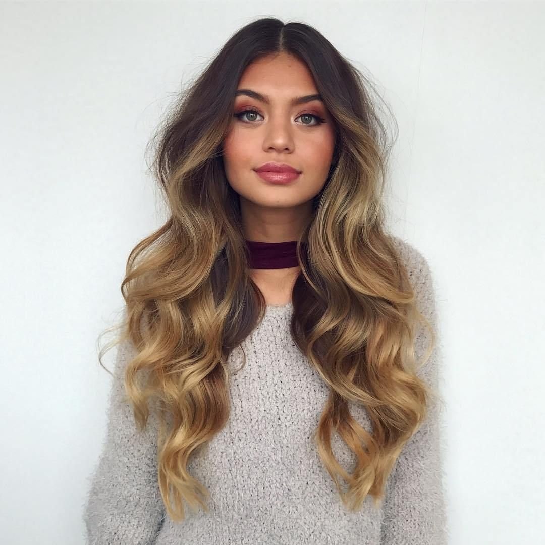 Омбре на длинных волосах с темными корнями