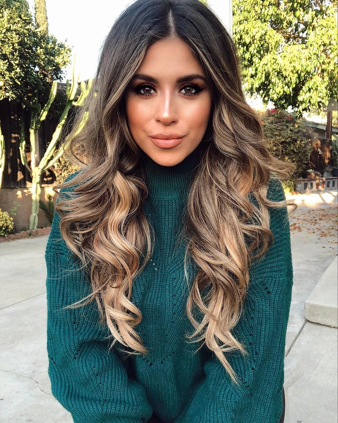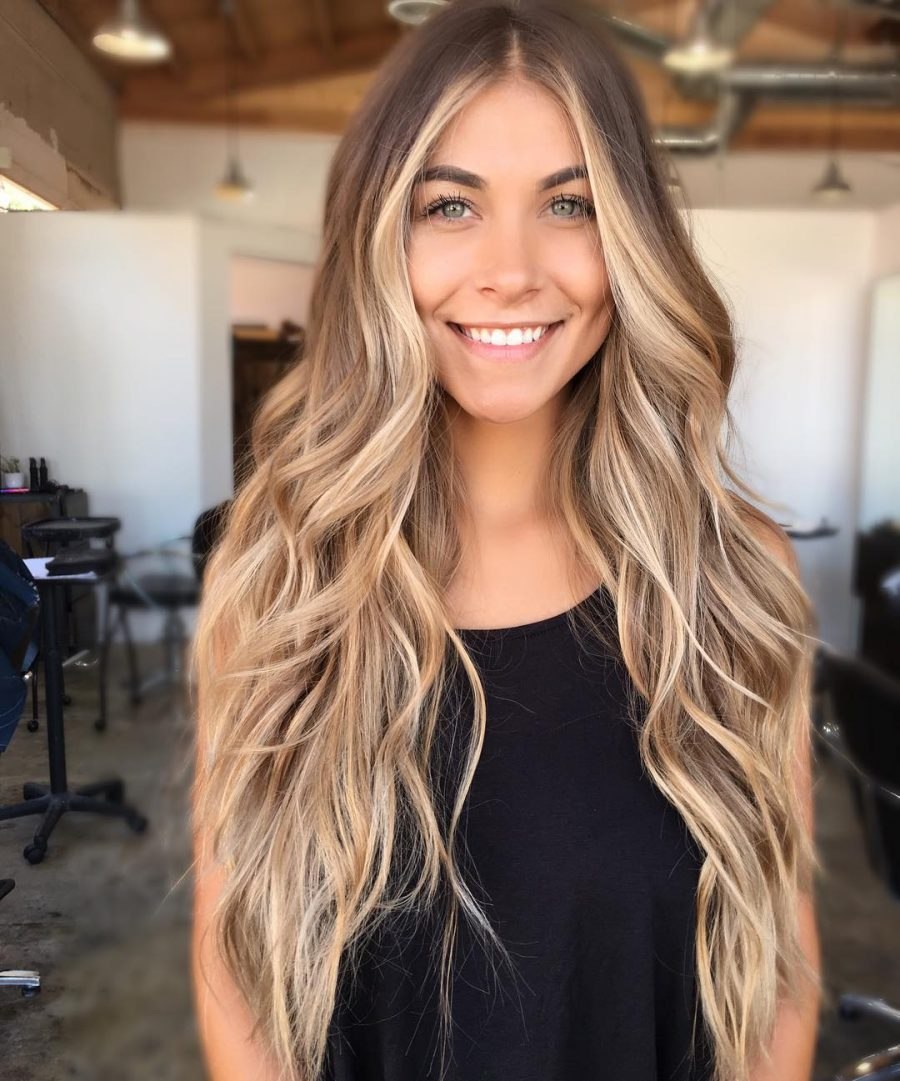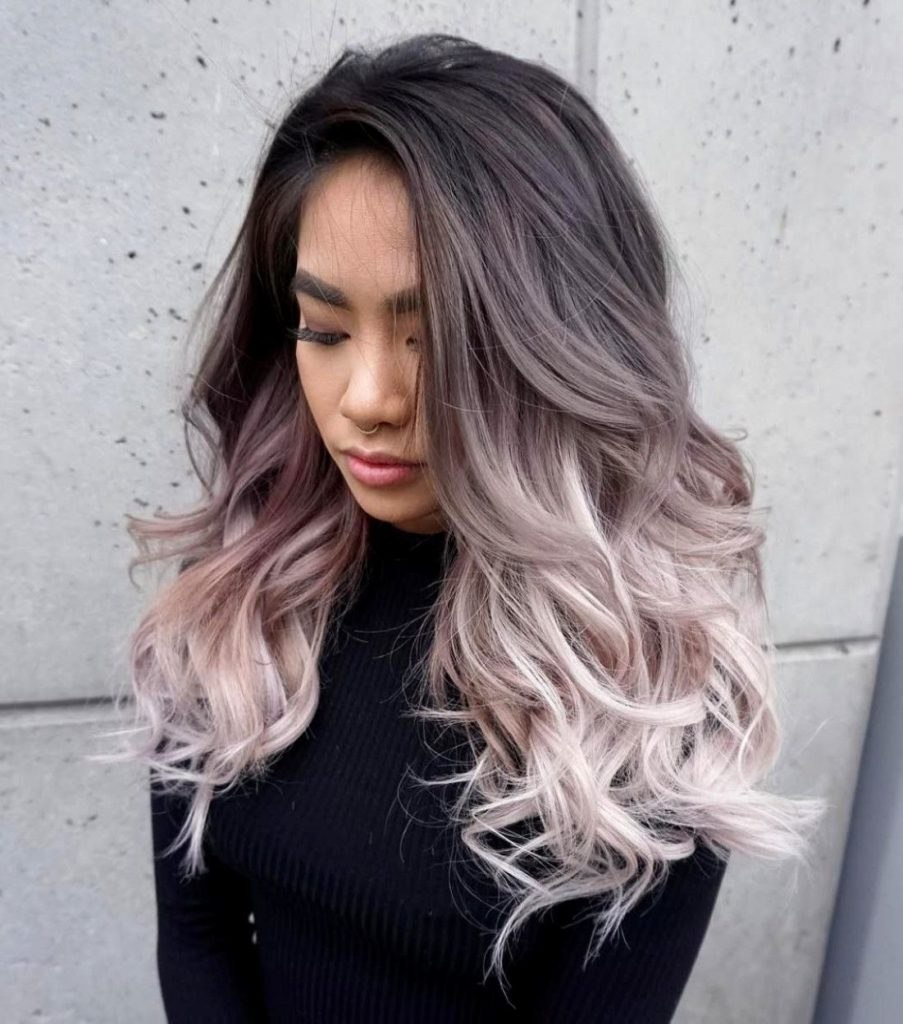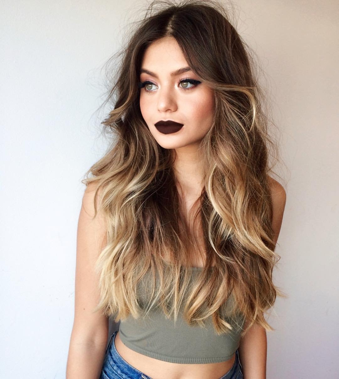 Омбре на длинных волосах с темными корнями