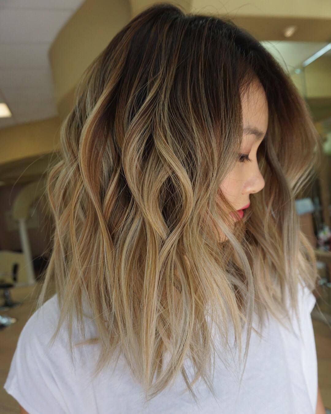 Балаяж на каскаде русые волосы